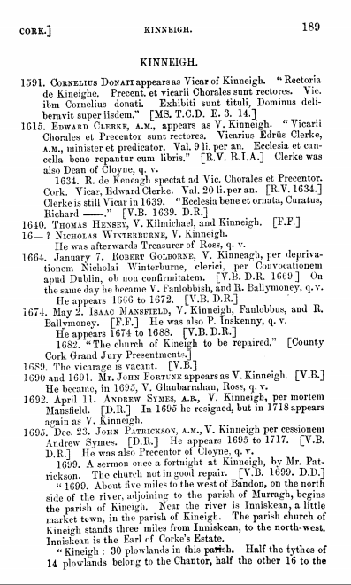 Updated October 2015, with Maziere Brady extract on Kinneigh: