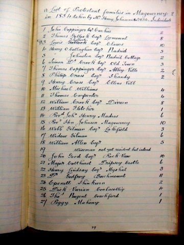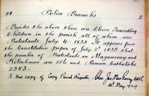 The baptismal font used by the church was rescued many years ago in a field. It is thought to be associated with the ancient church at Tully suppressed during the Penal Laws from the late 17th century.