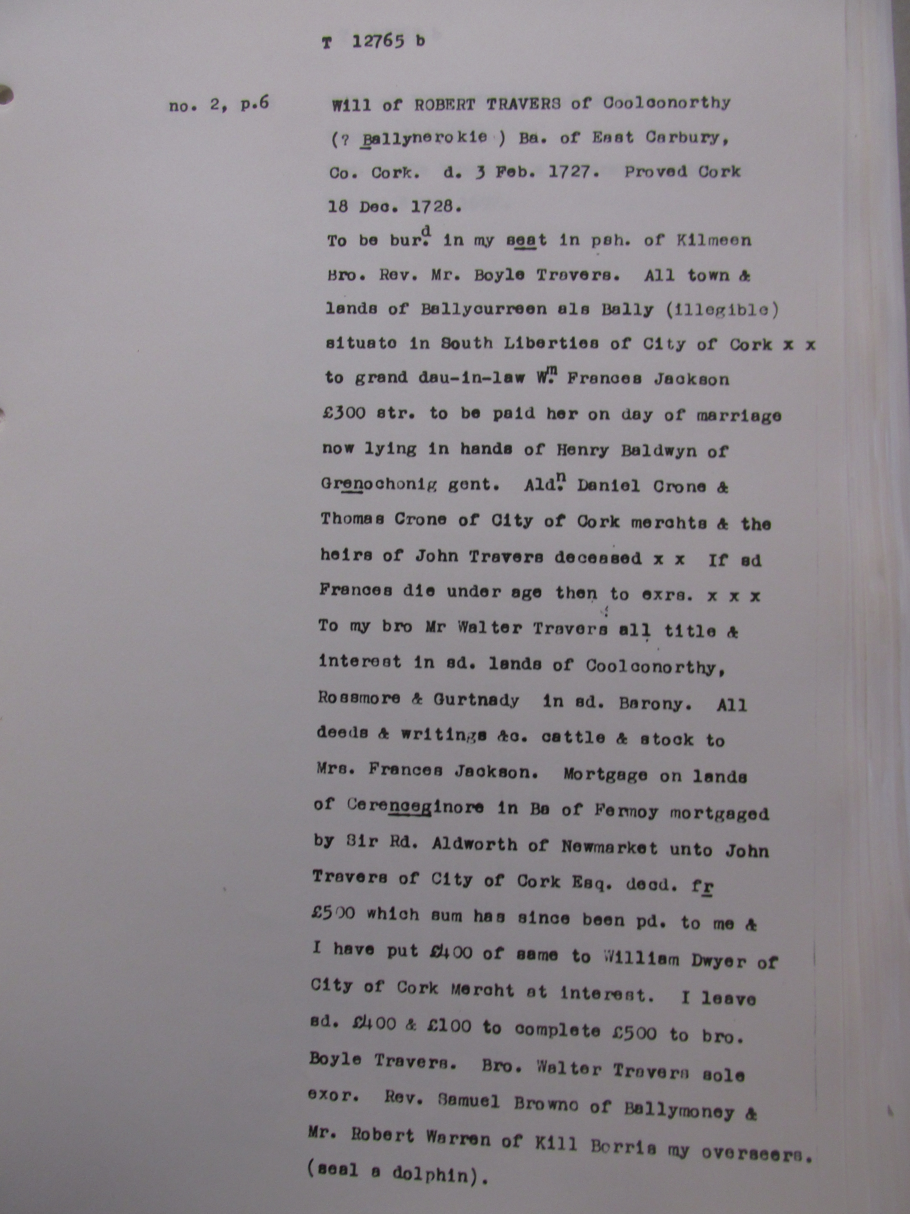 Pingback: 1702, Deed from Rev. John Patrickson, Chantor of Cloyne (Dunmanway Sister Elinor Patrickson ancestors of Durrus Blairs) to Sir Richard Cox (1650-1733), Bandon, Chief Justice of Ireland, of Lands at Dunmanway and Kilbarry, Coolsnagh, Coomshiplogh, Inchirag