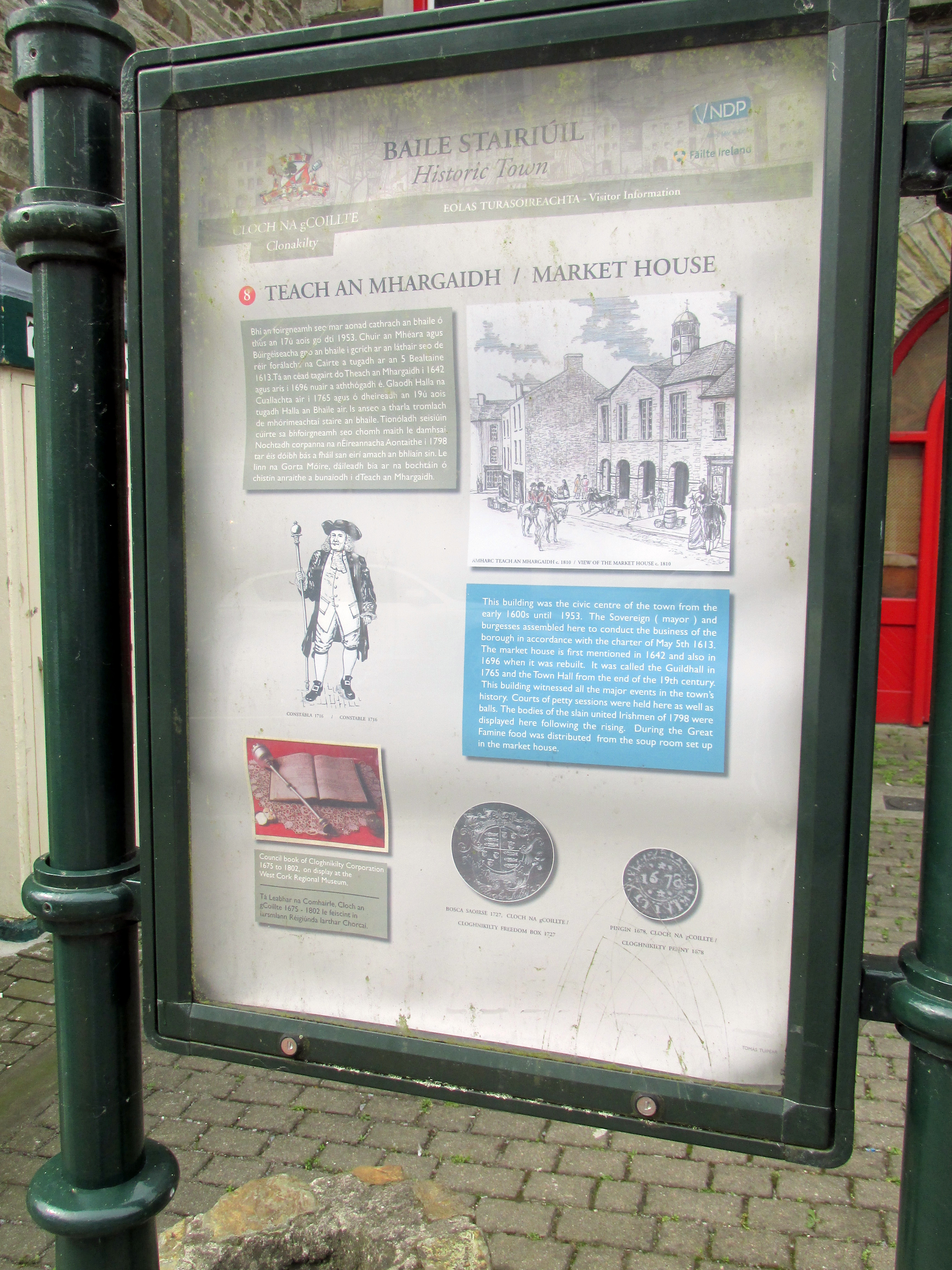 Clonakilty (Cloich na Coillte), West Cork, Market House early 1600s to 1953 base for Town hall. Petty Session Courts and Early Lawyers from area.