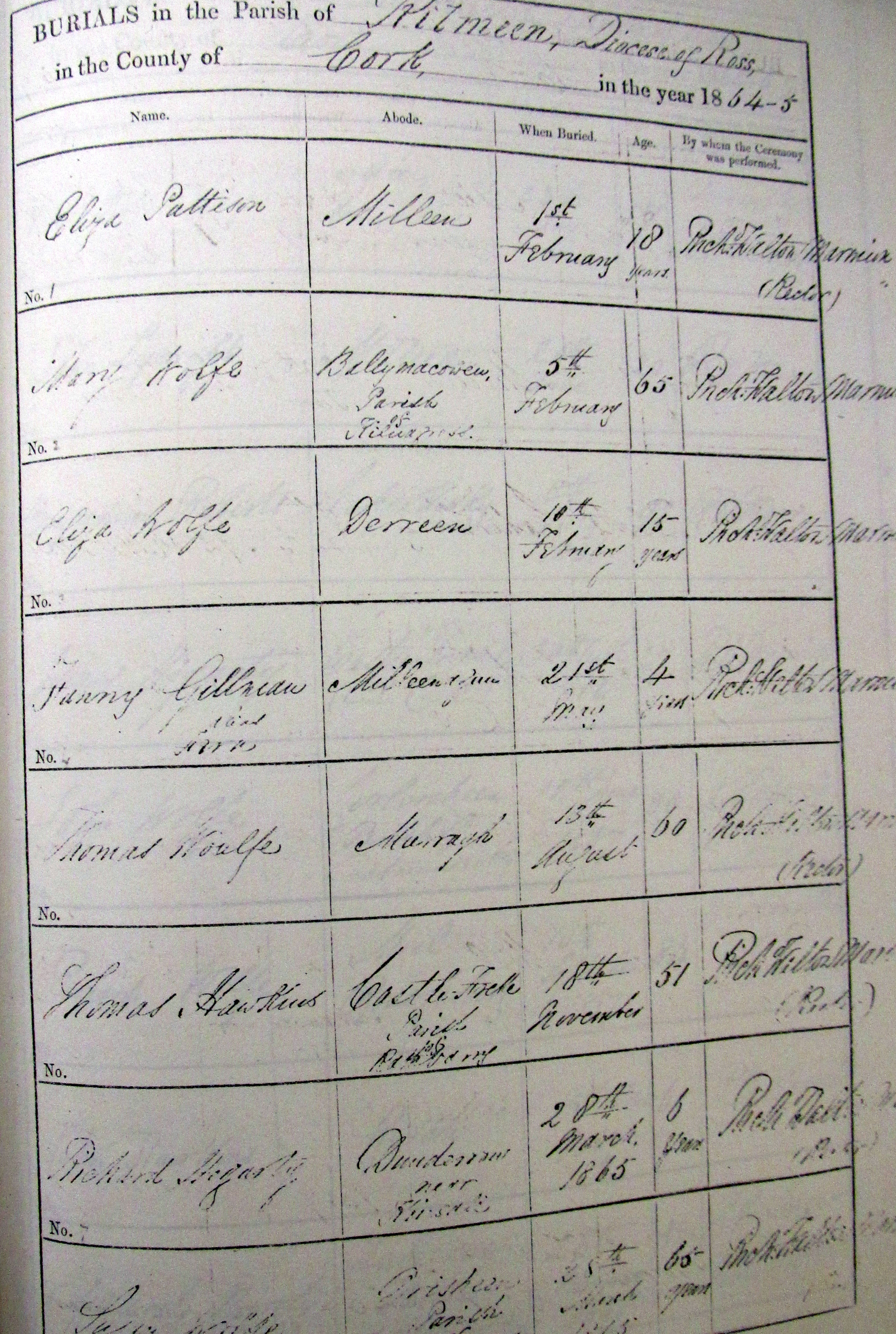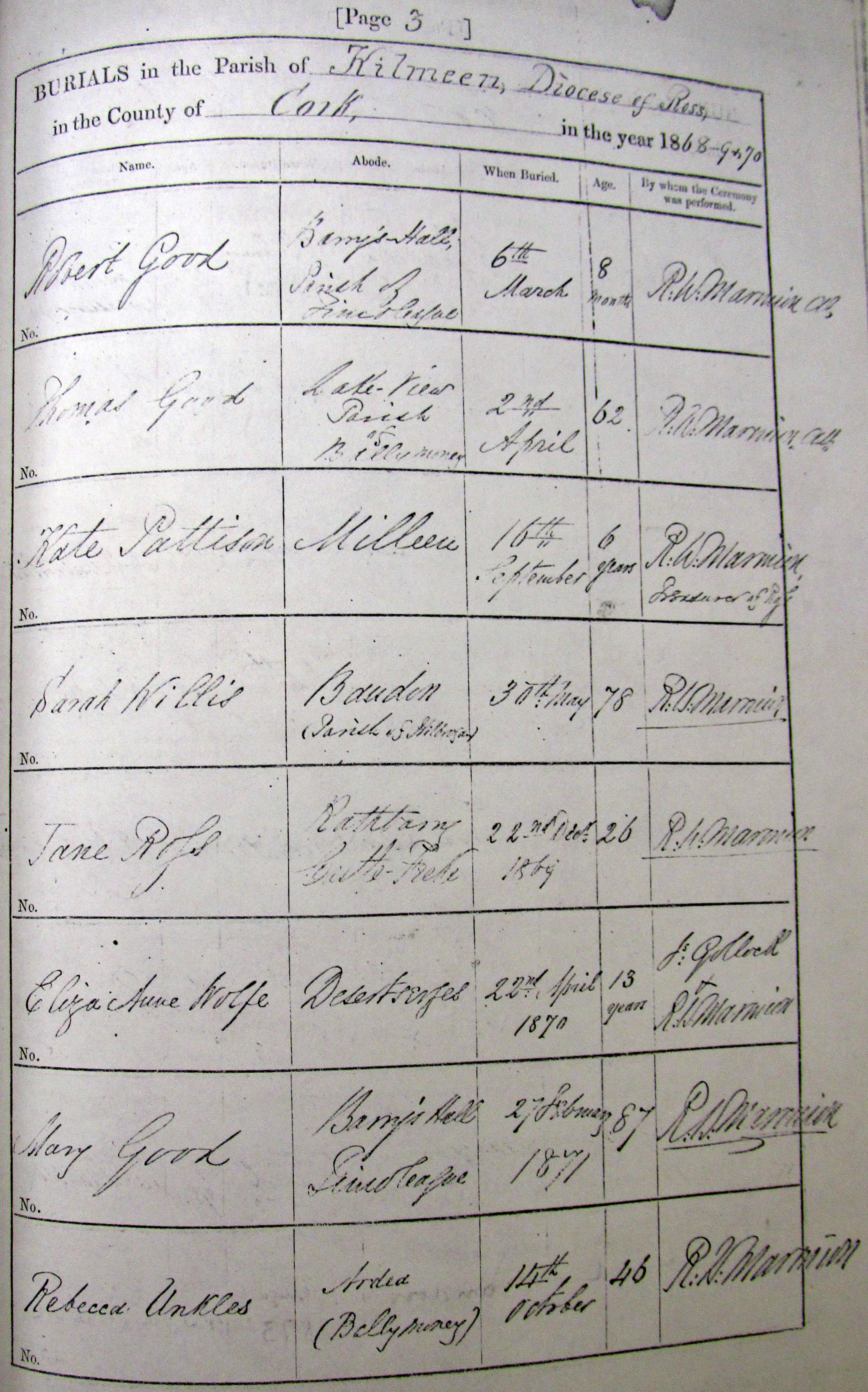 Burial Register, Parish of Kilmeen, Church of Ireland, Dioceses of Ross from 1864.