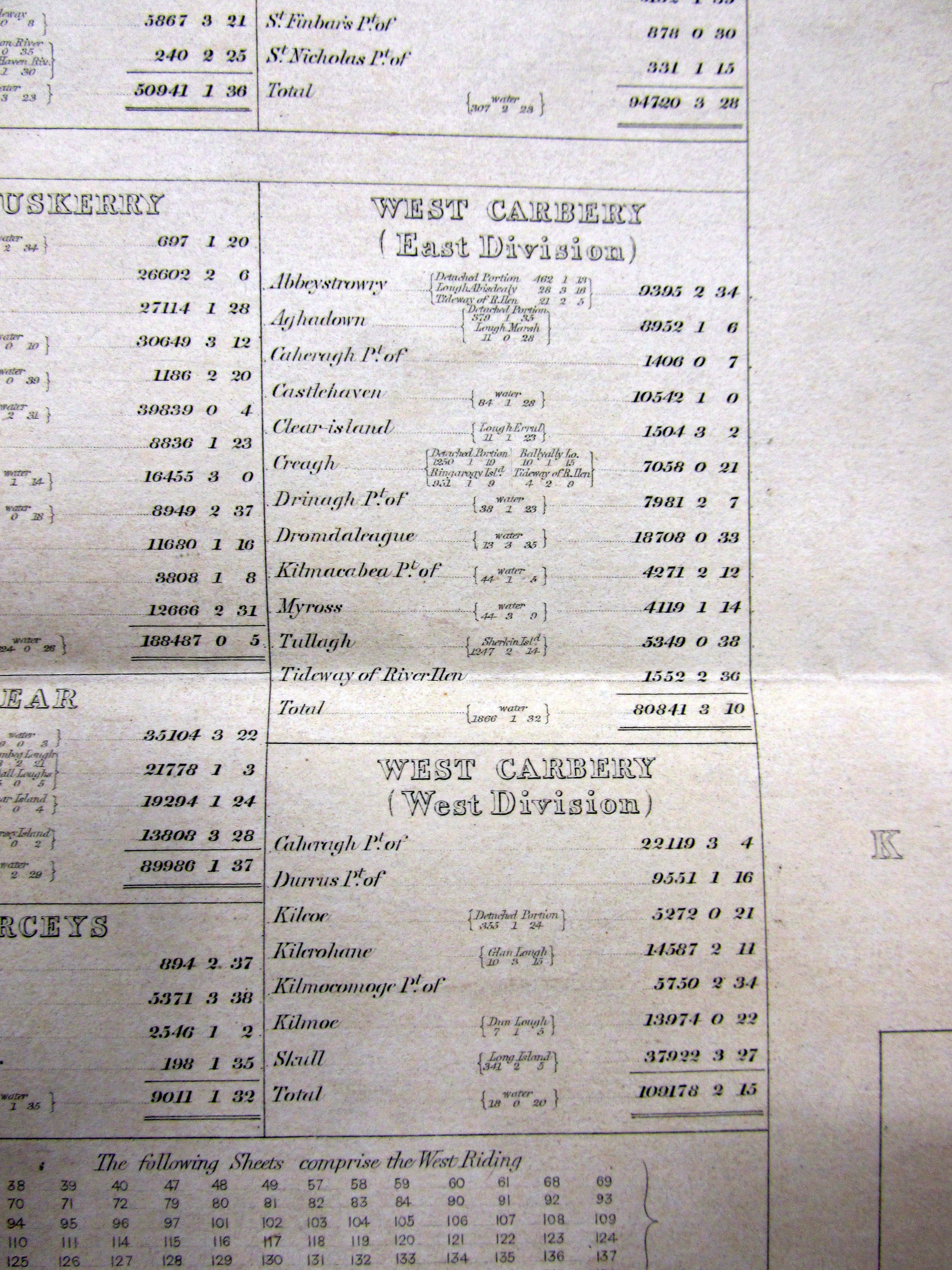 Townlands of West Cork, with acerages, extracted from 1845 map prepared for proposed Dungarvan, Lismore, Fermoy, Mallow, Killarney Railway. 02 Tuesday Sep 2014 Posted by durrushistory in Uncategorized ≈ 2 Comments Townlands of West Cork, with acerages, extracted from 1845 map prepared for proposed Dungarvan, Lismore, Fermoy, Mallow, Killarney Railway. Share this: Click to share on X (Opens in new window) X More Click to share on Facebook (Opens in new window) Facebook Like Loading...