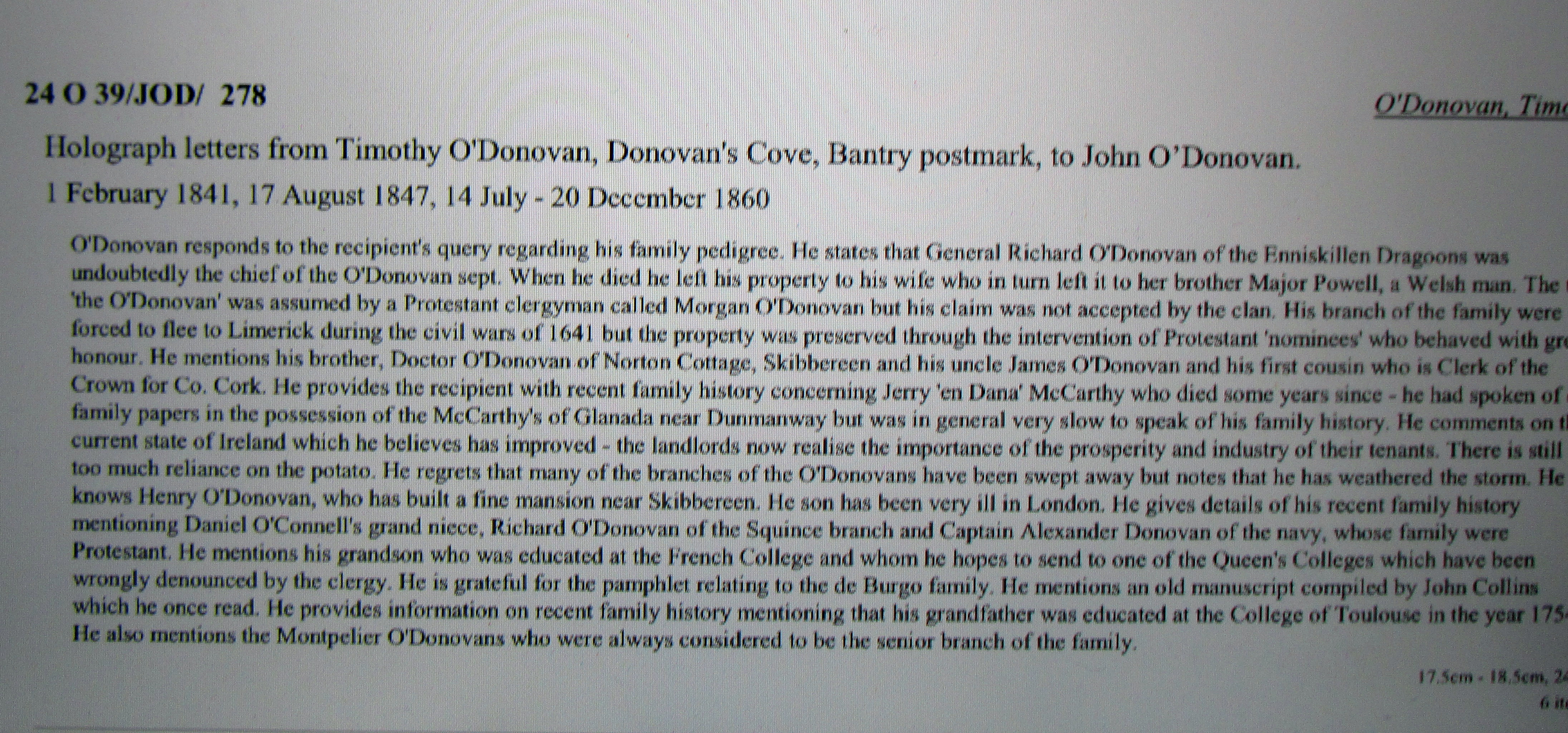 Later generations of the family were in the Dunmanway area and may have been active early 18th century buying land from the Hollow Blade Company of London (victims of South Sea Bubble).