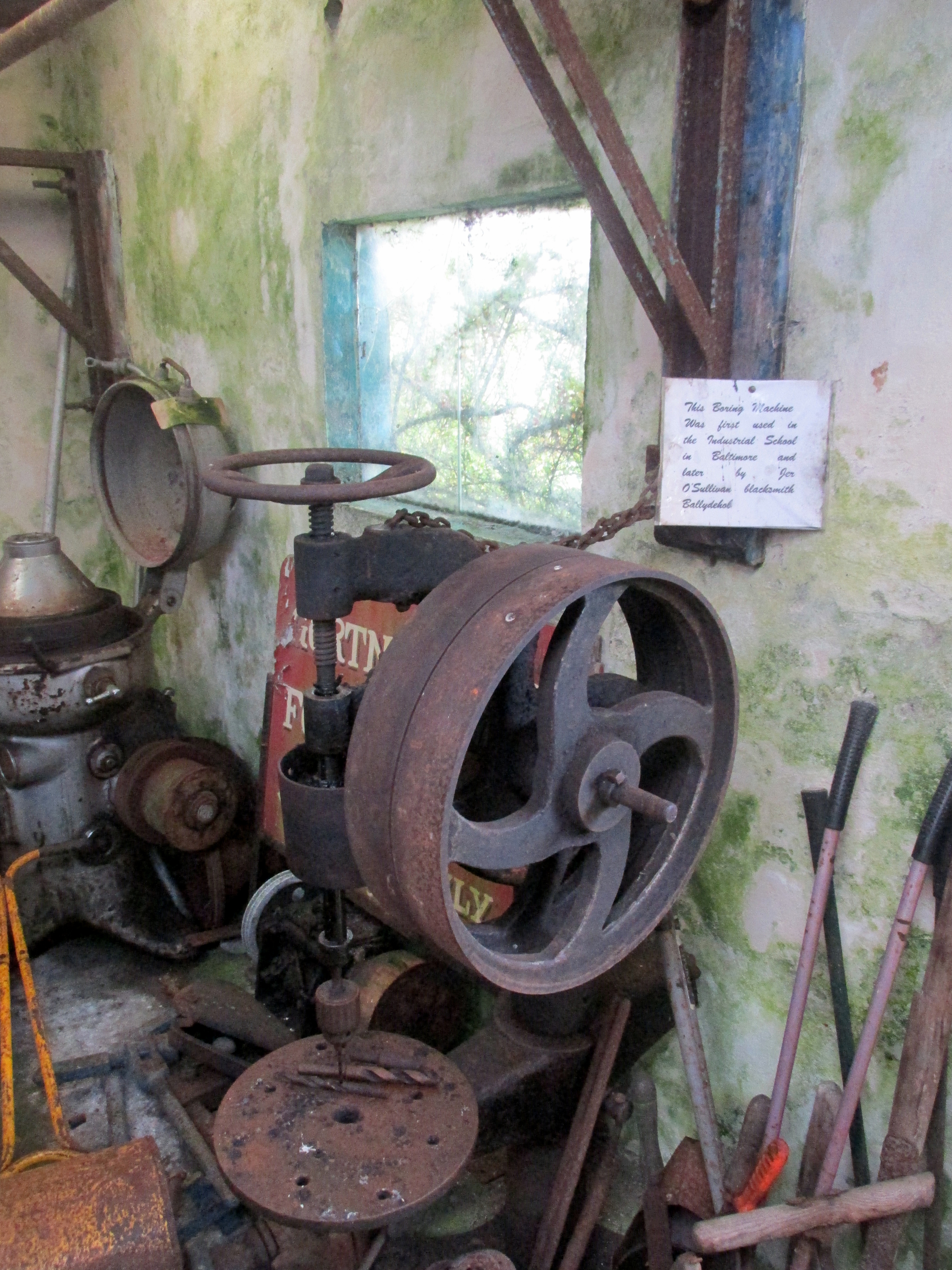 Boring machine from Baltimore Industrial School. When the school closed in 1950 it was later used by Jer O’Sullivan Blacksmith, Ballydebob, and foundlings in late 18th and 19th century West Cork.