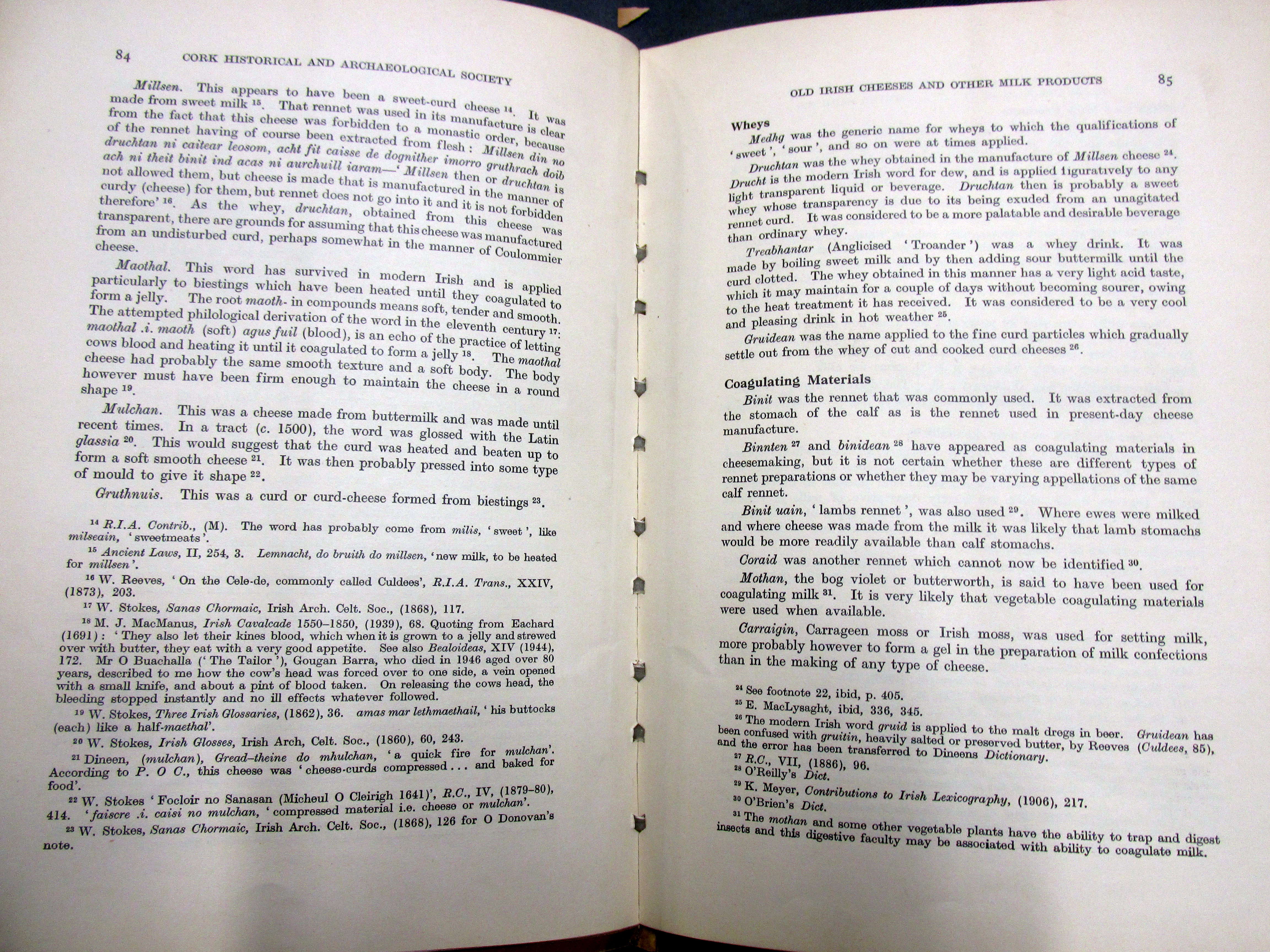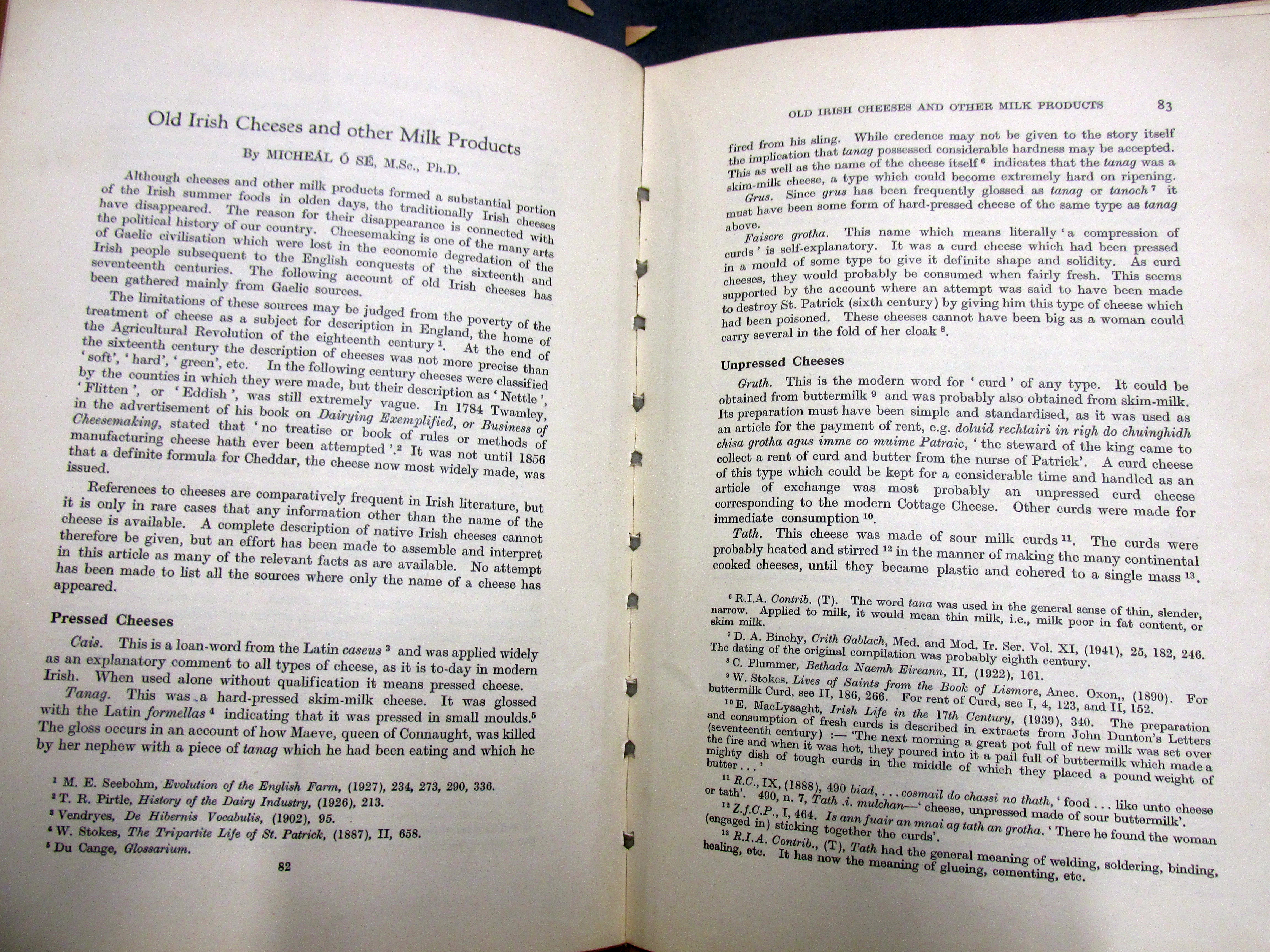 Old Irish Cheeses including use of Mothán (Bog Violet), variety Mulchas from 1500, article 1945 by Dr. Micháel Sé, MSC .