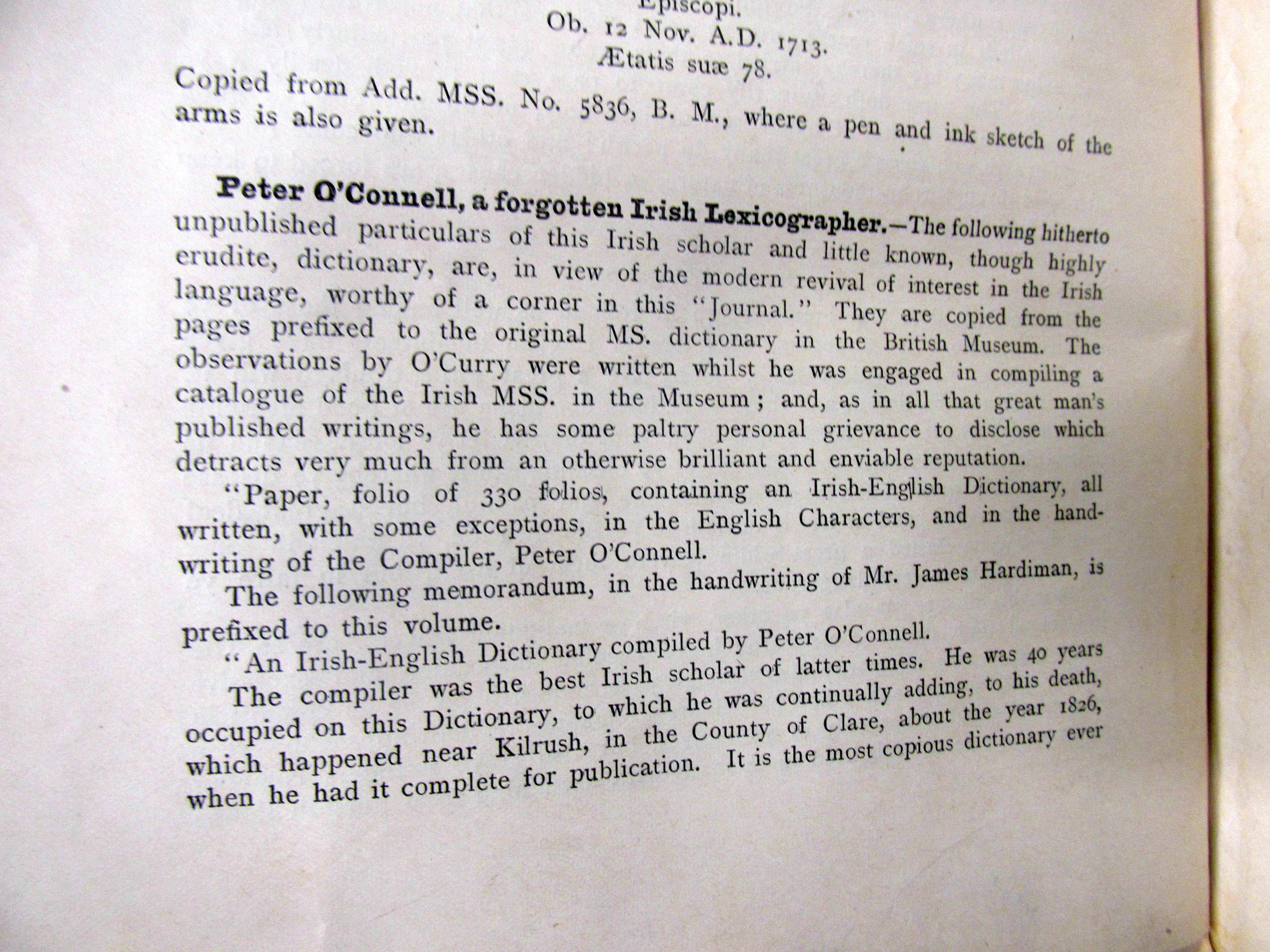 Peter O’Connell, died Carne, Co. Clare 1826, forgotten Irish Lexicographer whose dictionary was described by Dr. John O’Donovan as the author of the Best Dictionary in Irish never published inspiration for Pádraig Úa Duinín.