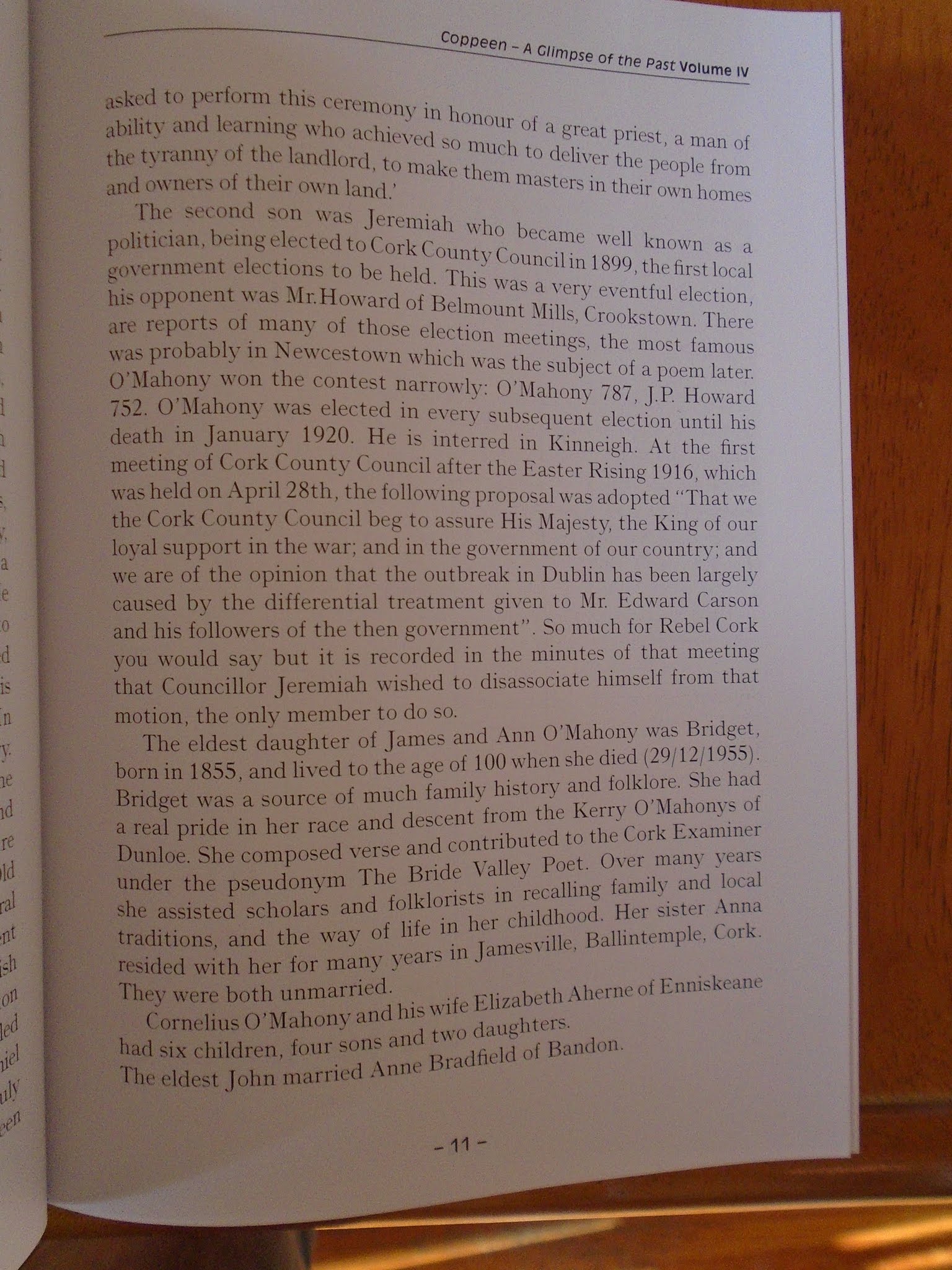 • Marriage early 1700s of Cormac McCarthy son of Florence McCarthy Mór, to Dela Welply (family originally from Wales) where he took the name Welply from whom many West Cork Welplys descend.