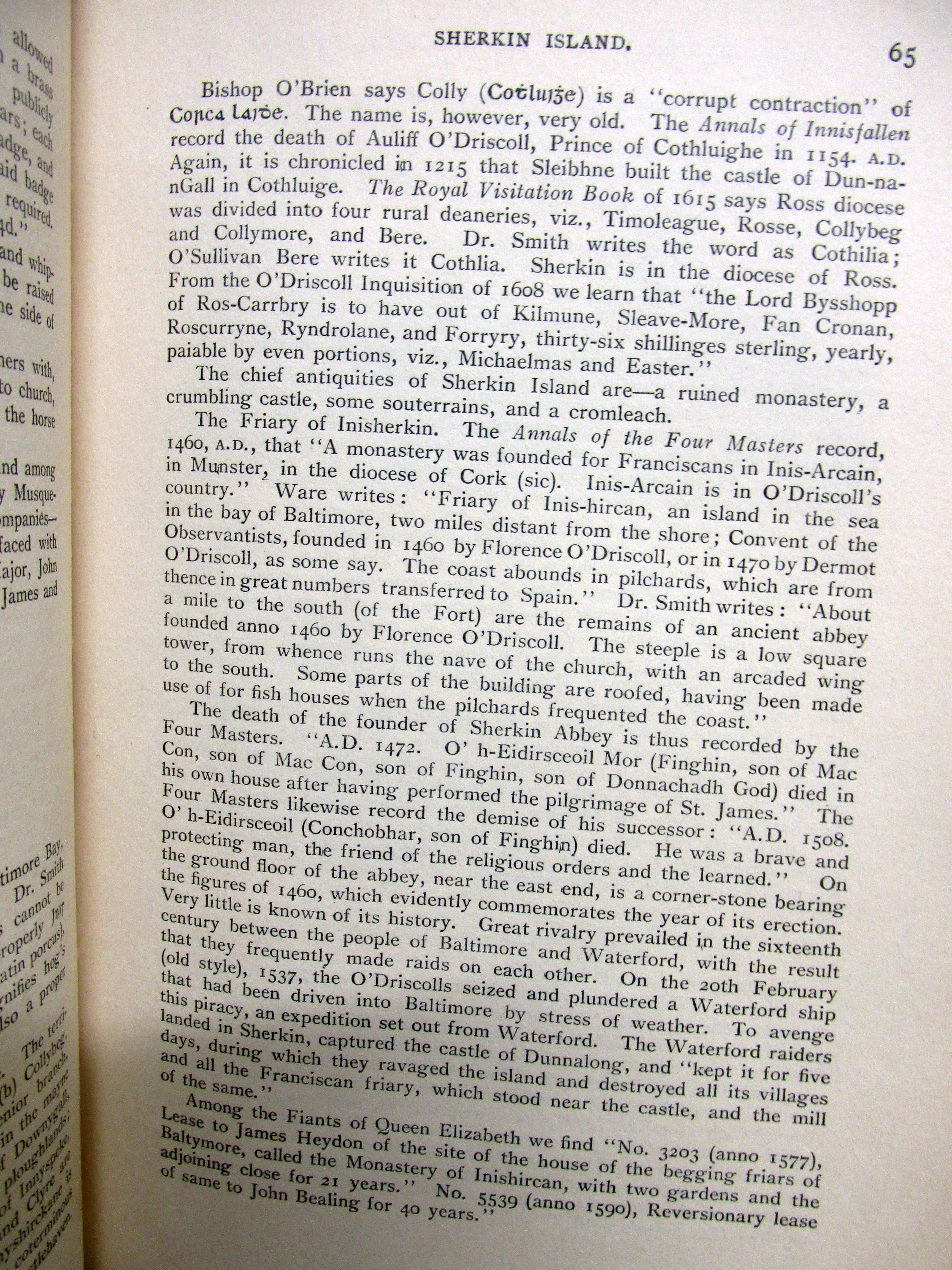 James M Burke, M.A., B.L., History Sherkin Island, West Cork, Antiquities, Townlands. 07 Sunday Dec 2014 Posted by durrushistory in Uncategorized ≈ 1 Comment TagsJames M Burke James M Burke, M.A., B.L., History Sherkin Island, West Cork, Antiquities, Townlands. From JCHAS Journal, 1905 https://durrushistory.wordpress.com/2014/09/14/sketches-by-cork-antiquarian-john-windle-1801-1865-ross-cathedral-and-old-church-mount-gabriel-sherkin-island-baltimore-castle-ancient-brazen-vessel-found-in-june-1845-and-deposited-in-castle/ https://durrushistory.wordpress.com/2014/06/25/progress-of-island-and-coast-society-proselytising-education-activities-in-west-cork-1853-bere-island-capaneel-muintervarra-doonore-roskeera-rooska-geahies-dunmanus-bay-then-irish-speaking/ https://durrushistory.wordpress.com/2014/01/18/1537-the-odriscolls-of-baltimore-west-cork-and-the-sancta-maria-de-soci-from-lisbon/ Share this: Click to share on X (Opens in new window) X More Click to share on Facebook (Opens in new window) Facebook Like Loading...