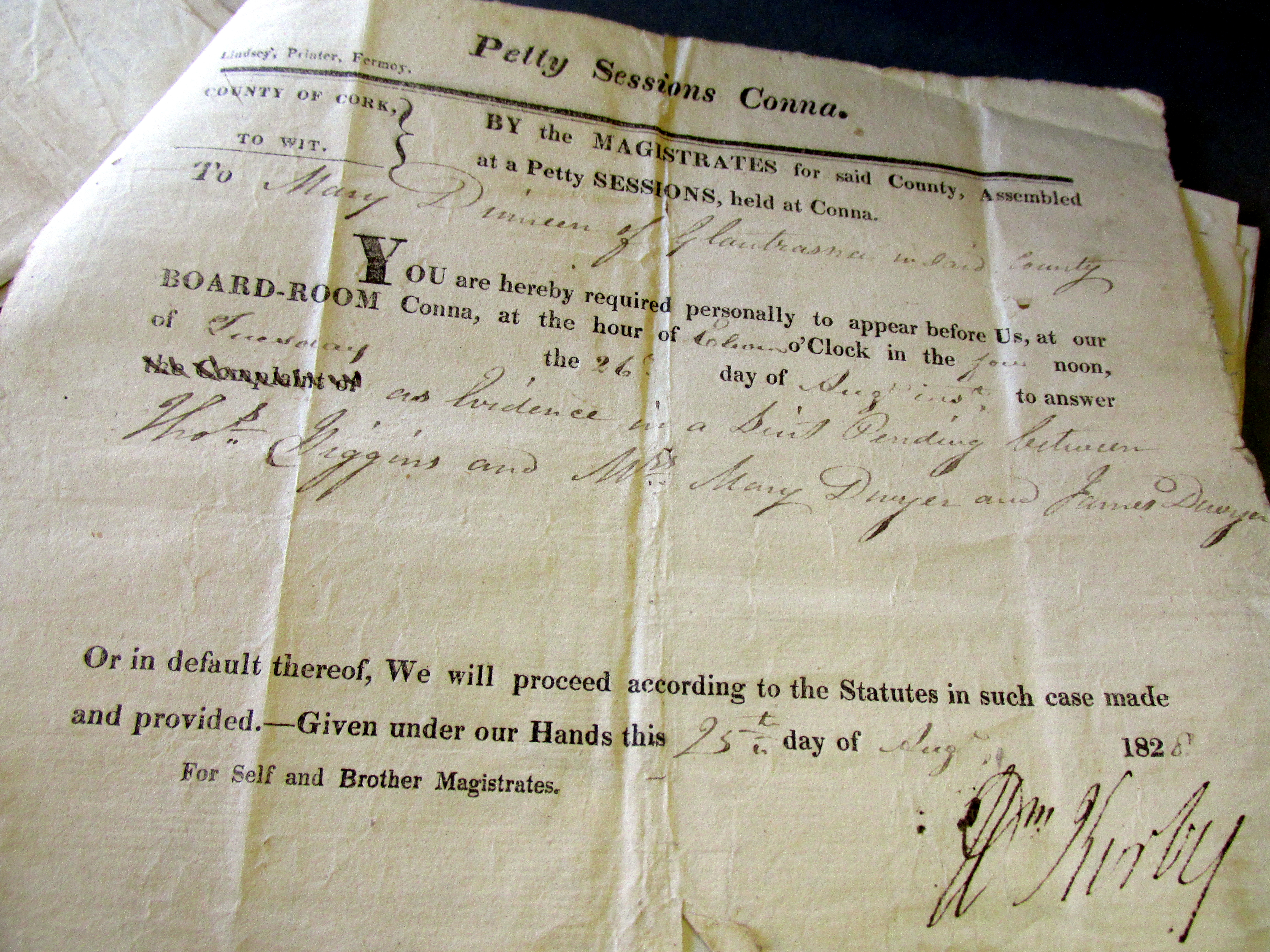 Petty Session Court Witness Summons, Conna, Co. Cork, 1828