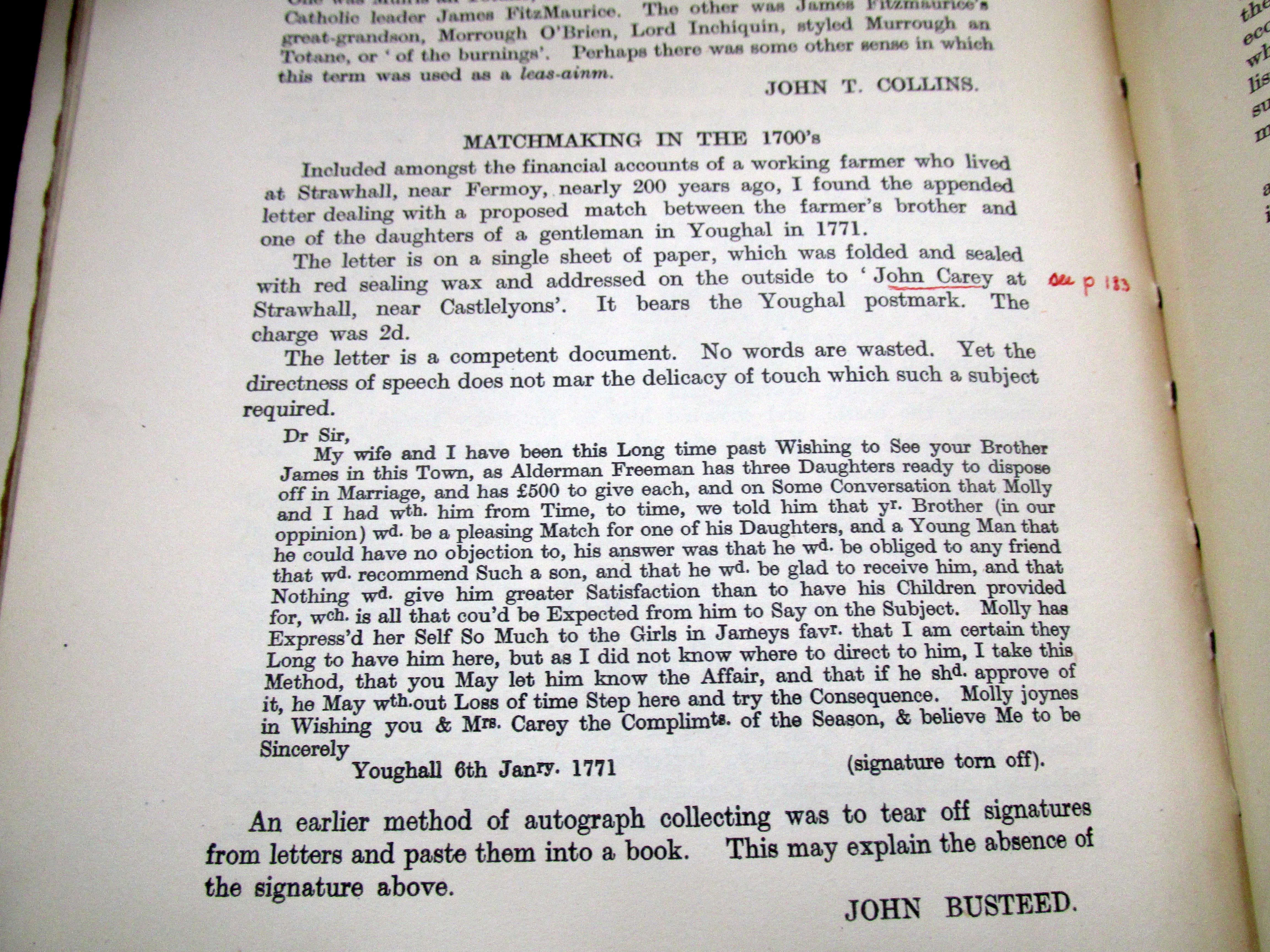 Matchmaking in Youghal, Co. Cork, 1771 04 Sunday Jan 2015 Posted by durrushistory in Uncategorized ≈ 1 Comment TagsYoughal Matchmaking in Youghal, Co. Cork, 1771 Courtesy JCHAS, c1946. Share this: Click to share on X (Opens in new window) X More Click to share on Facebook (Opens in new window) Facebook Like Loading...