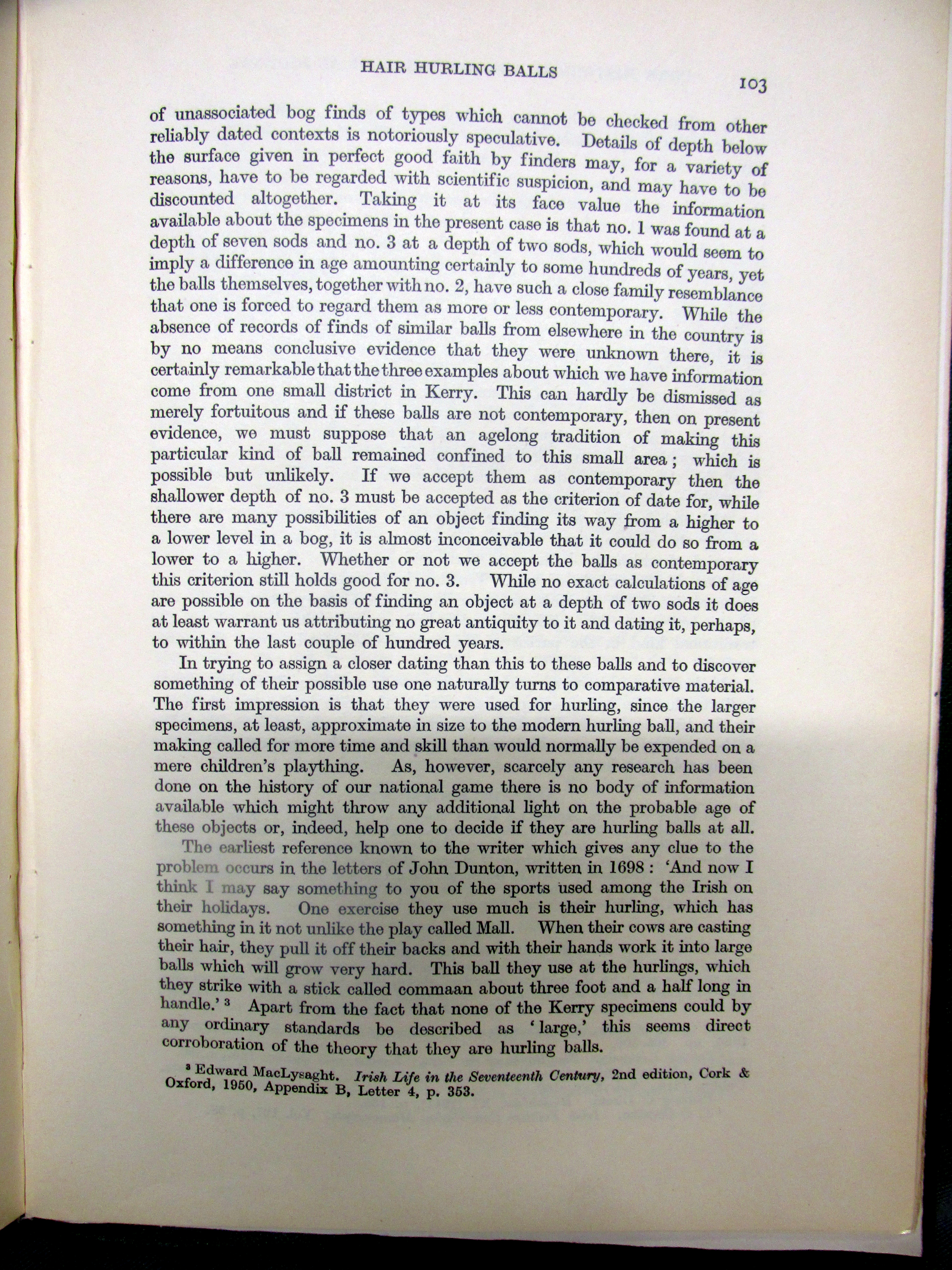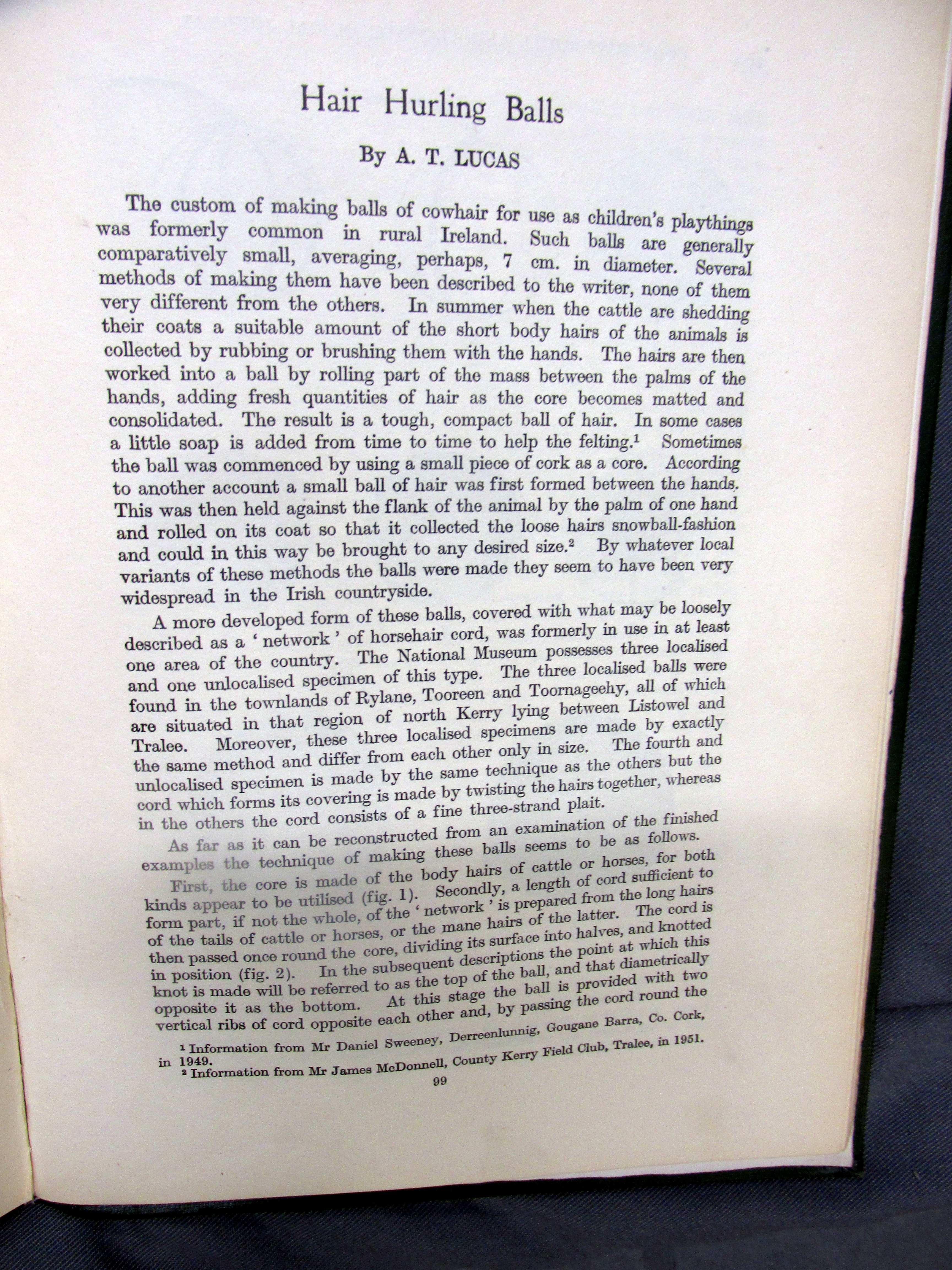Cowhair Hurling Balls 20 Tuesday Jan 2015 Posted by durrushistory in Uncategorized ≈ Leave a comment TagsA.T. Lucas, Director National Museum of Ireland, Hurling Balls Cowhair Hurling Balls By Dr. A.T. Lucas, Director National Museum of Ireland, Courtesy JCHAS 1952. Share this: Click to share on X (Opens in new window) X More Click to share on Facebook (Opens in new window) Facebook Like Loading...