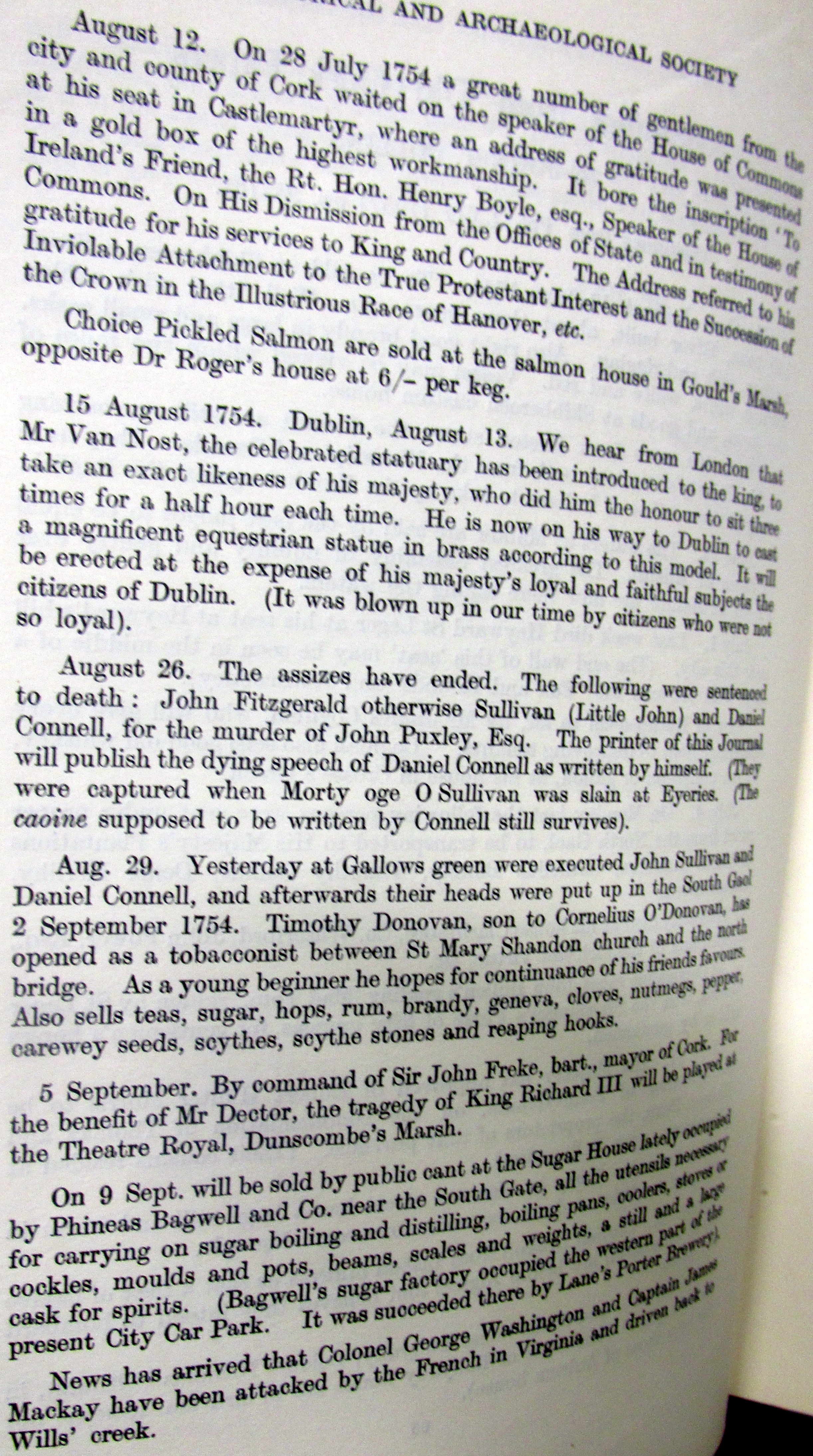 Sentenced to Death at the Cork Assizes August 1754, John Fitzgerald otherwise Sullivan (Little John) and Daniel Connell for the murder of John Puxley Esq. the Corke Journal to publish the dying speech of Connell. They were apprehended at Eyries, Beara when Morty Oge O’Sullivan was slain. The Caoin still survives.