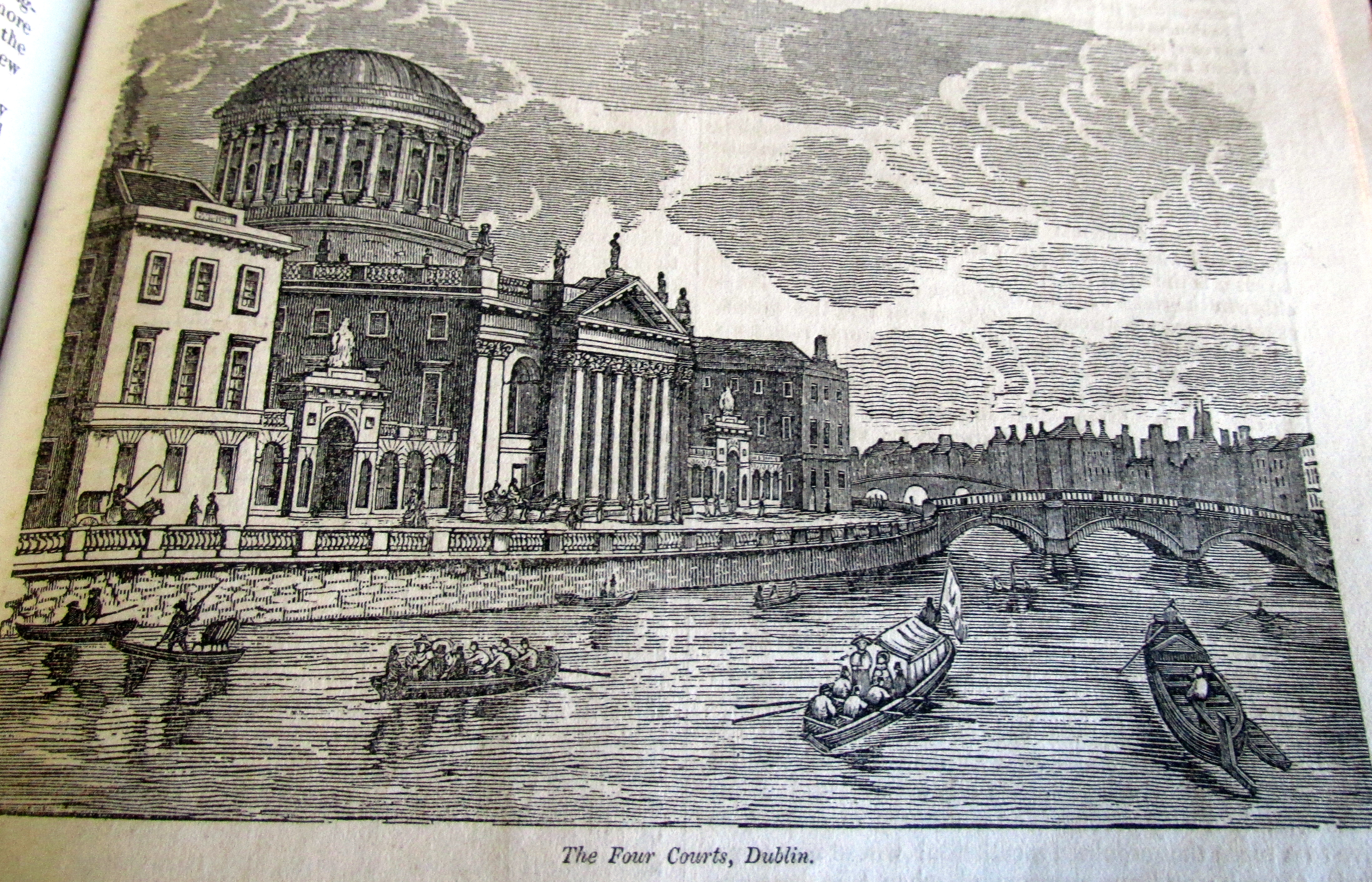 1832, Four Courts, Dublin , showing River Taxis, before destruction of 1922 and later suggestion that complex be turned into a surface car park together with ruined Custom House.