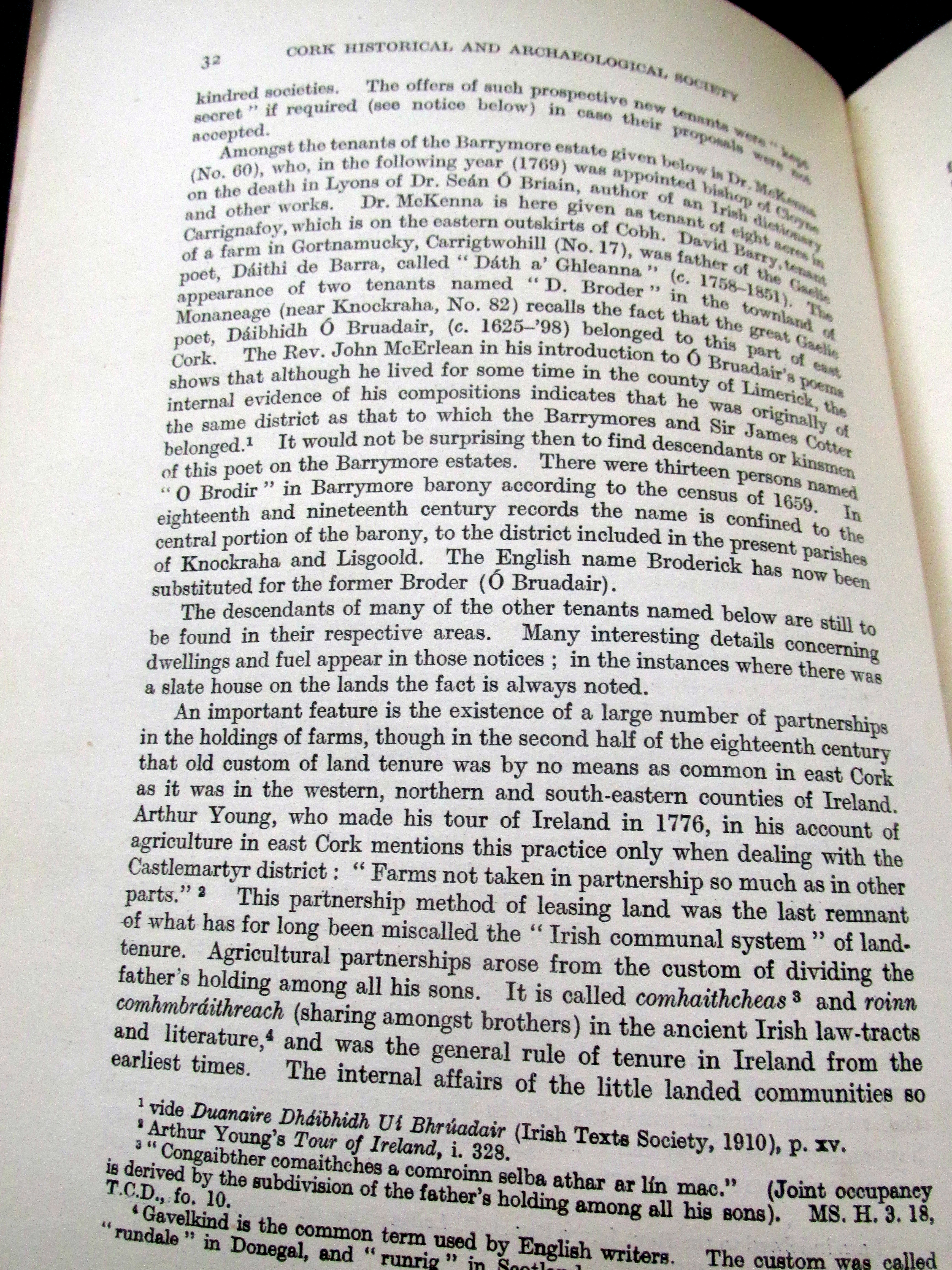 References of East Cork Gaelic Poets and Scholars, Dáibhidh Brudair (Broderick) (1625-1698), Dáithi De Barra (Barry/Dáth a’Ghleanna 1758-1857), Dr McKenna Compiler of Irish Dictionary and Bishop of Cloyne, 1769.