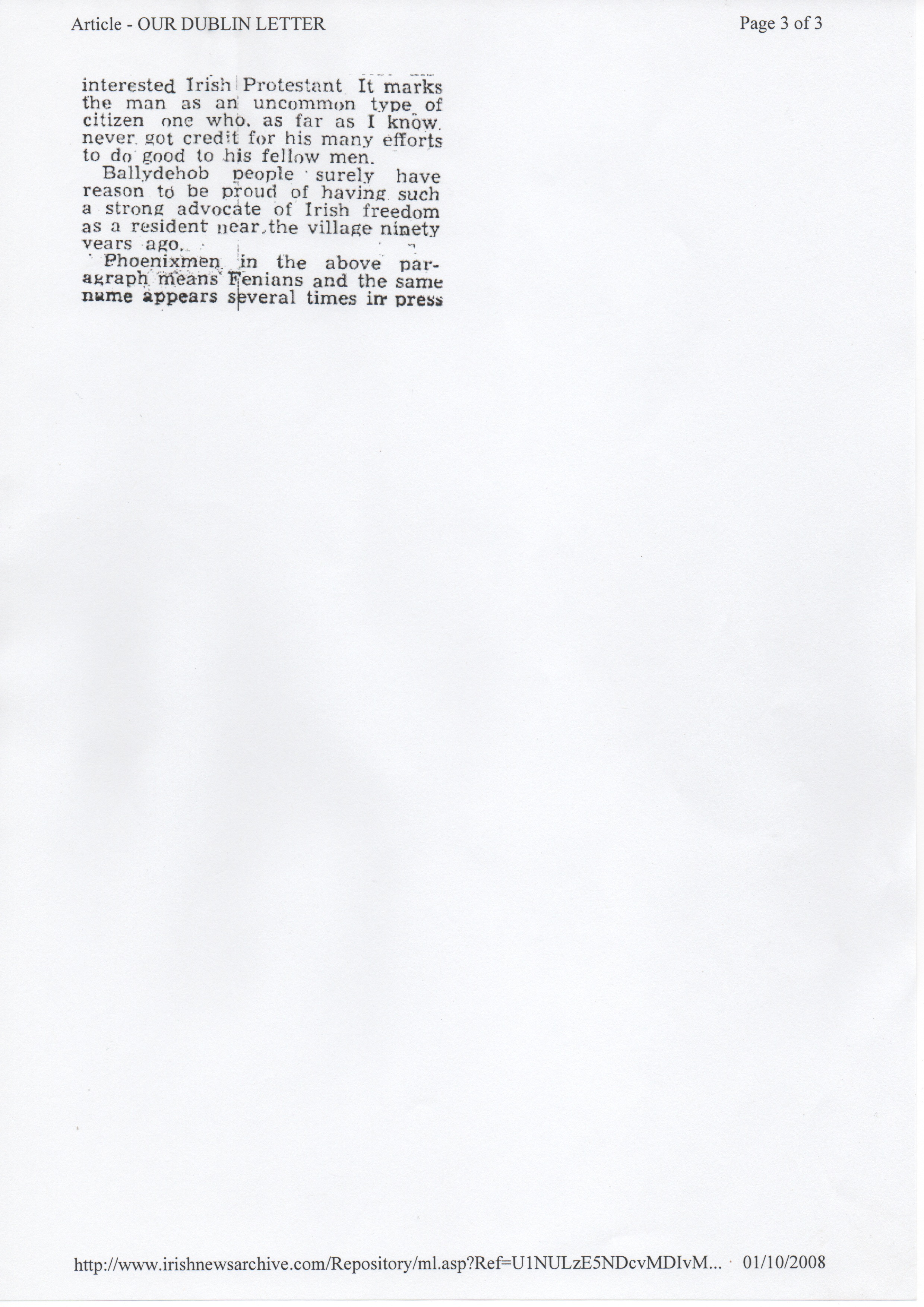 1902 meeting Desertserges, Father D. Bernard, C. C., Ahiohill introduced Mr. O’Houlihan, Gaelic League Organiser for Munster, said 4 years ago could not speak a word of Irish.