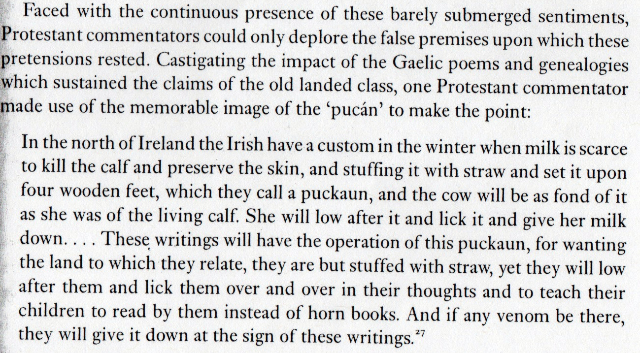 The analogy of the Pucán, use of Gaelic Poetry and Genealogies to Buttress Hopeless Cause of Restoring Lost Estates of Irish Catholic Gentry 18th century.
