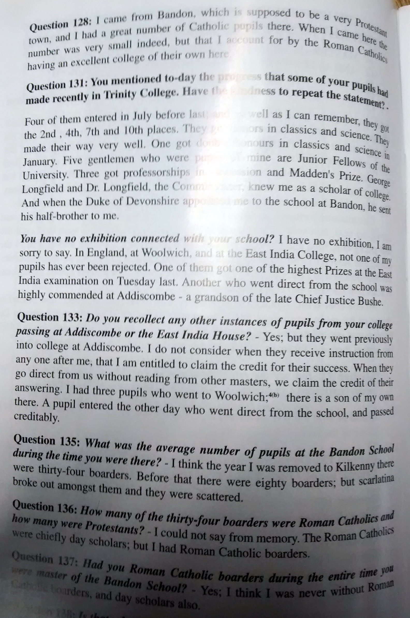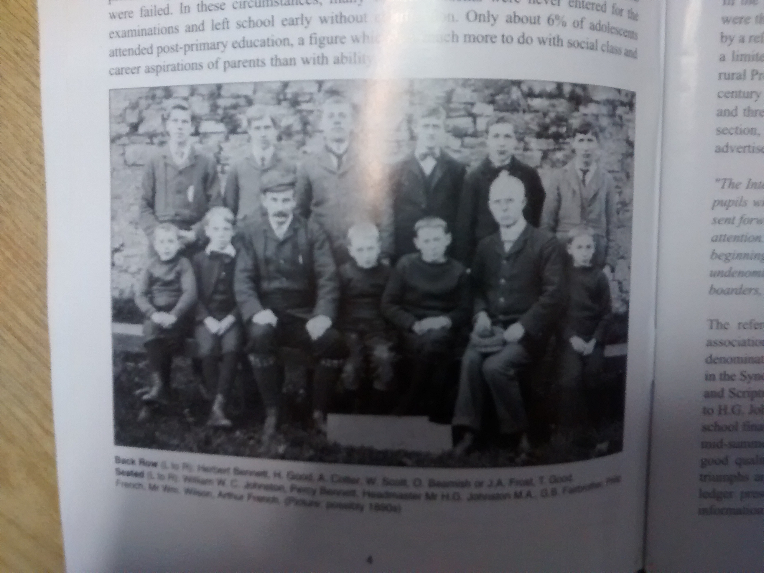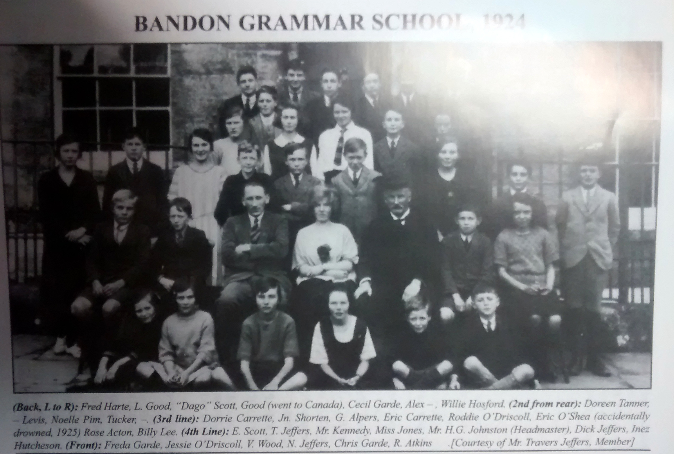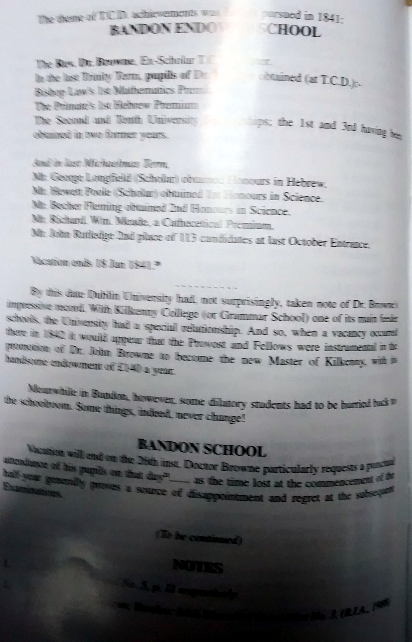 Doctor John Browne (born Elphin Roscomon) (1798-1870), Master Bandon Endowed School, Evidence 1855, some boys gooing for East India Company Clerkships, Curriculum, Bandon Grammar School. Co. Cork, 1906 and 1924, Photograph Pupils names included.