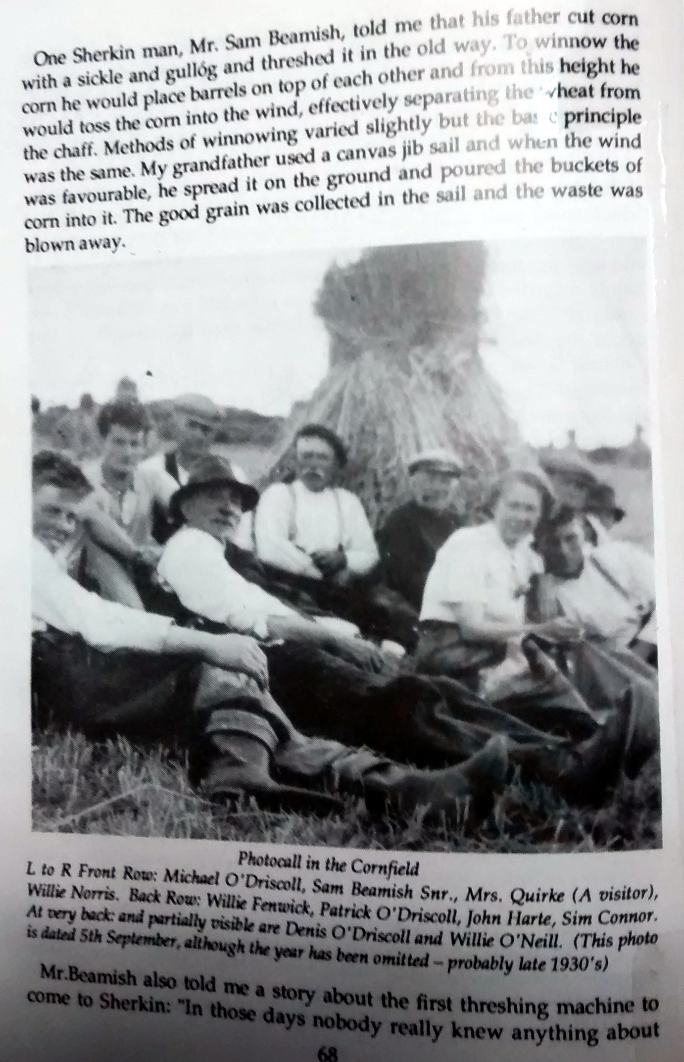 Group photo at the corn 1930s Skerkin Island, West Cork, Old Fashioned photo 1947, harvesting seaweed with the ‘Scanhadór’