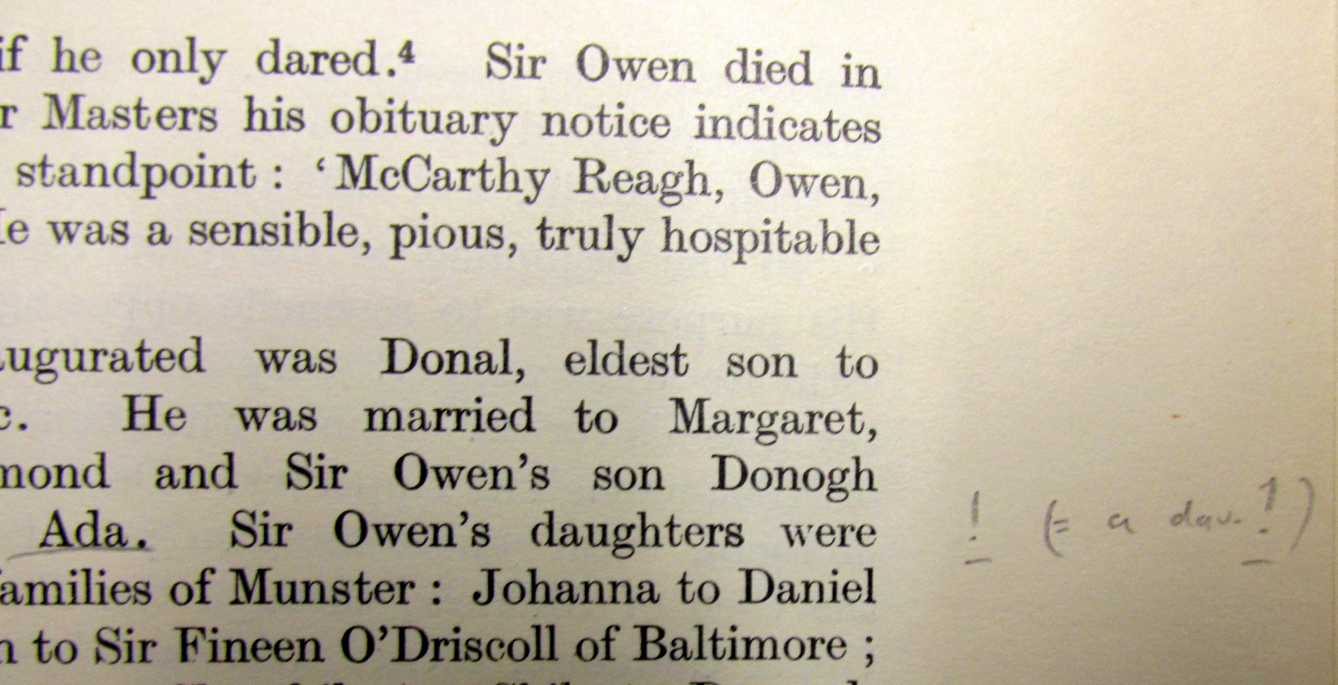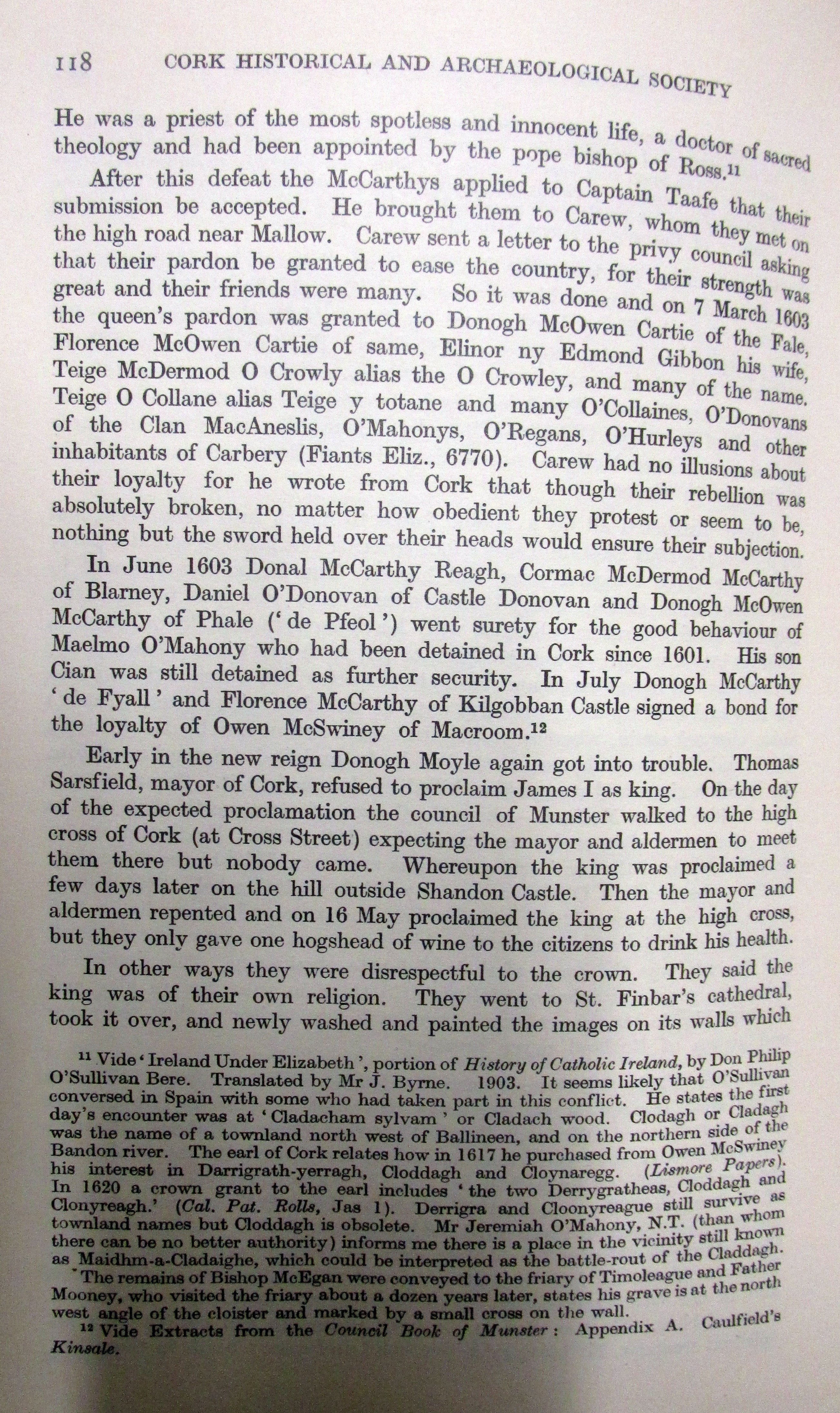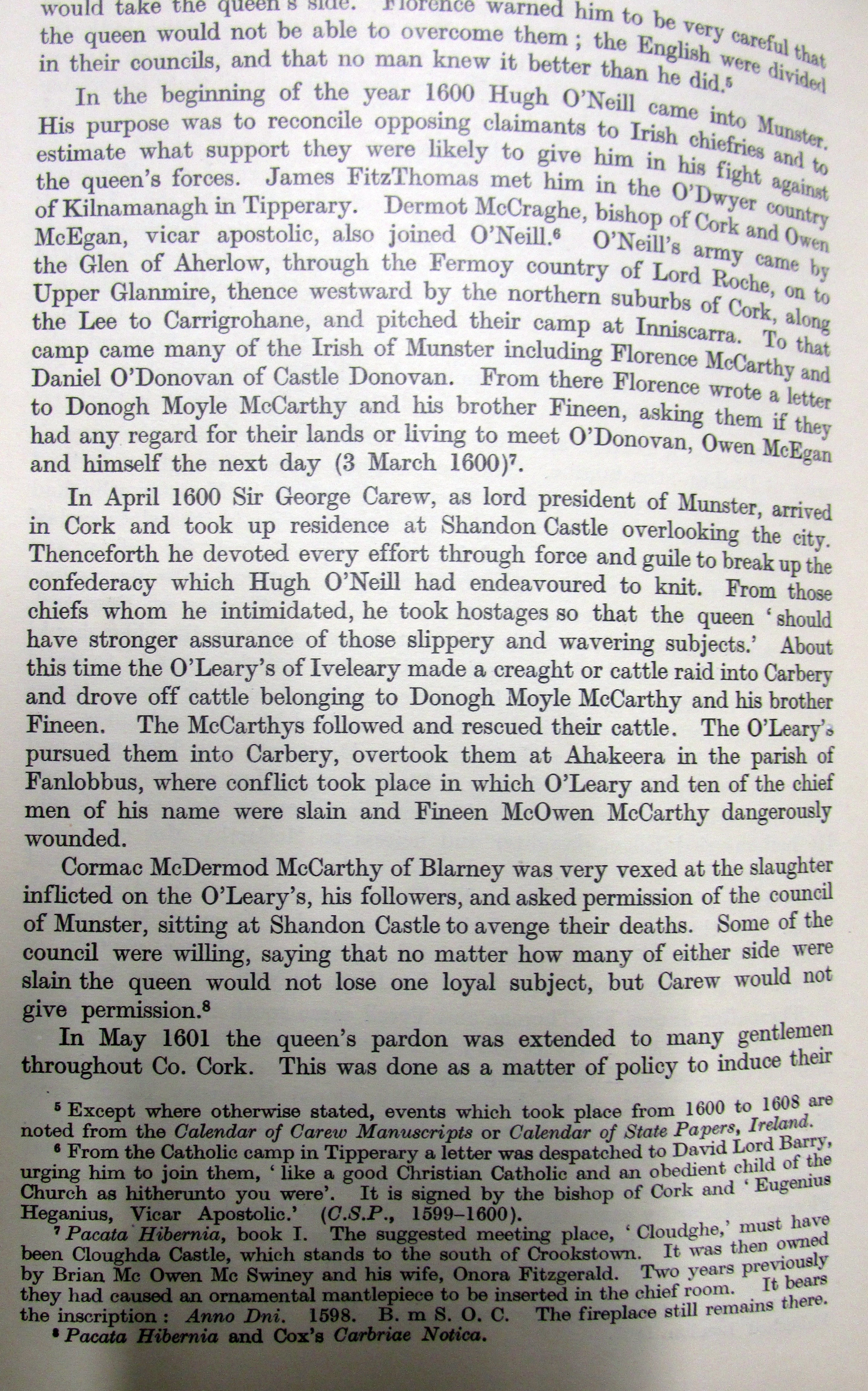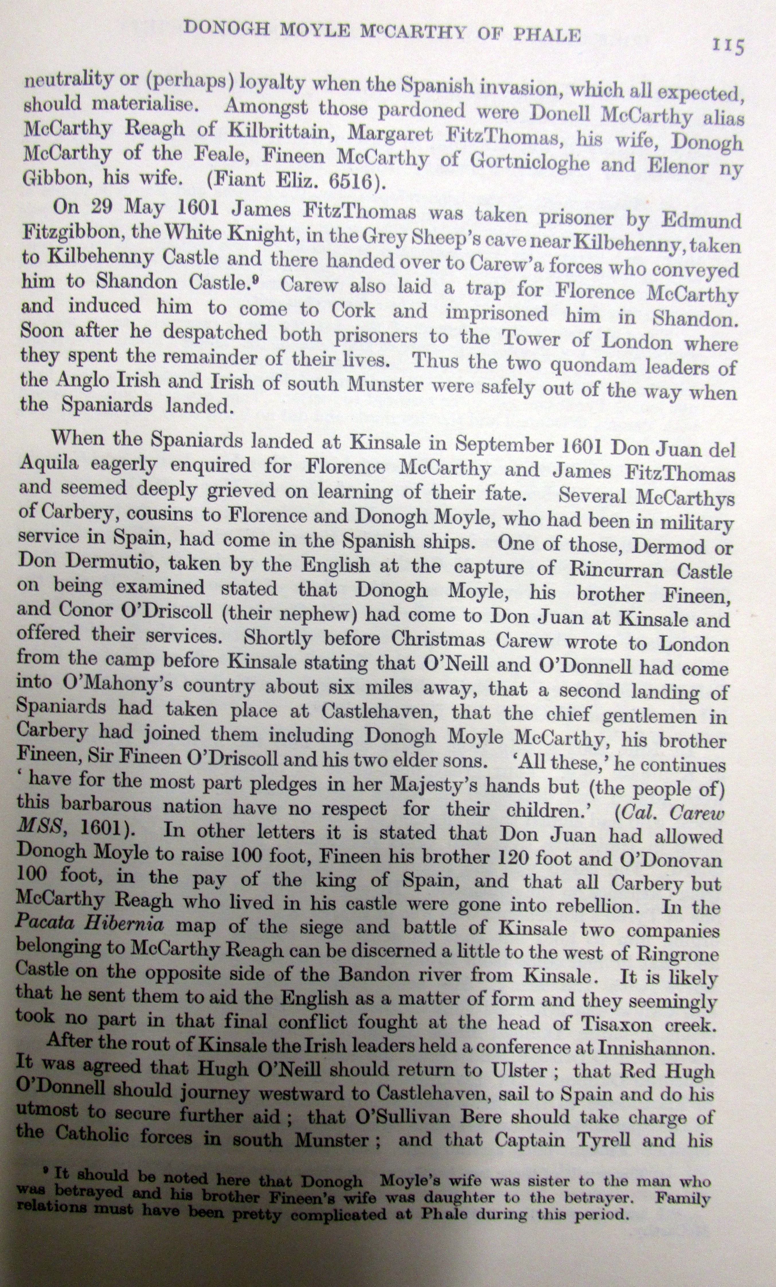 The coming of the McCarthys to Carbery, 1232 AD, Donogh Moyle (Leas-Ainm; Nickname) McCarthy, Phale, (Ballineen), Co. Cork Died 1630s Two Sons in Oxford. The lands referred to came into the possession of the Evans-Freke family (Lord Carbery).