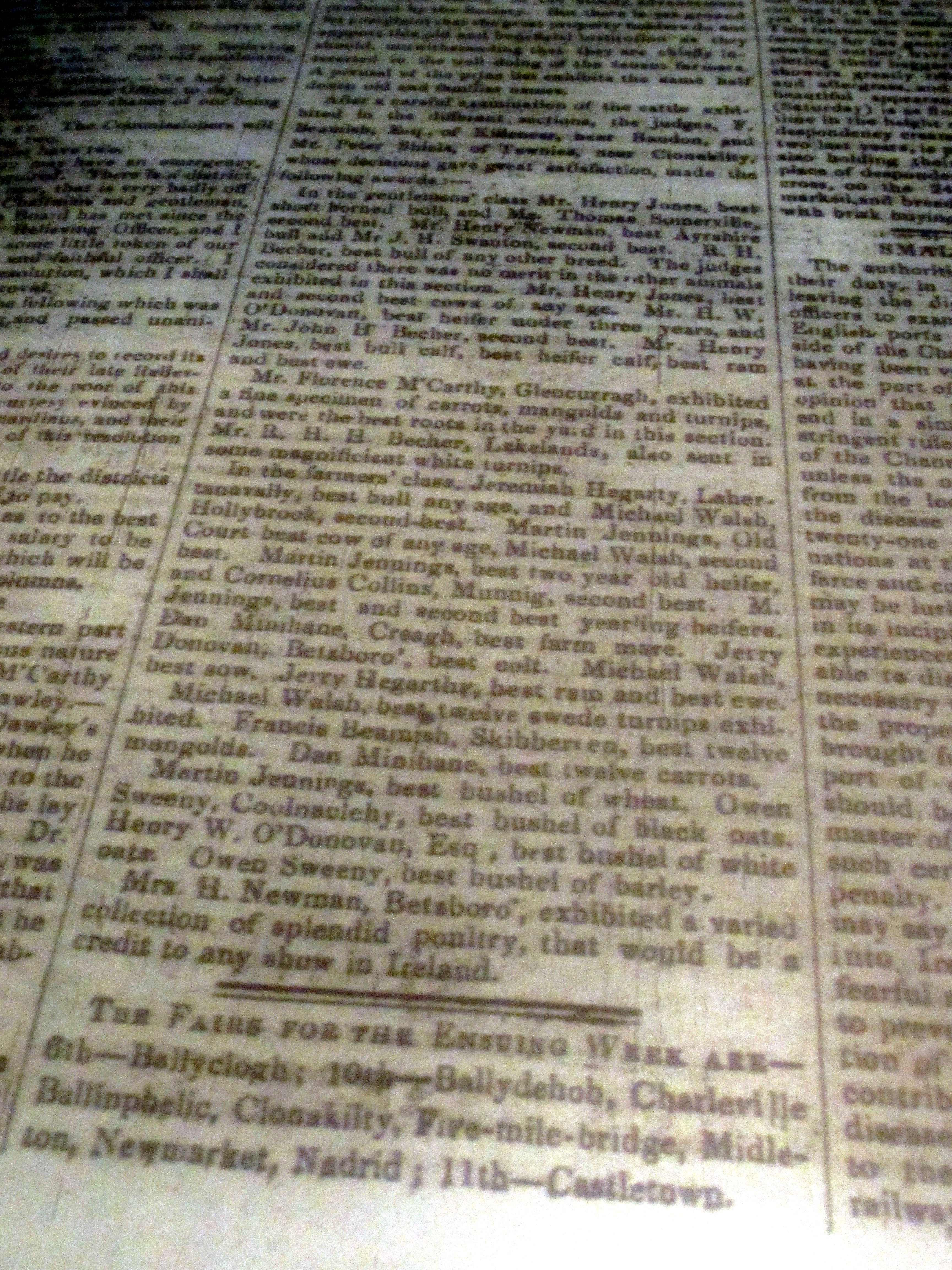Pingback: Munster Flax Society Visit to Bantry Farms 1860: Prizes James Philips, James Vickery, Ballycomane, Charles Dukelow, Best Dairy, Coomkeen, Improvements on Bandon Estate, Durrus 1869, praise from Charles Dukelow, Coomkeen, Slate Quarry, Barytes Mines,Consid