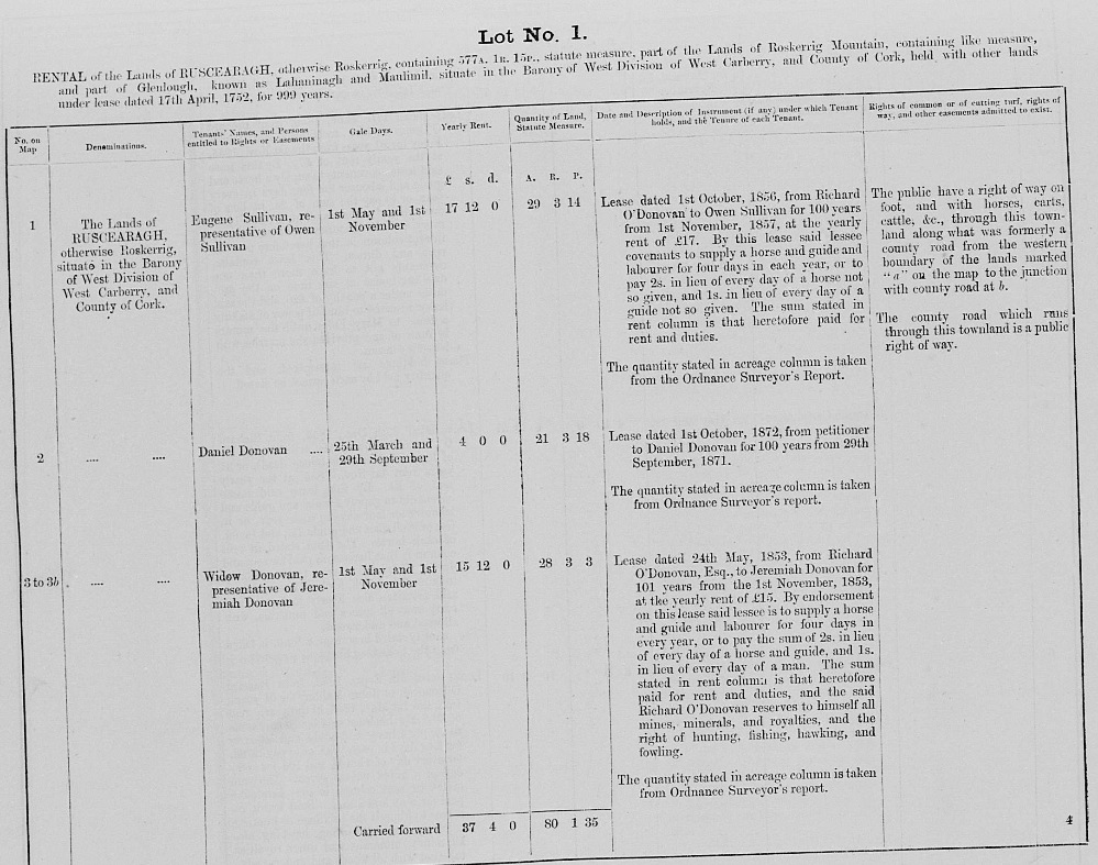 Lease Covenants, Becher estate, Schull 1833, Tenant to Supply Landlord, One fat Hog, of one and a half hundred weight, O’Donovan Estate., Roskerrig, Kilcrohane, 1856, To Supply a Labourer and horse and Guide four days a year