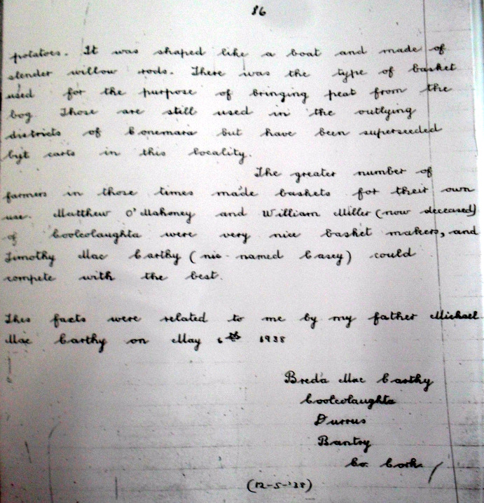 ‘Black Denis’ Cronin, Coomkeen, Matthew O’Mahony, William Miller, Timothy (Casey) McCarthy, Coolculaghta, Basket Makers, 1938 School Folklore Collection, Carrigboy National School, Durrus, West Cork. From Breda McCarthy, Coolcuaghta.