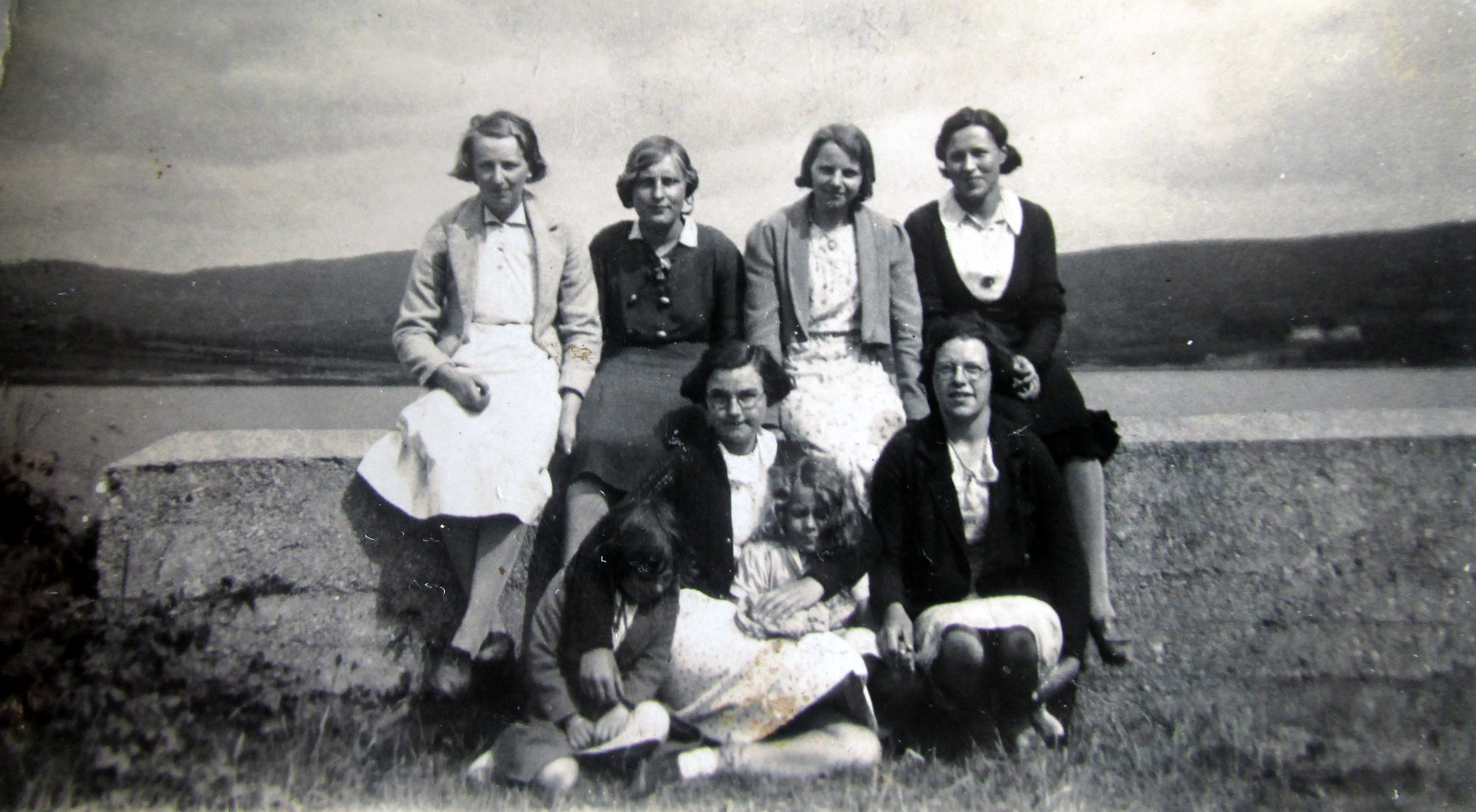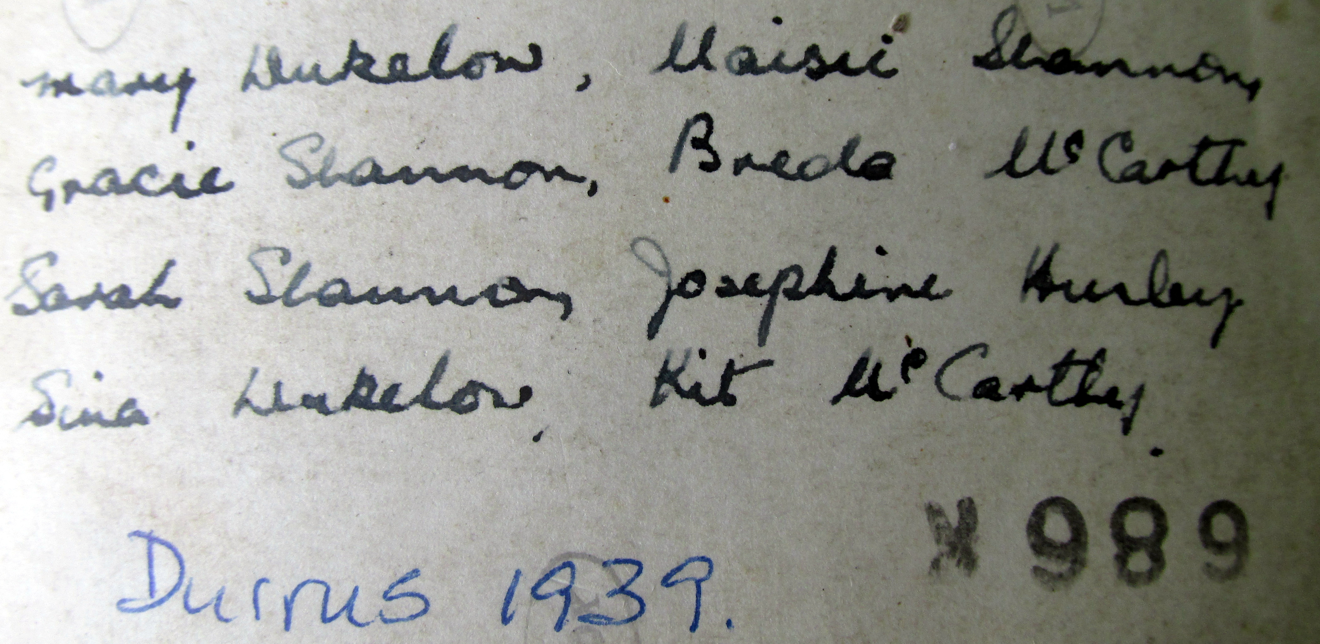 The photograph is of local girls on a Sunday afternoon before the Pattern a dance held on a raised podium. Among the musicians was a fiddler Con Desmond.