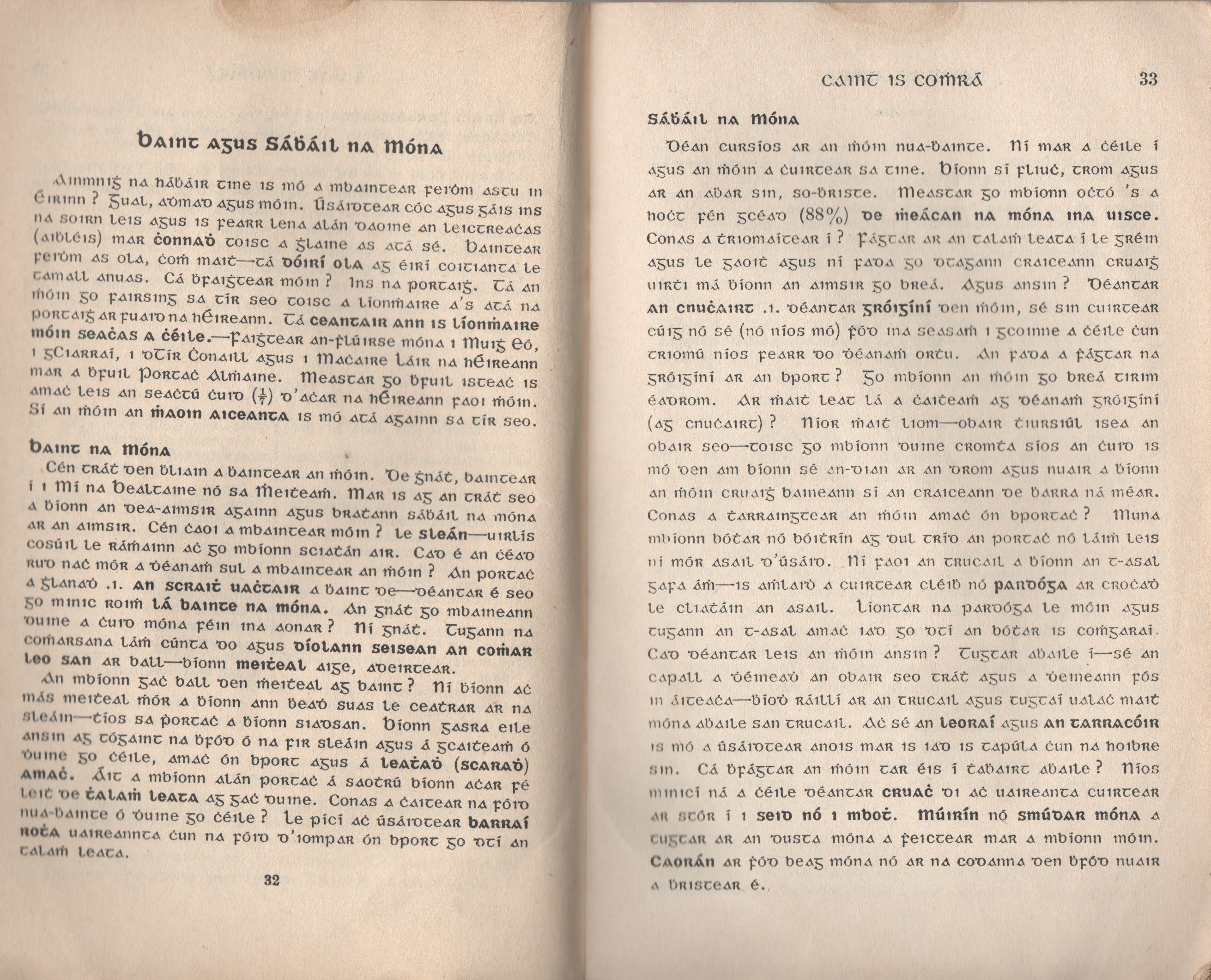 Baint Agus Sábháil na Móna, Saving The Turf, in Old Gaelic Script.
