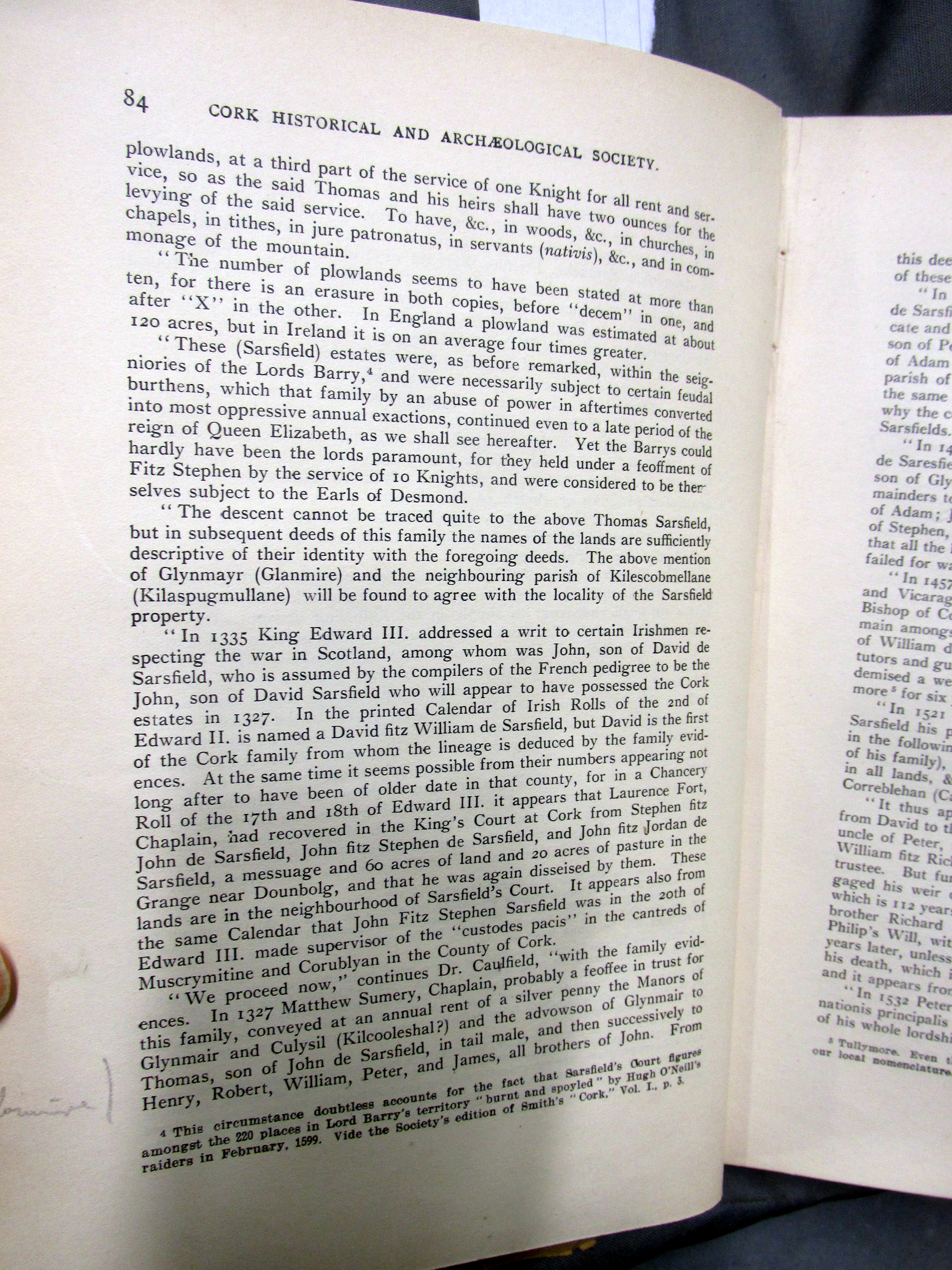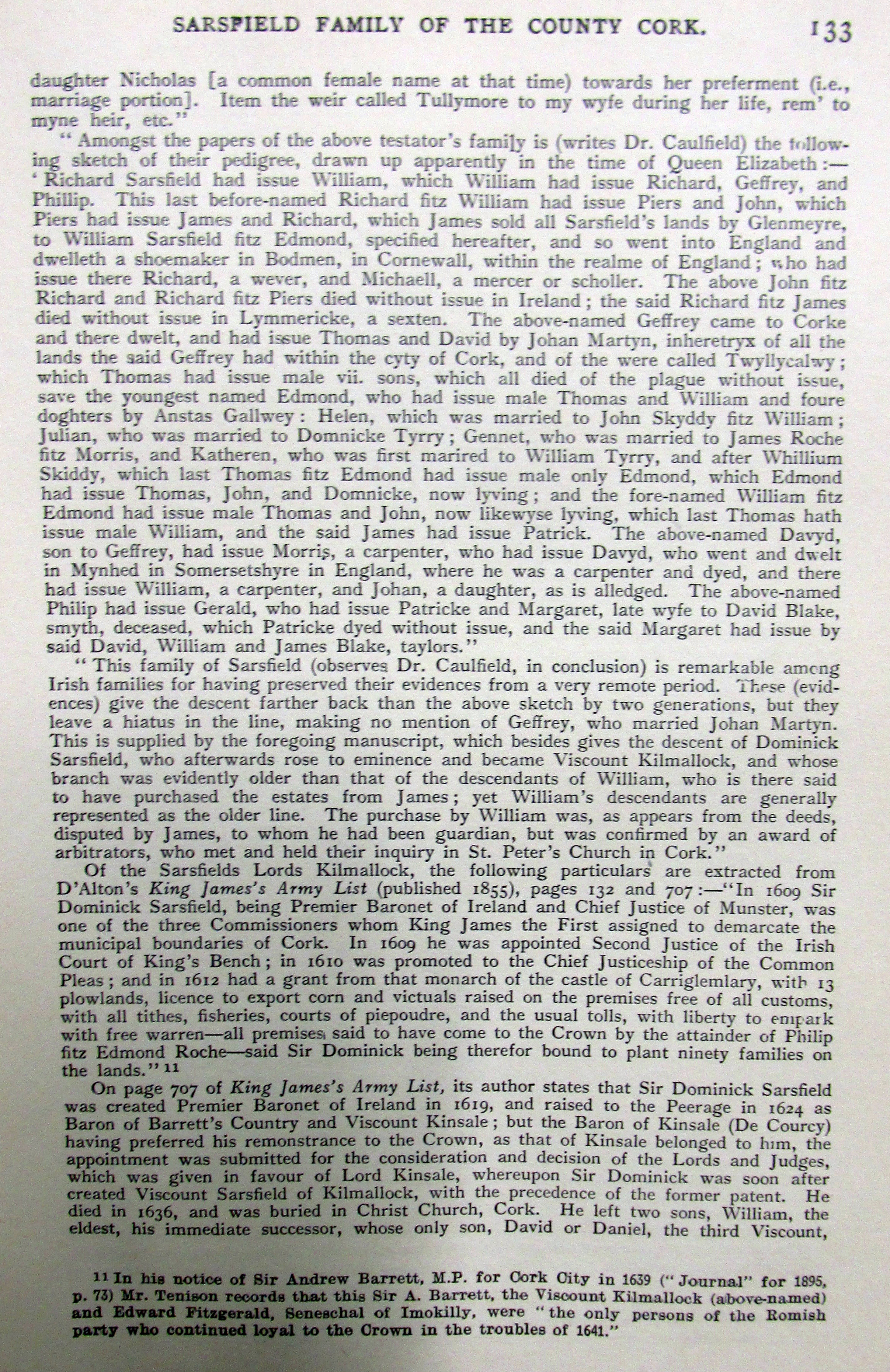 Abstract of Title from the Earl of Bantry to Daniel O’Sullivan, Rents of Brennymore, Kealkil, West Cork, 1787, William O’Sullivan,Esq., Ahill, who bought Carriganass Castle from Mellifonts c 1820 names mentioned James Morgan Cooke, Thomas Stephen Coppinger, Denny Lane, John Barrett O’Sullivan, Norcott Parker, Robert Neville Reaves, and de facto control of Confiscated Lands by O’Sullivan Septs in Bantry/Kenmare Estates in South Kerry, Beara and Bantry areas.