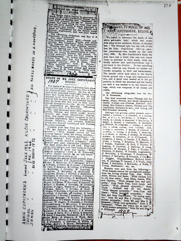 When Jeremiah Wholey was finished he would proceed with a three man crew to West Waterford. Progress with the steam engine was slow, the machine travelled through the night. The two crew members not driving would sleep in hammocks on the travelling machine. He was thorough on one occasion one of the crew had to cycle and back to Cork to get a machine part.