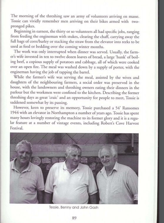 In West Waterford an area of large farms the harvest was kept in large sheds out of the weather. Despite the use of reeks in the Bantry area the corn could deteriorate over a few weeks. On some farms the threshing could take week. This continued until almost Christmas.