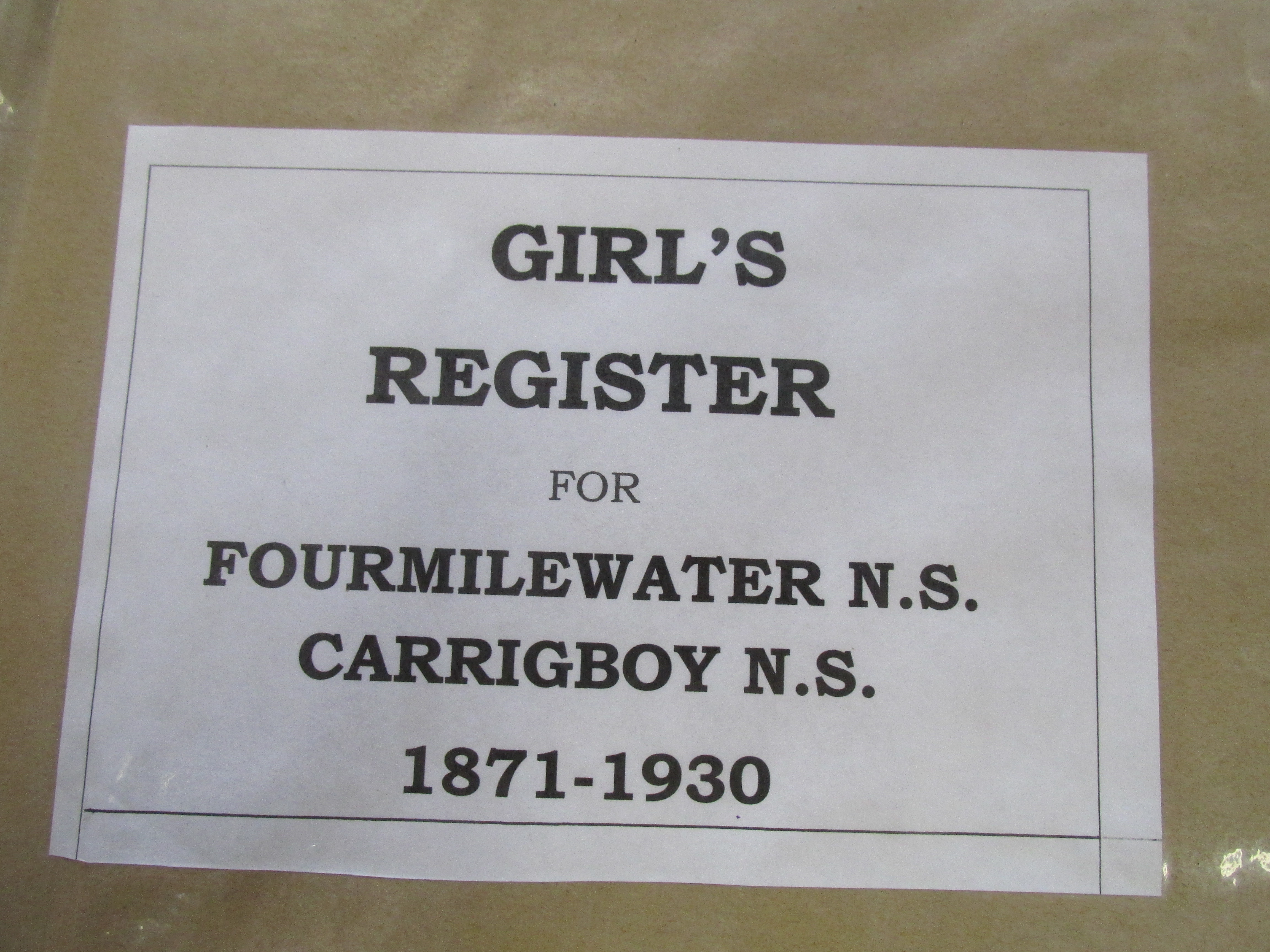 Girl’s Register Four Mile Water (Durrus) National School, West Cork, 1866-1930, Boys 1883-, Pupils name, Townland, Parents Occupation, Former School if Relevant given, some Financial Records, one parent James Gilhooley, Irish Parliamentary Party MP for West Cork and Member of Bantry Band’.