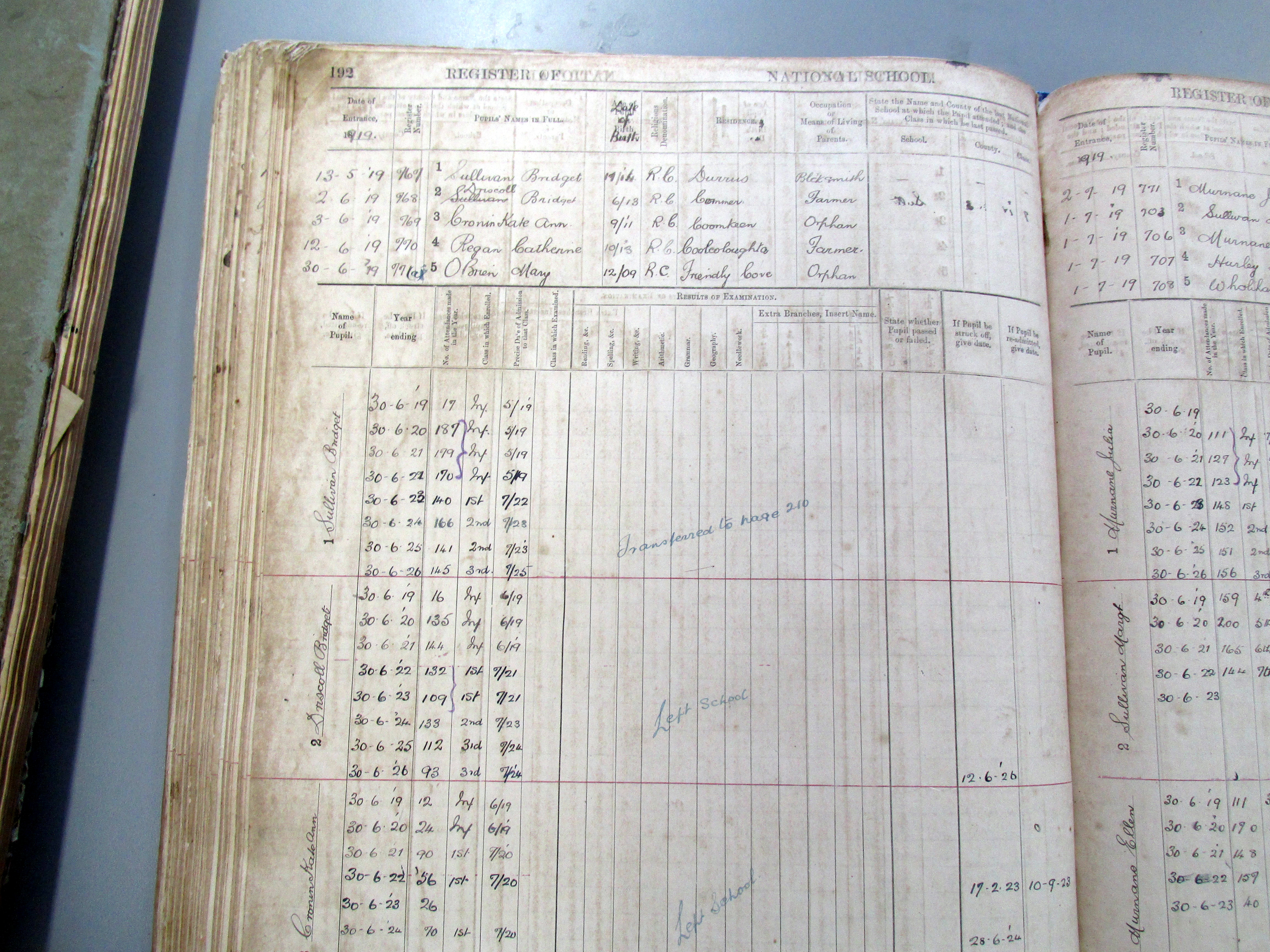 The Recommencement of the use of ‘O’ in Irish Surnames, an example from the Girls School Roll, Carrigboy (Durrus) National School, West Cork, 1919.