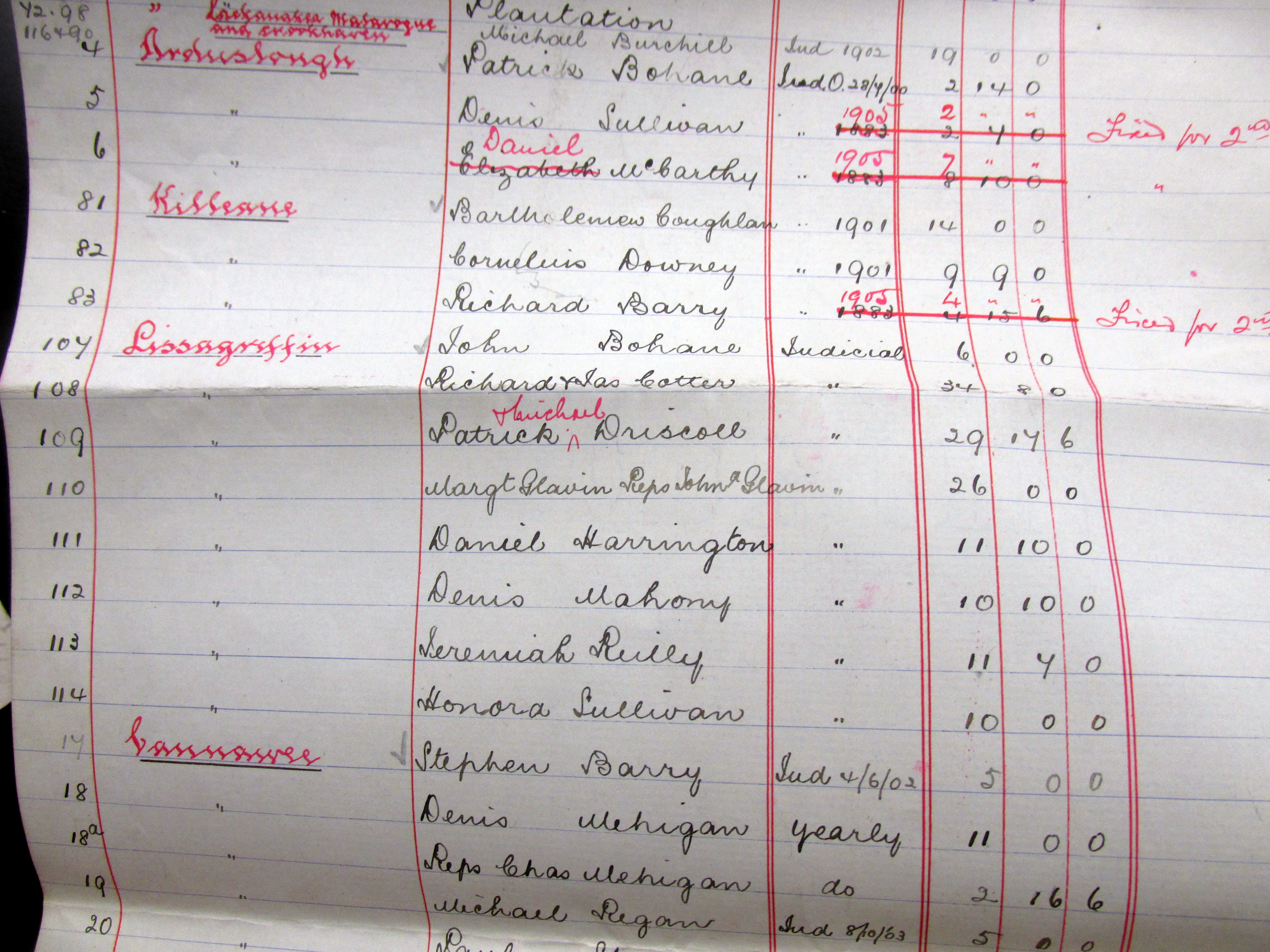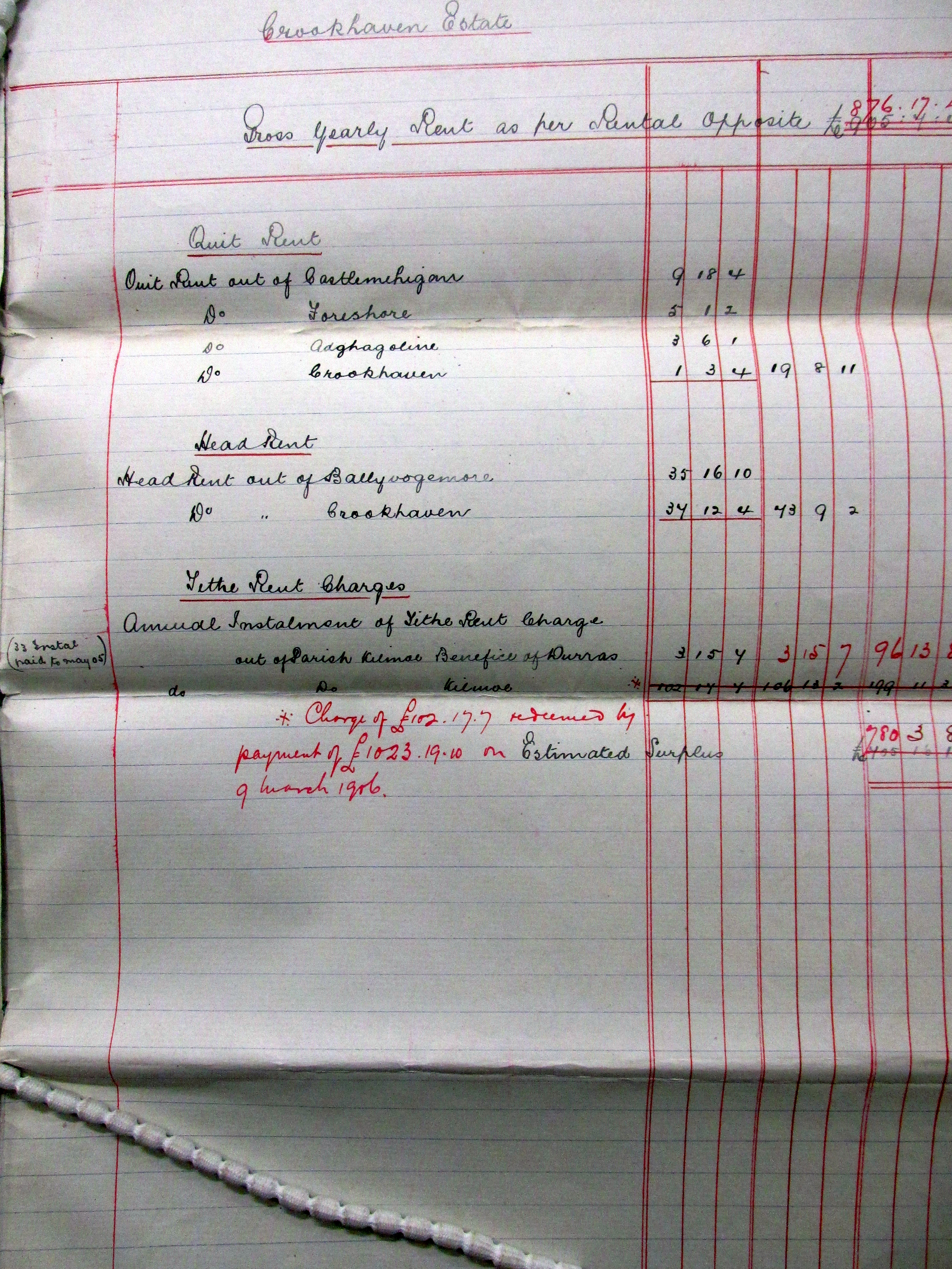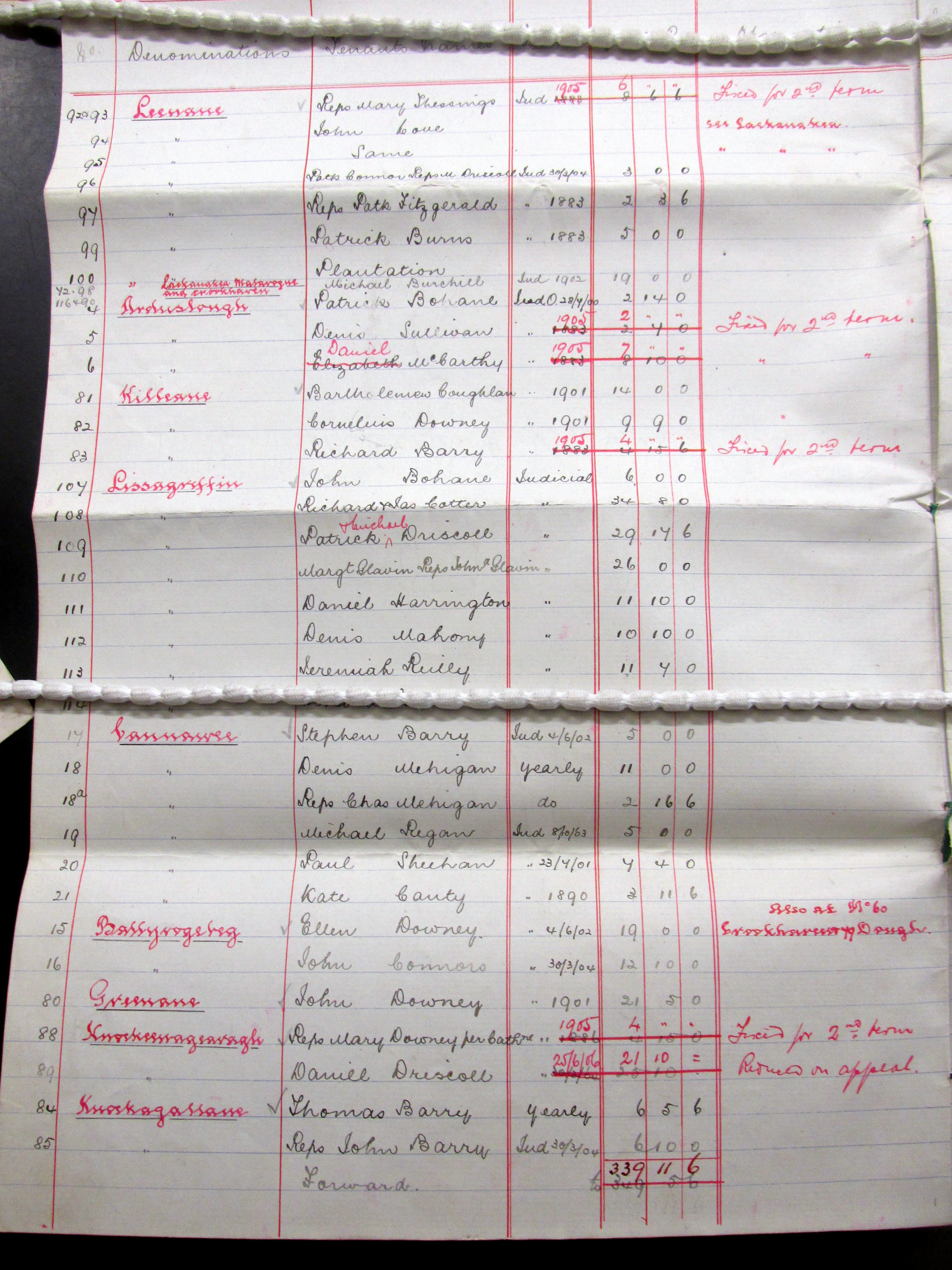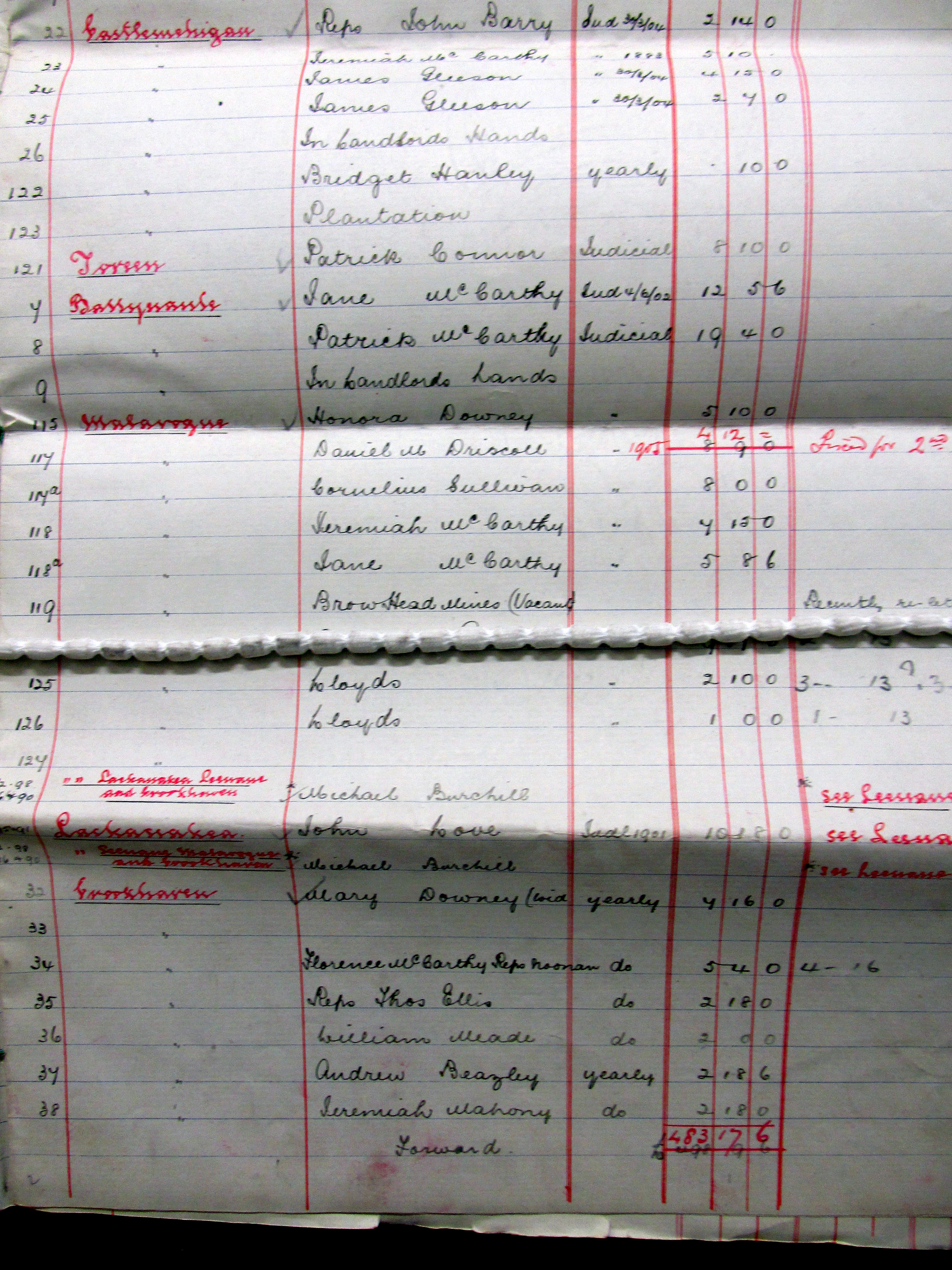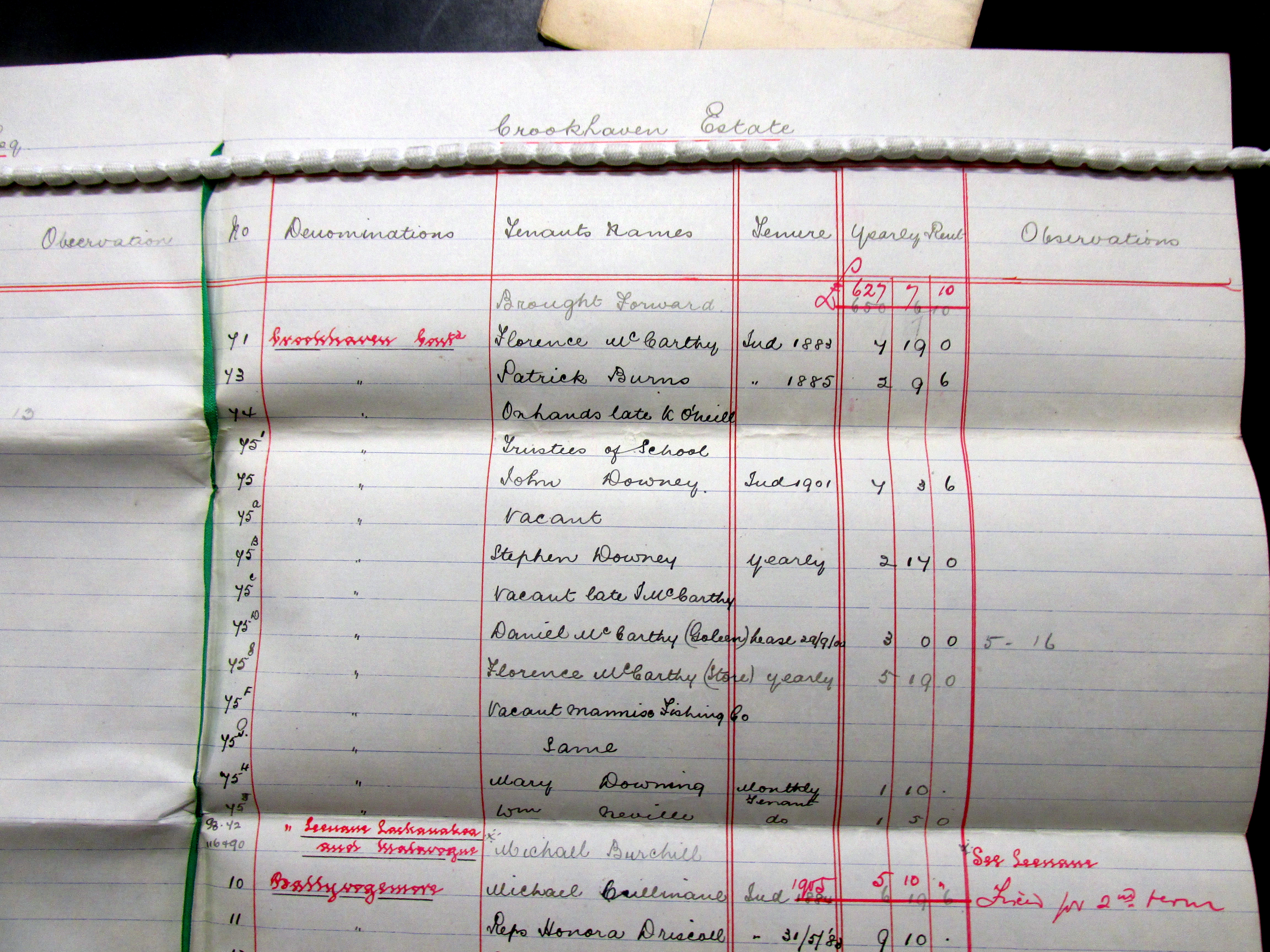 Listing of 120 Tenants on the Estate of Lord (Charles Pelham) Clinton,Crookhaven, West Cork 1903, Greenane, Knockeenageragh, Ballyvoge Beg, Letter, Dough, Killeane, Lackenale. Corran More, Mullaghavoge, Cannaun, Corran More, Toreen, Knocgale, Castlemehogan, Crookhaven, Ballyvogue, Arduslough, Lisagriffin.