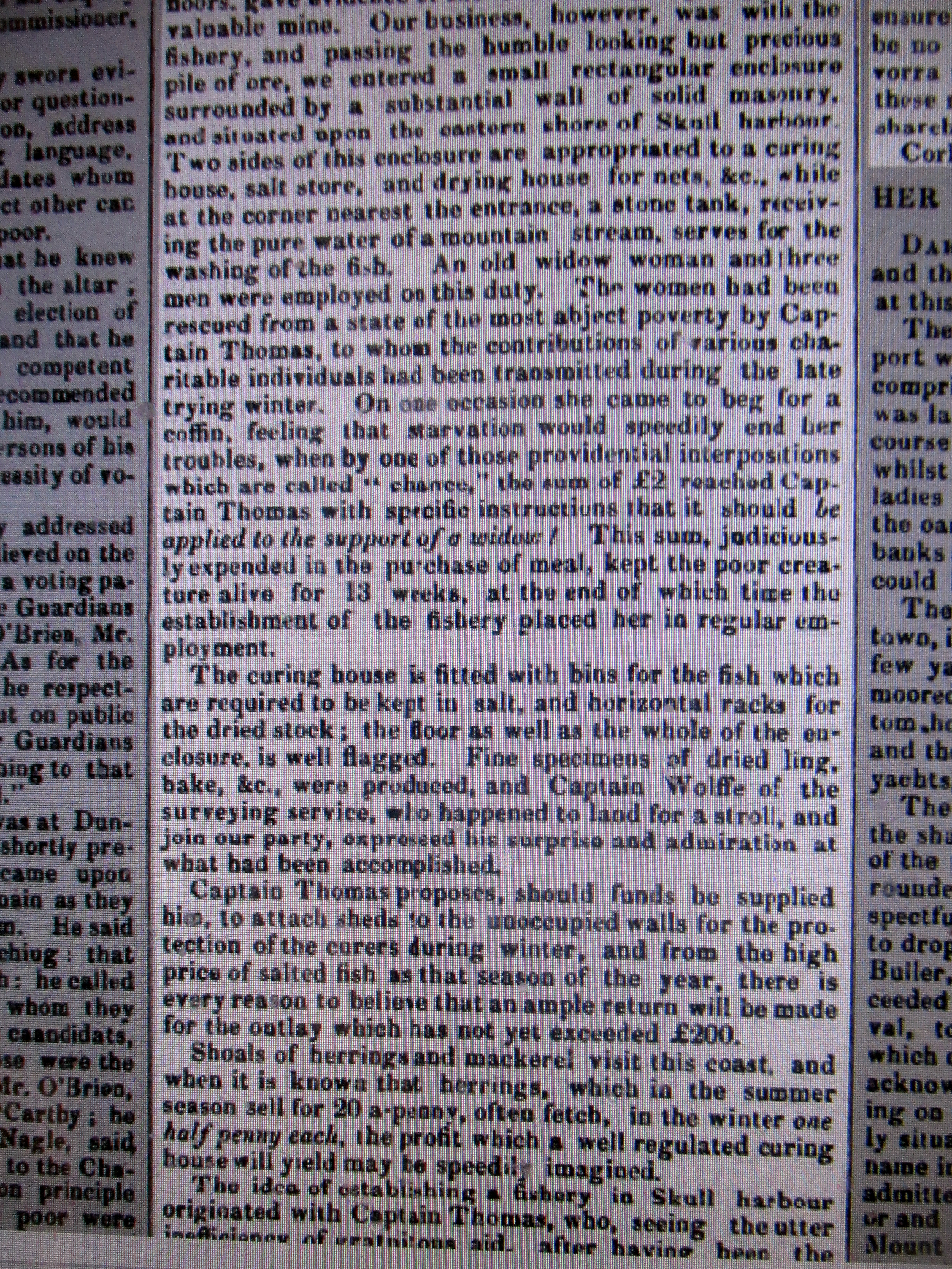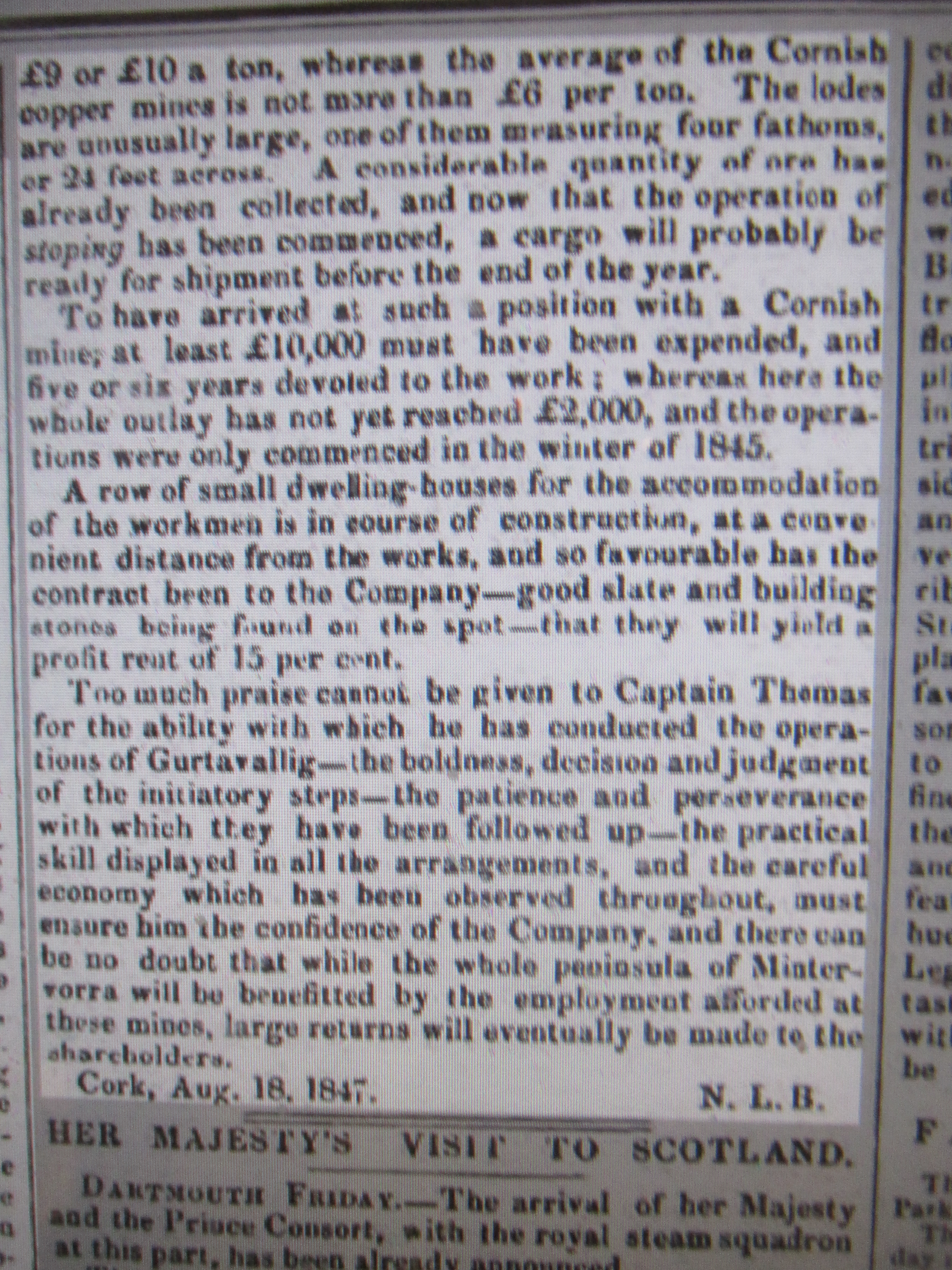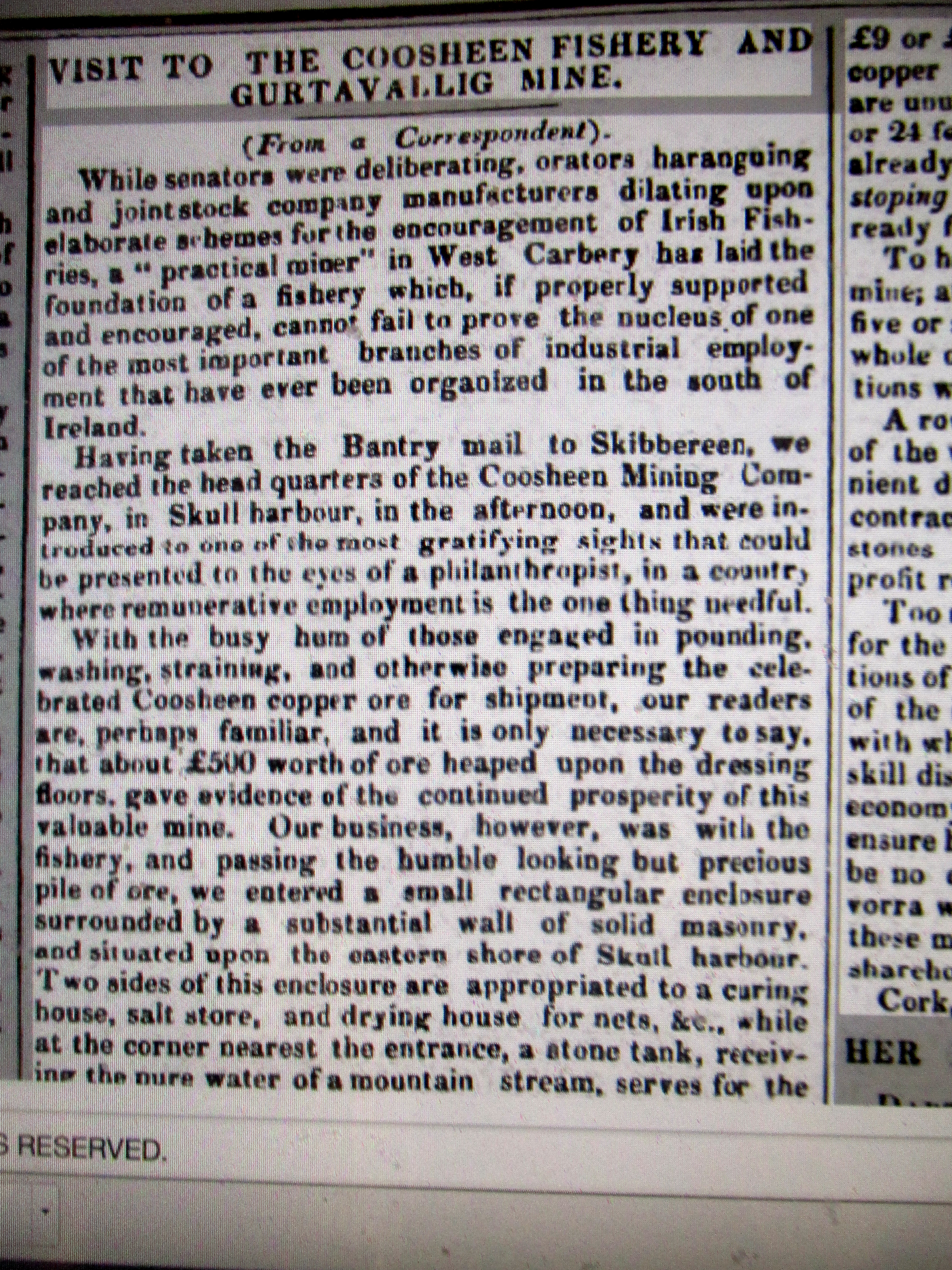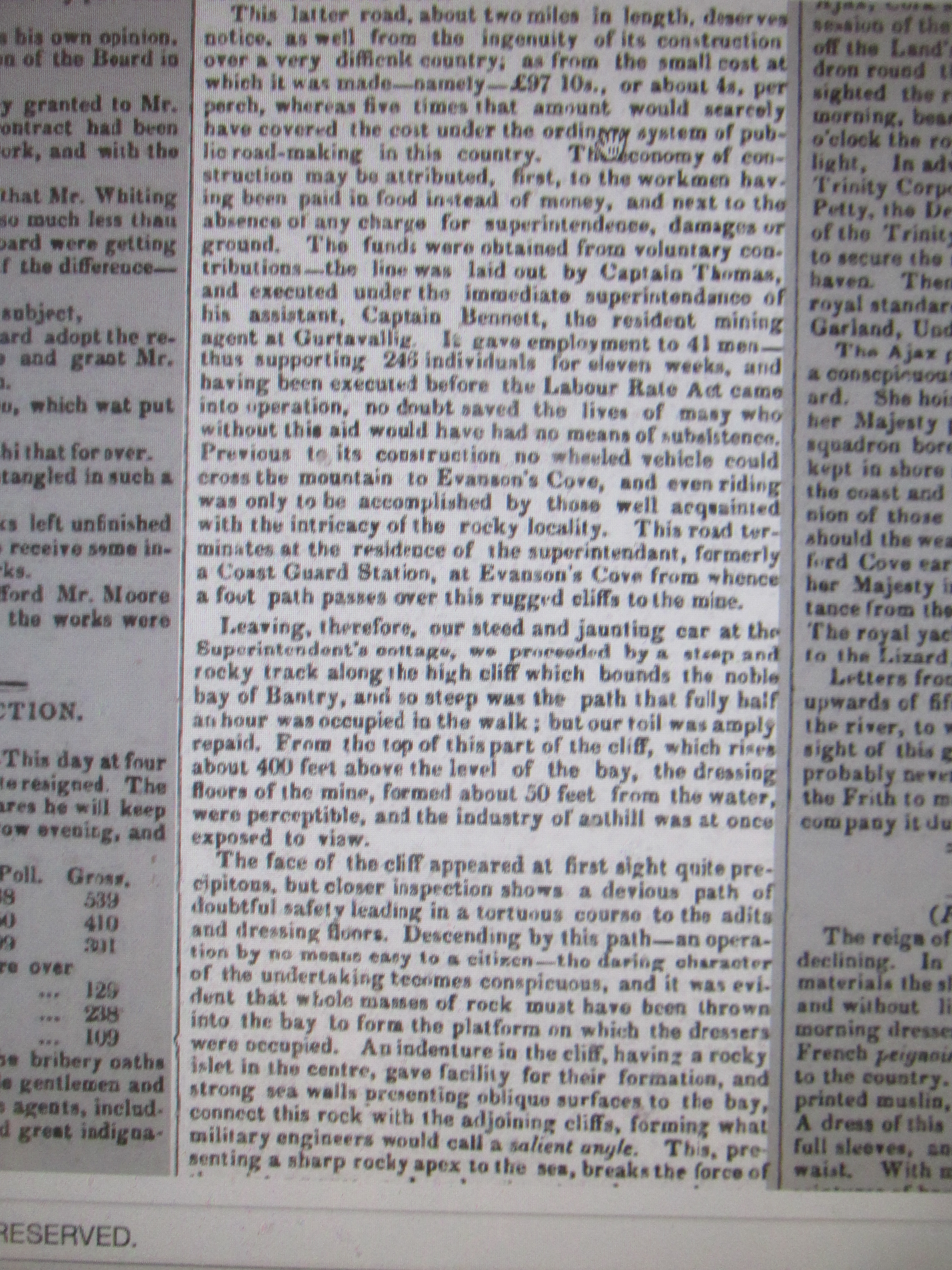 Visit to Cusheen Fishery, Captain Thomas, and Gortavallig Copper Mines, Road laid out by Captin Bennett with 41 men, Kilcrohane, West Cork, 1847.