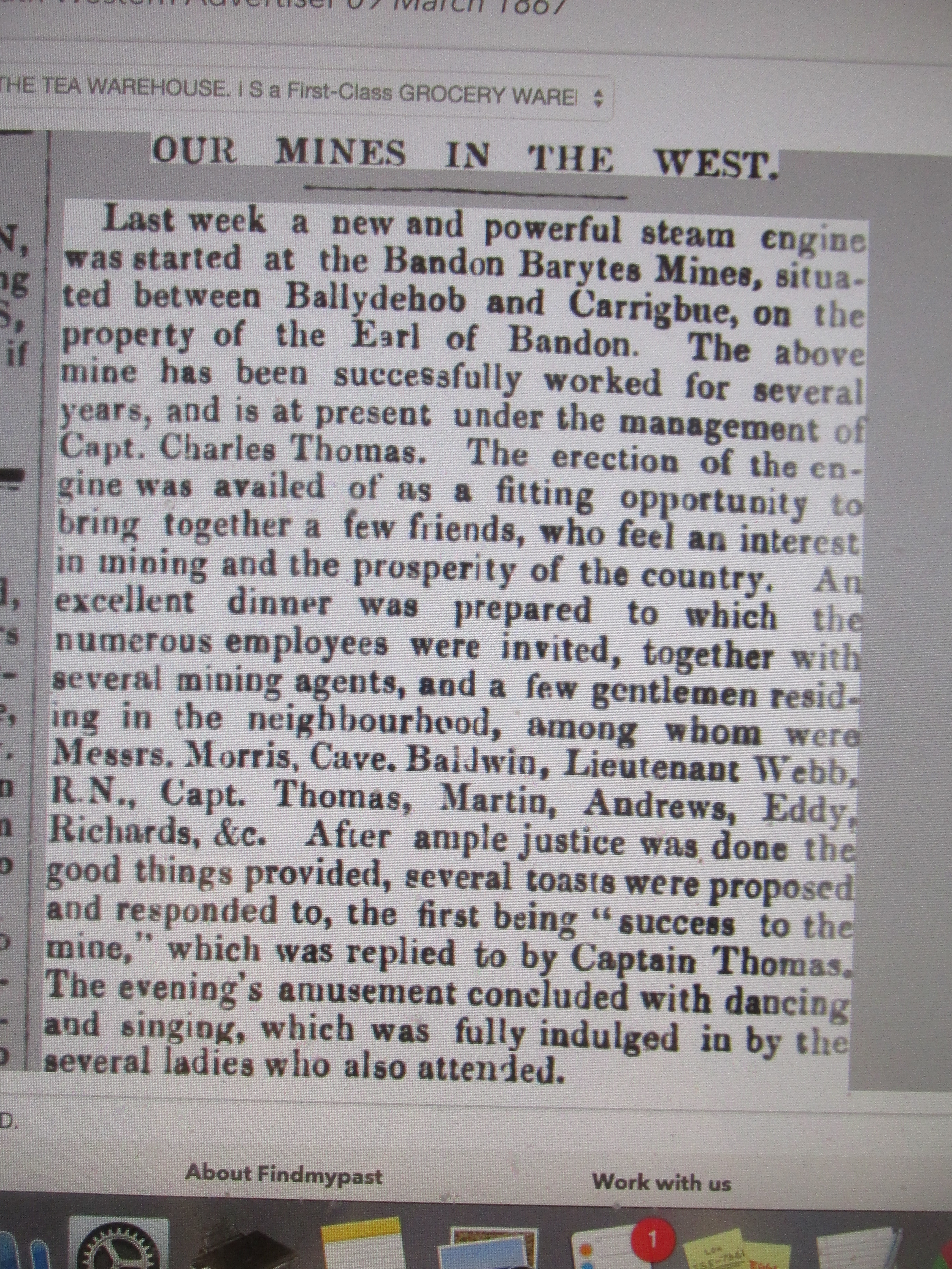 Installation of Steam Engine on Lord Bandon’s Barytes Mines (Dereenlomane),1867, and local Road Damage.