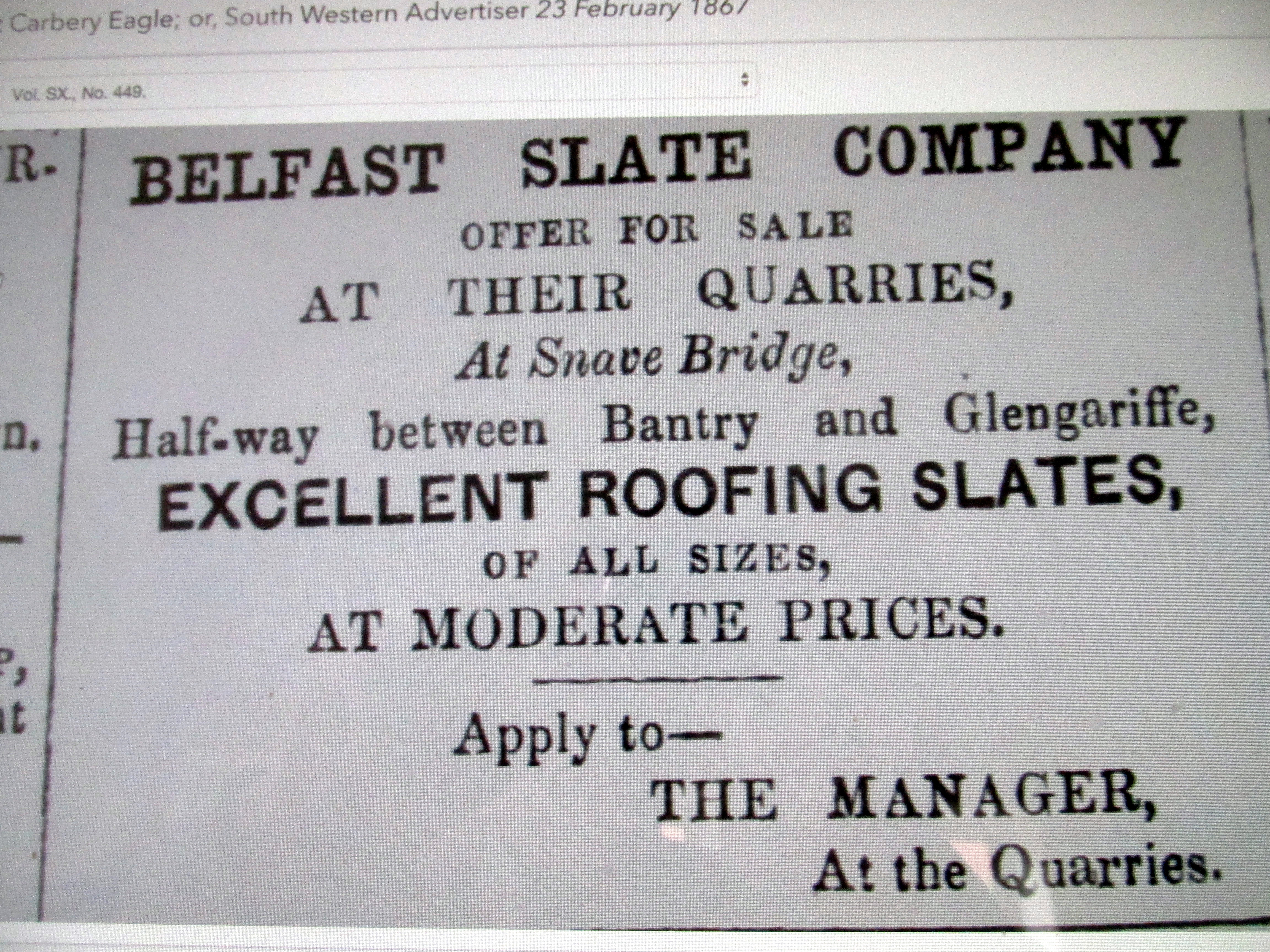 Belfast Slate Quarry, Snave Bridge, Bantry, West Cork, 1867.