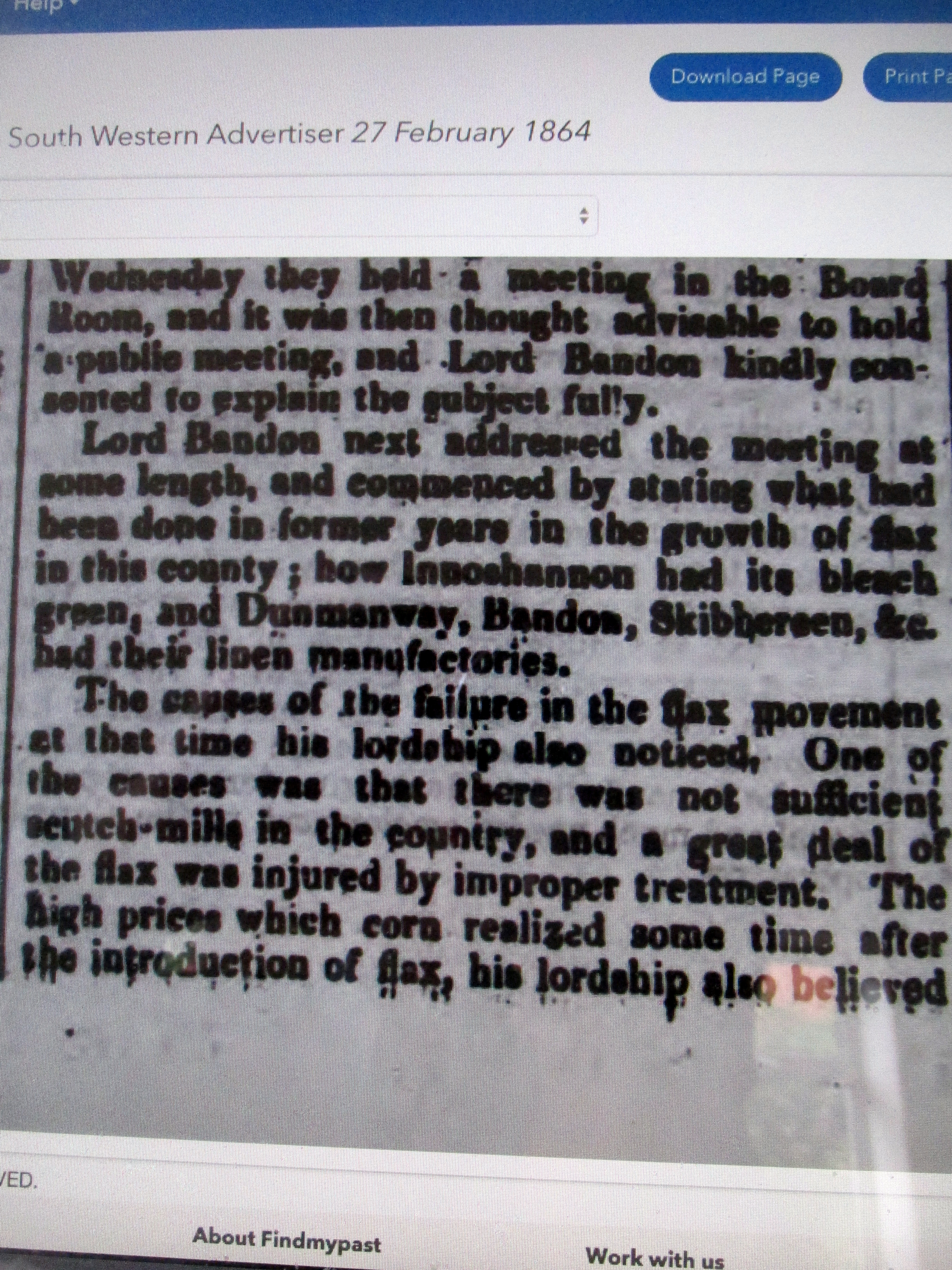 Pingback: The Linen and Flax Industry in Dunmanway, West Cork, Fines for Steeping Flax in the River Bandon and other Rivers , 1835. | West Cork History