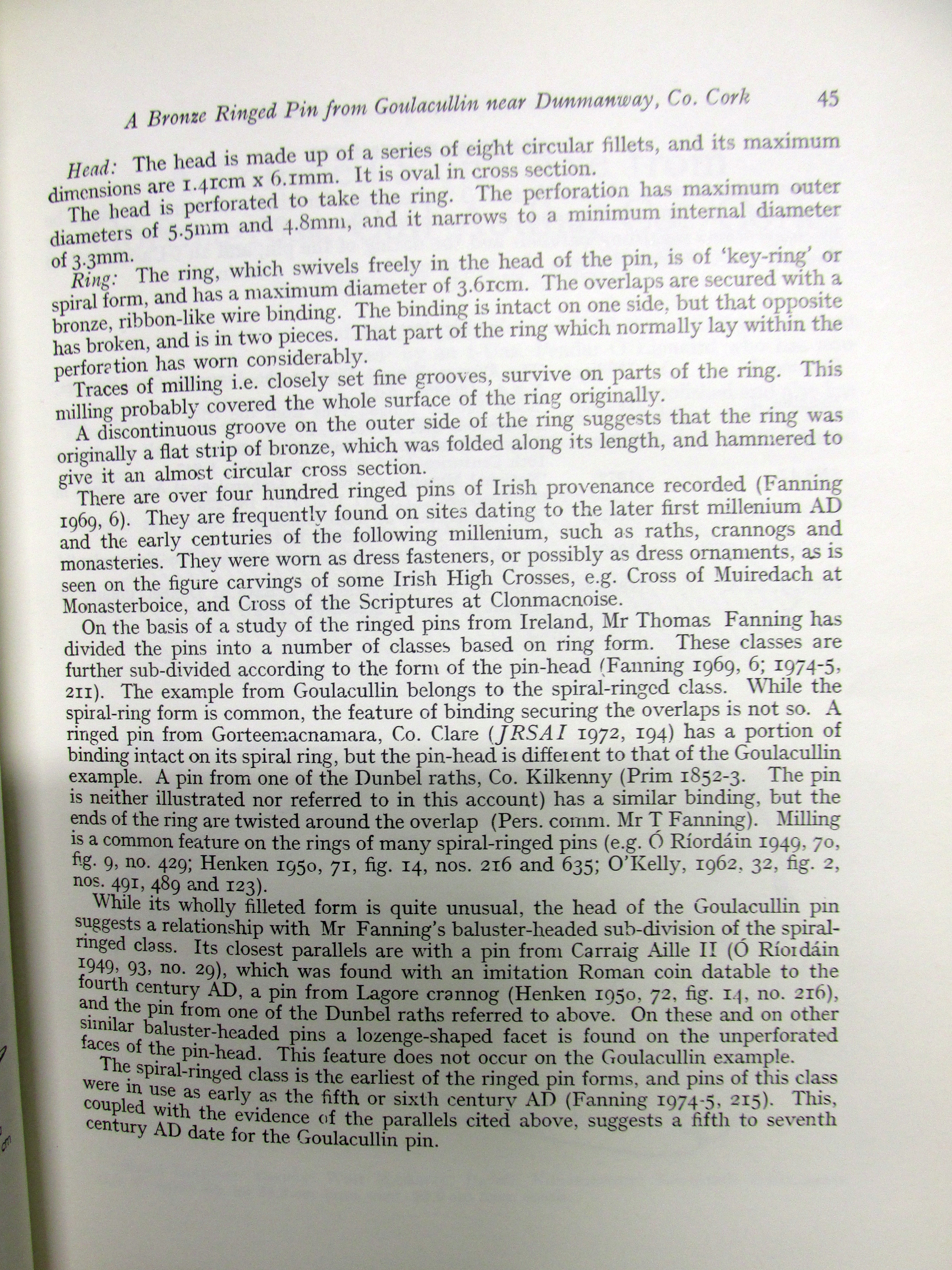 5th to 7th Century Bronze Pin, Found Goulacullin, Dunmanway, West Cork.