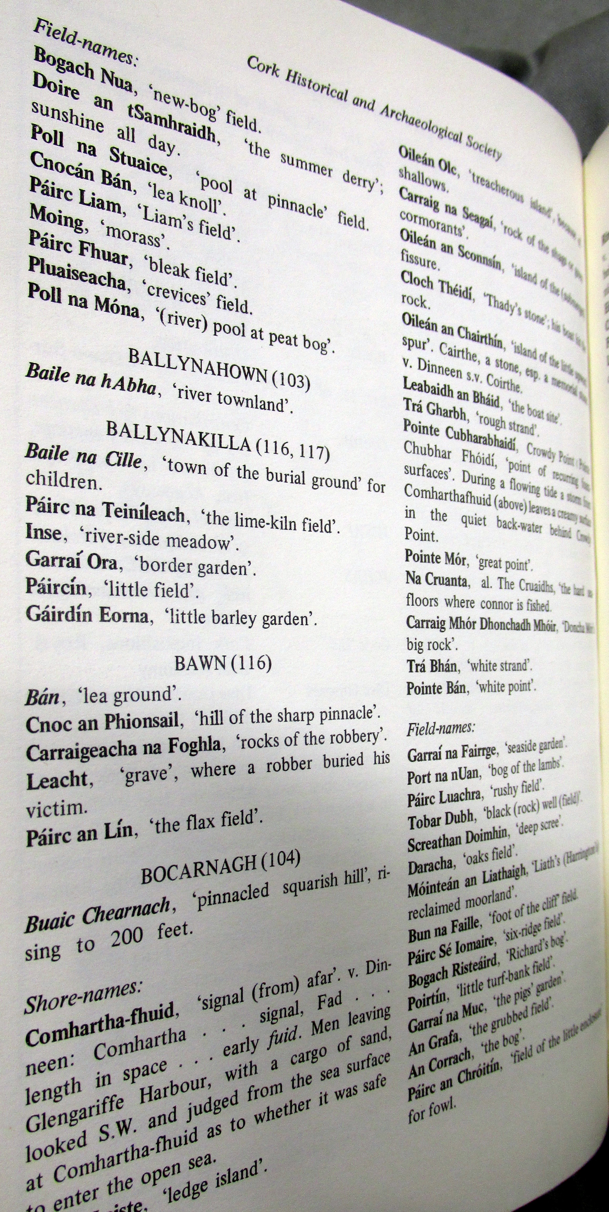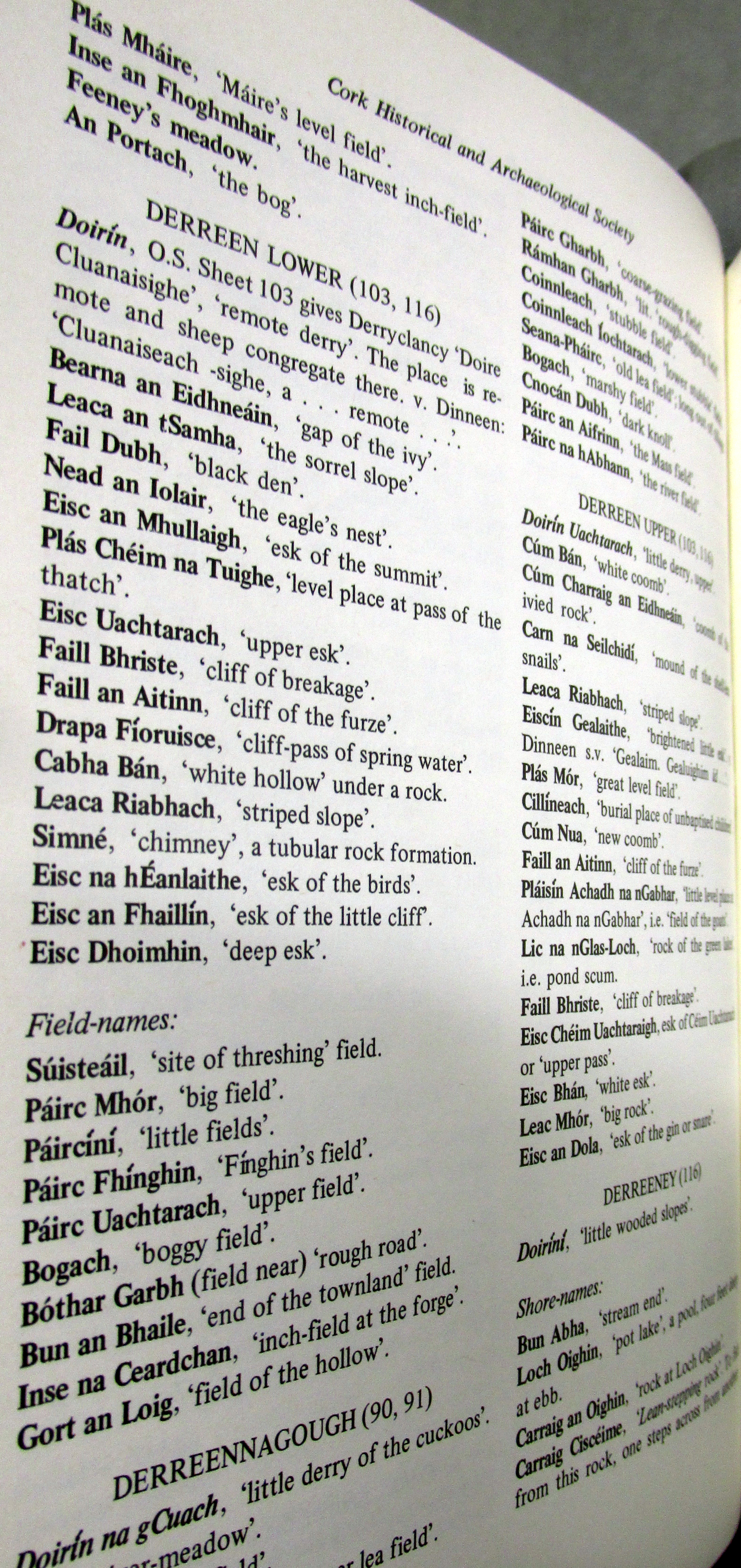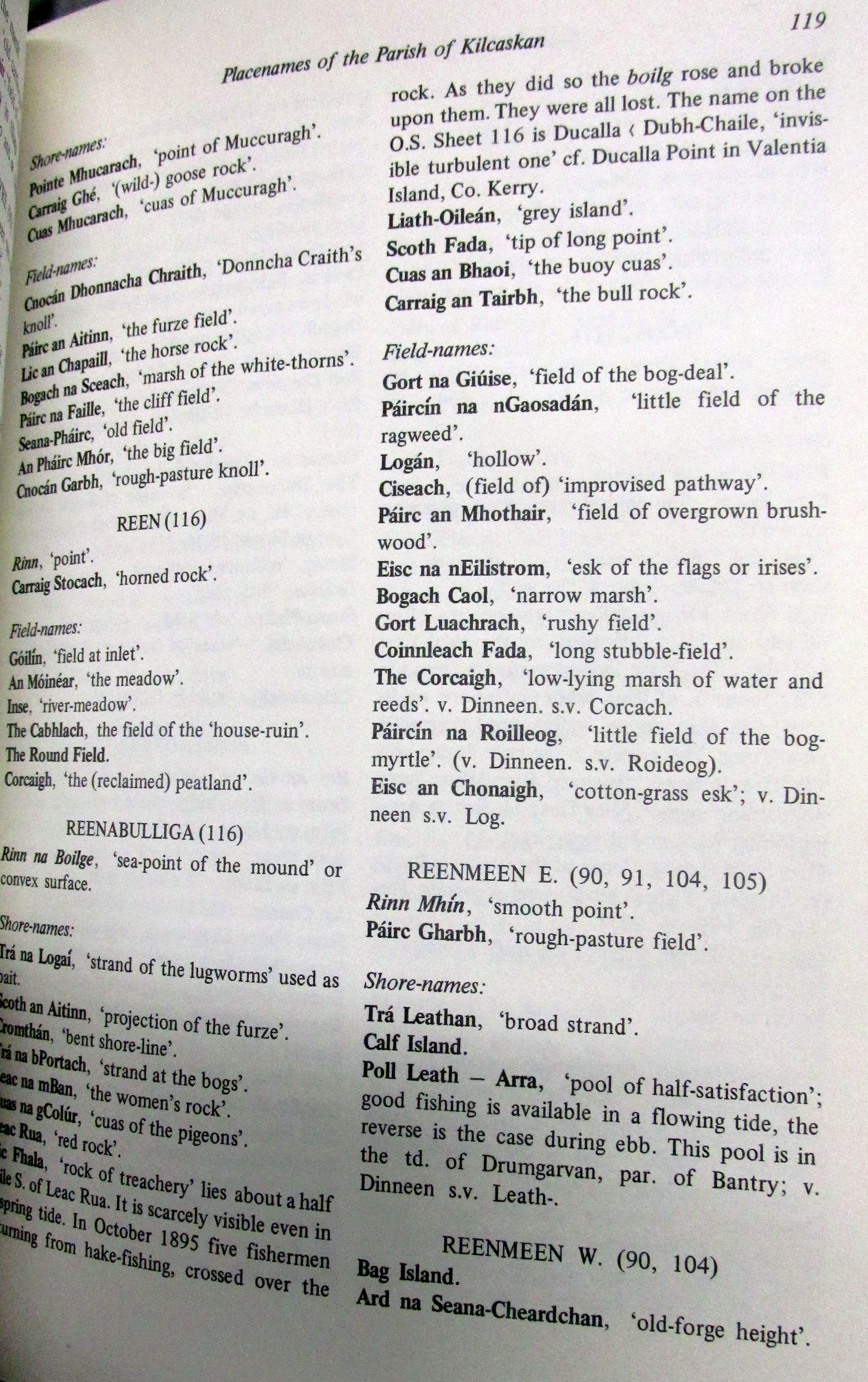 Townlands, Place and Field Names in English and Irish Kilcaskin (Cill Cháscann) Parish, Barony of Bere, West Cork.