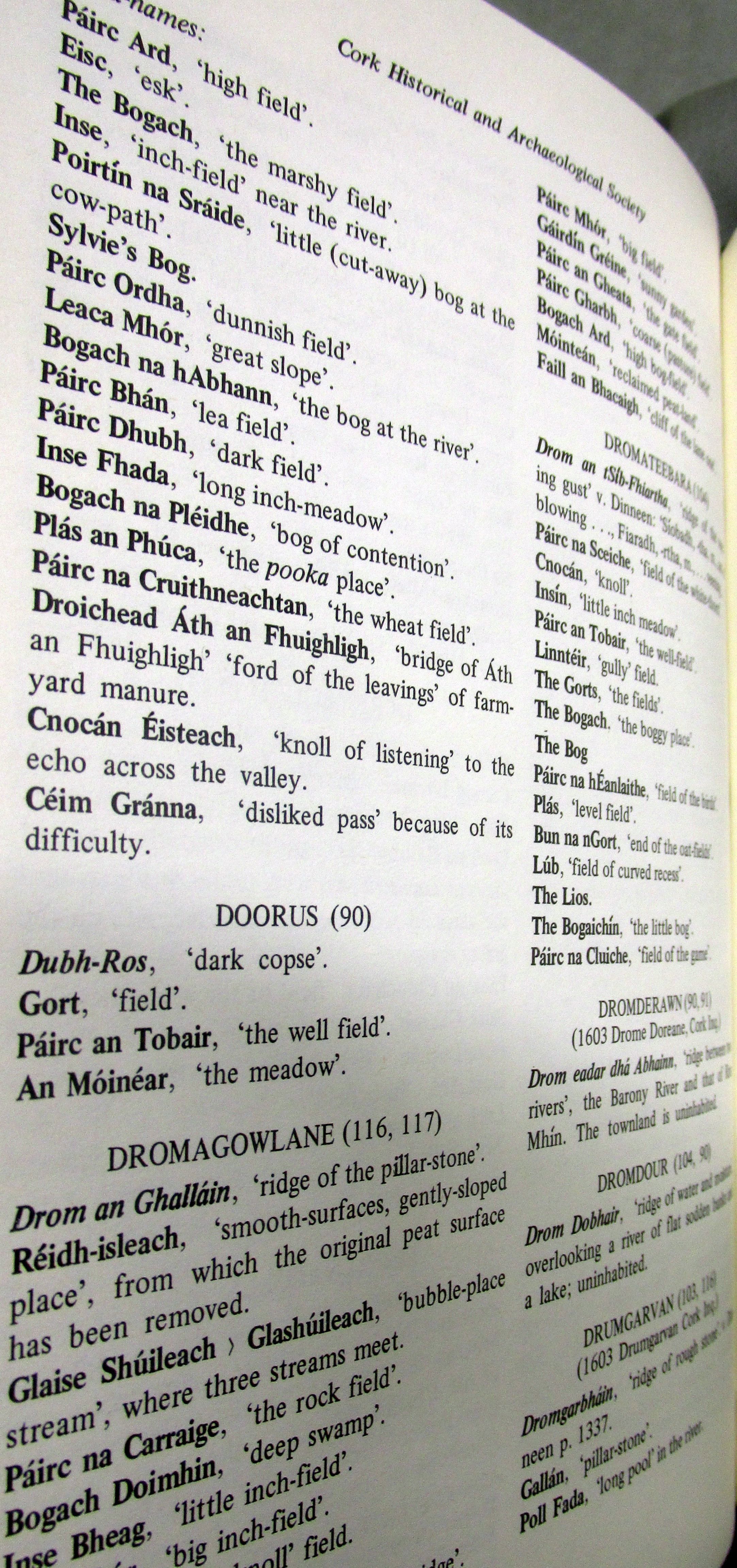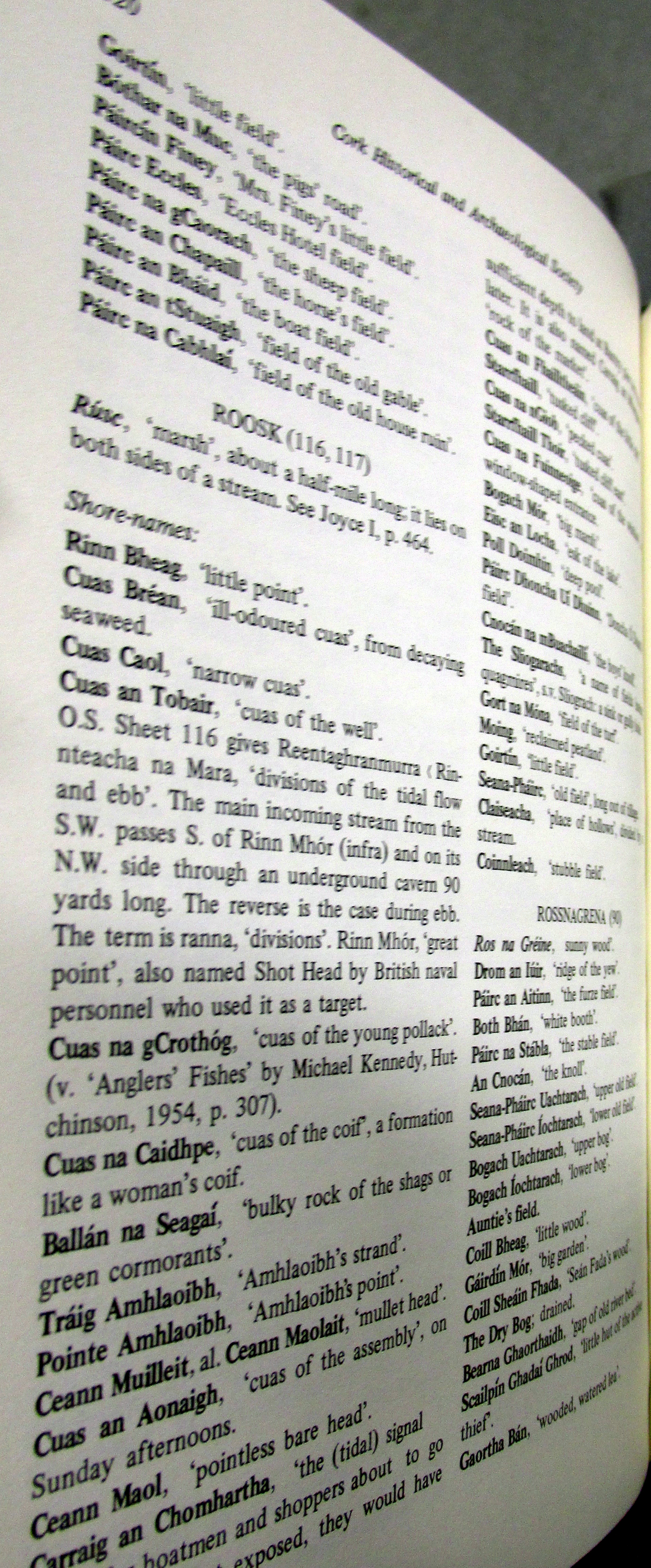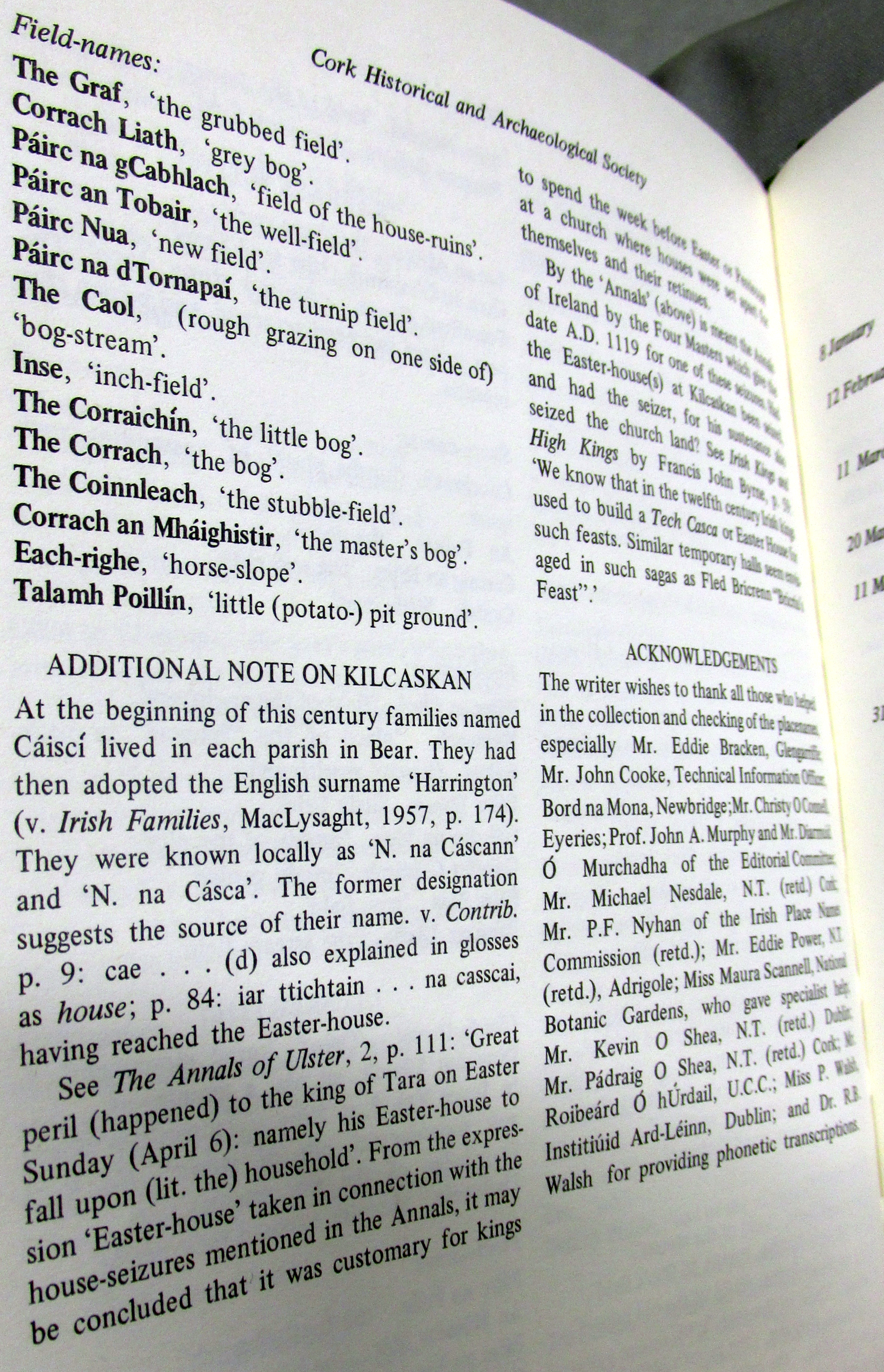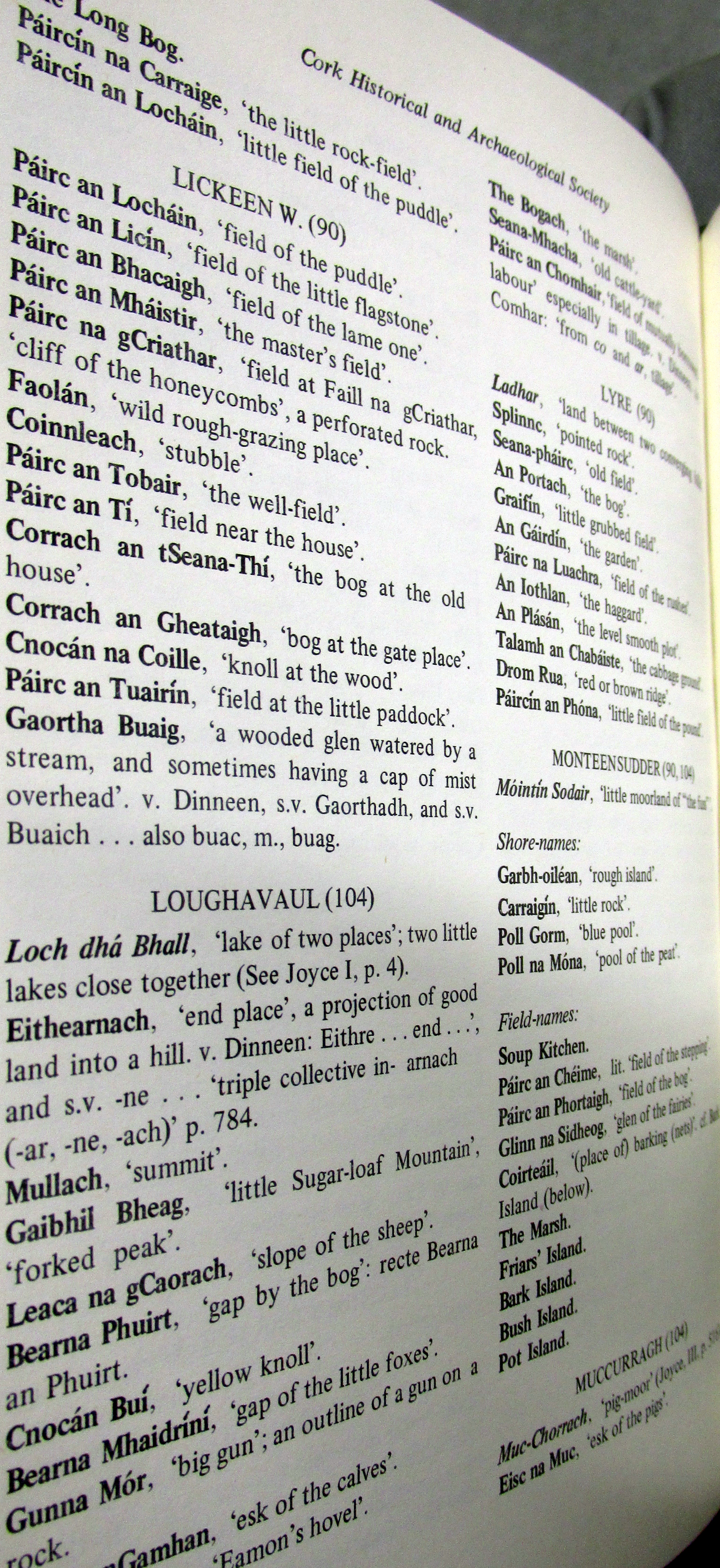 Townlands, Place and Field Names in English and Irish Kilcaskin (Cill Cháscann) Parish, Barony of Bere, West Cork.