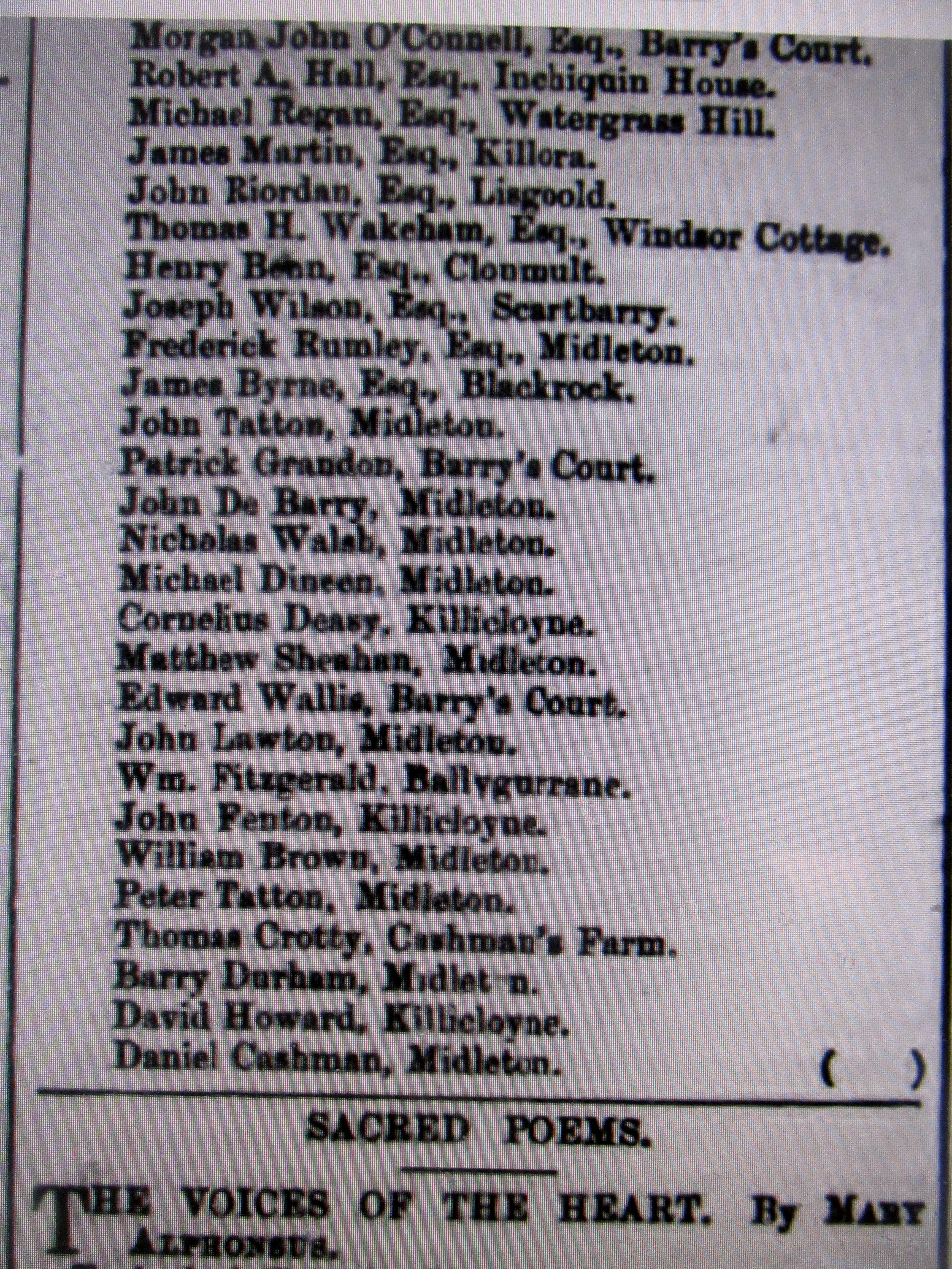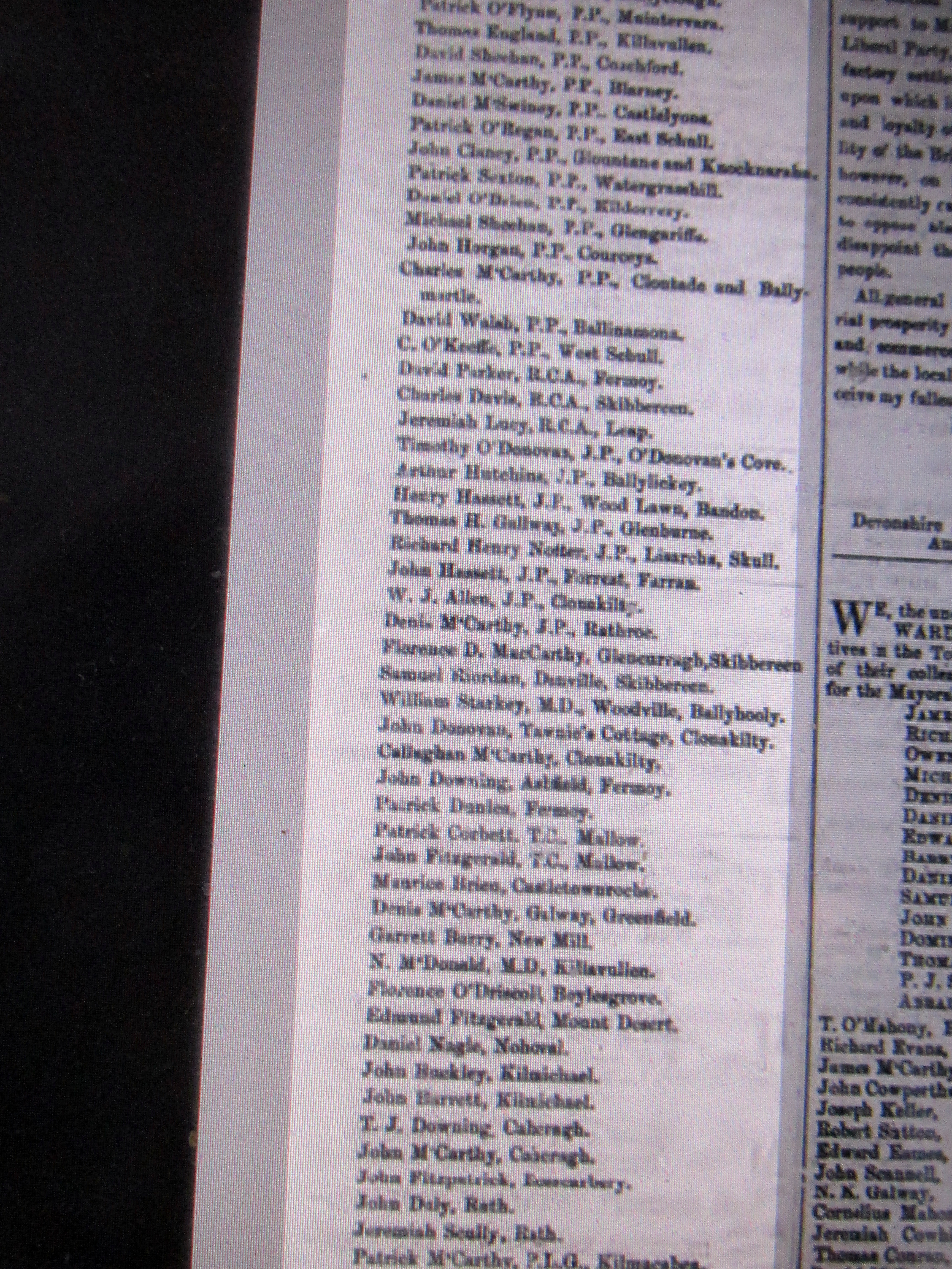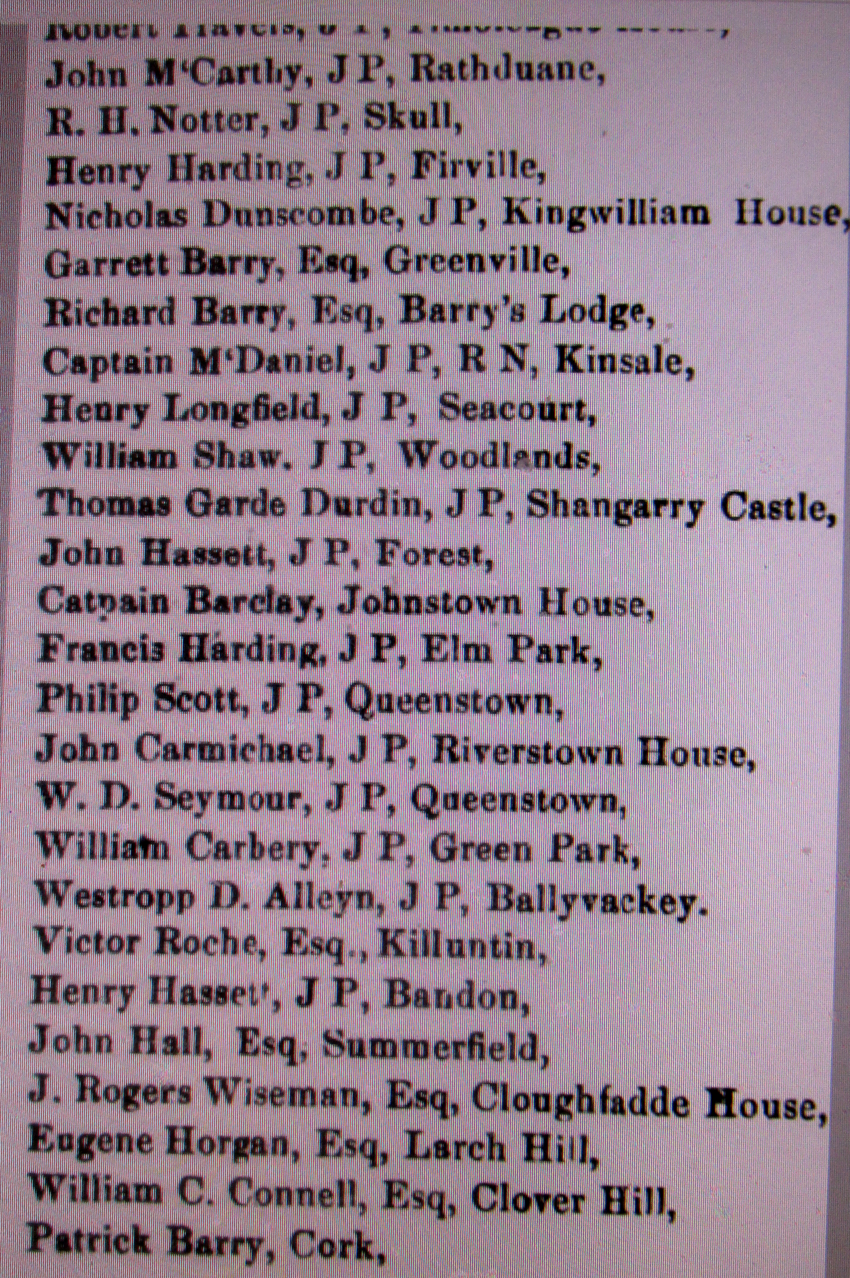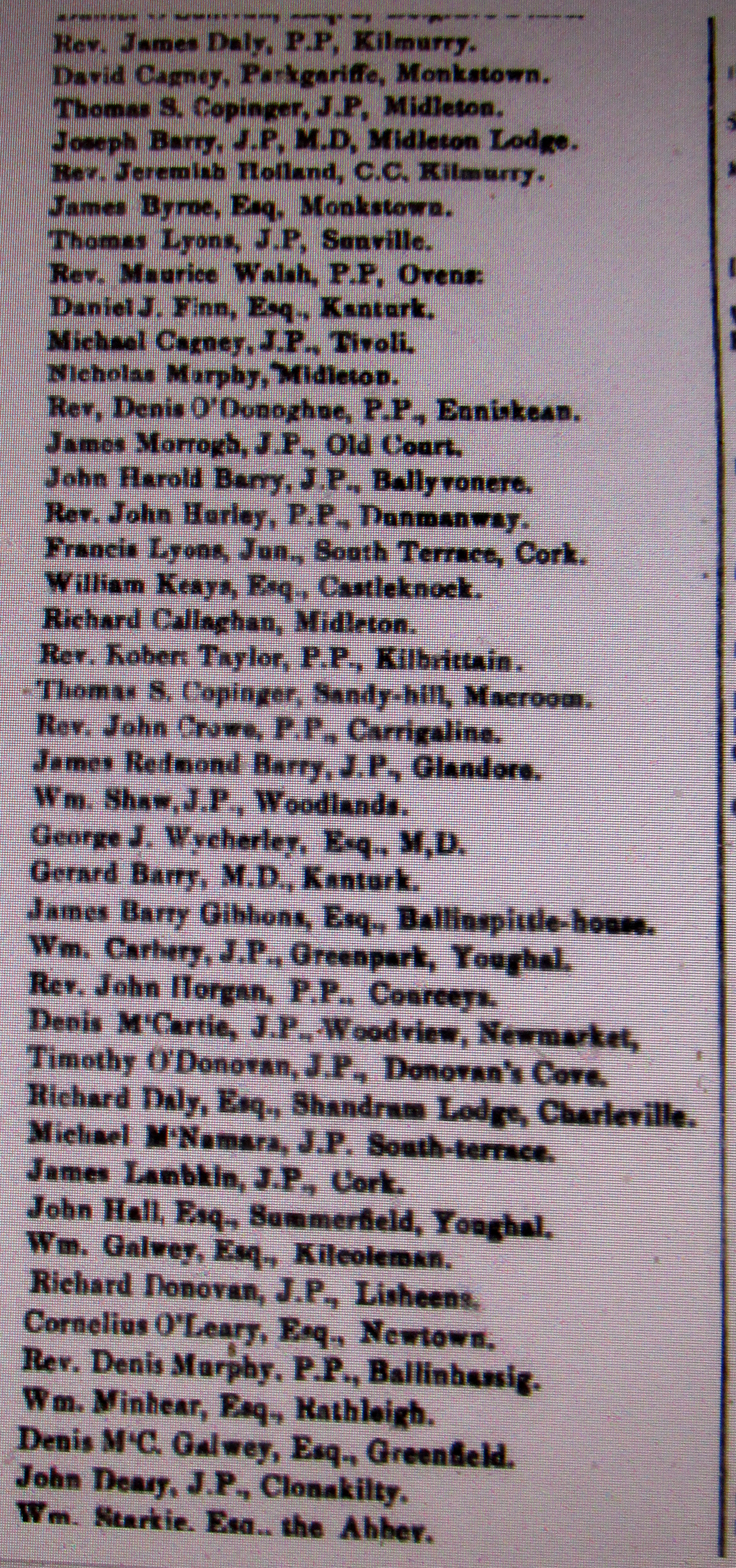 Elections Co. Cork to Imperial Westminister Parliament, London, with Committee Names and Addresses Alexander McCarthy 1857, Rickard Deasy, Queens Counsel 1857, Colonel Roche 1861, McCarthy Downing 1868, Boyle 1858.