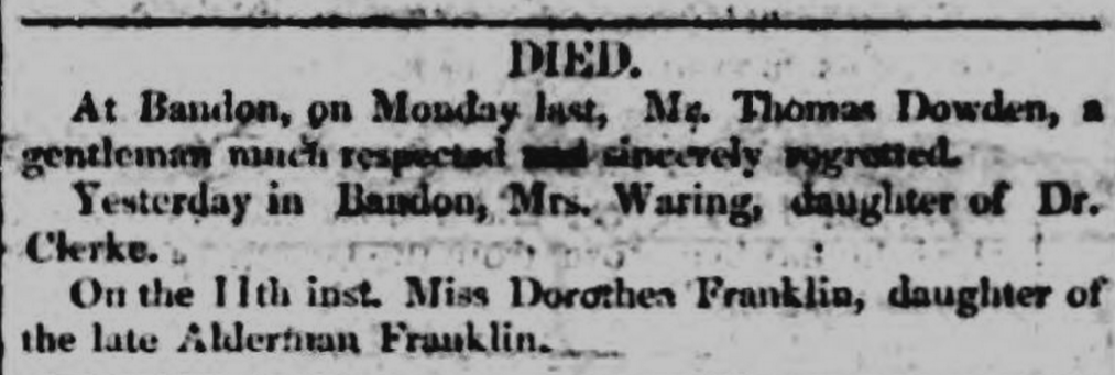Metheglin occurs in the memoir of James Stanley Vickery as being used by his grandparents at Molloch, parish of Durrus, Bantry in the 1820s.