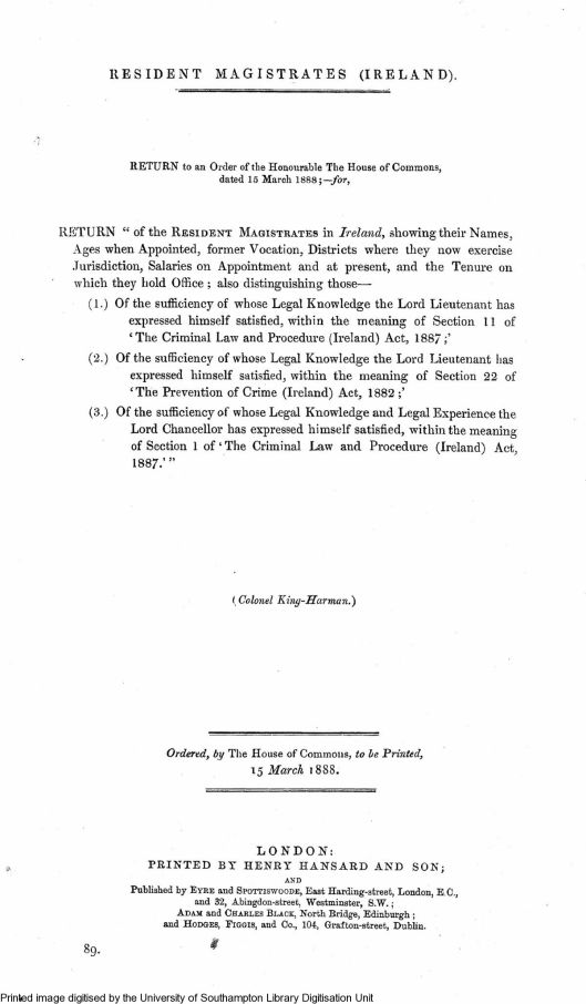 17. Henry Thorne COPPINGER, owner and petitioner – Carhue, Coultimorroghue,