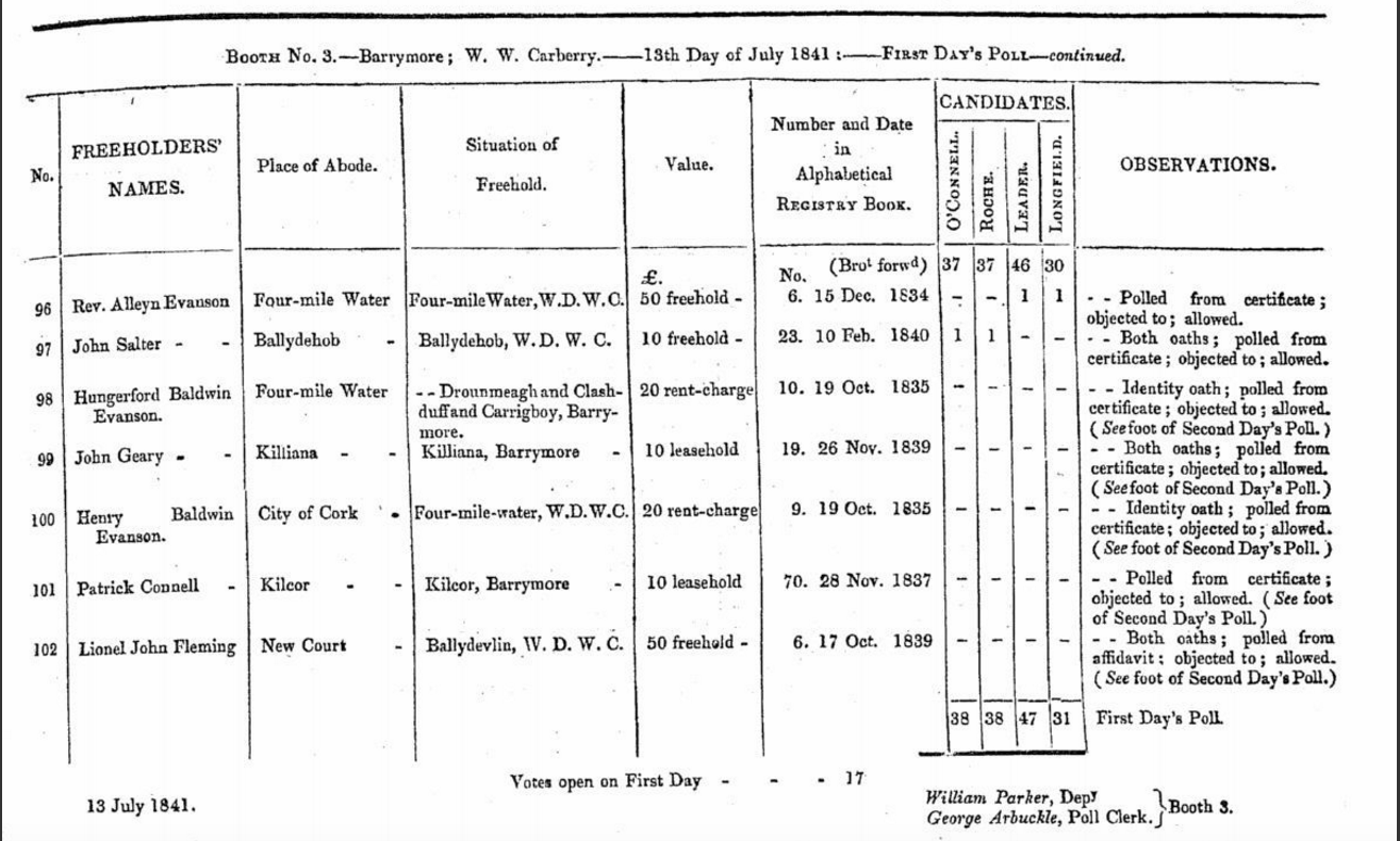 3. Rev. Edward Henry NEWENHAM, owner and petitioner – Ballincranig,