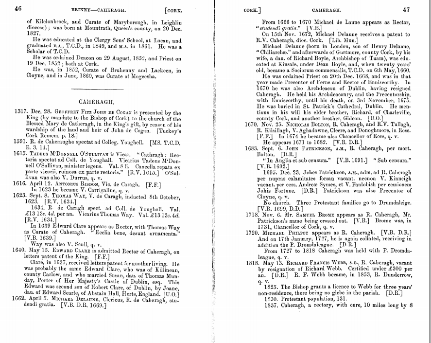 Meziere Brady’s History of Caheragh Parish, West Cork, from 1319 With Norman Connections.