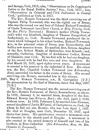 Rev. Horatio Townsend, (Pupil of Collins) Author 1813 ‘Statistical Survey Co. Cork’, Genealogy.