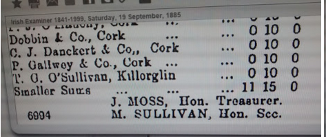 Of those mentioned as sponsors Richard Tobin probably son of ‘King’ Tobin, Kilcrohane prominent local businessman, hotelier, farmer. Glhooley is MP for Bantry his sister had a pub in village lately Paddy Barrys and another relation a teacher in the girls school.