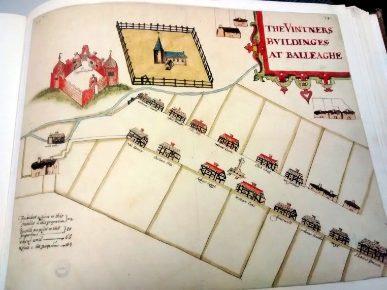 A Projection as to how Cork Plantation Towns, Bandon, Clonakilty and Projected Baltimore, Newcestown might have looked Ironmongers and Vintners Companies, London, Houses At Bellaghy, Co. Derry early 17th century.