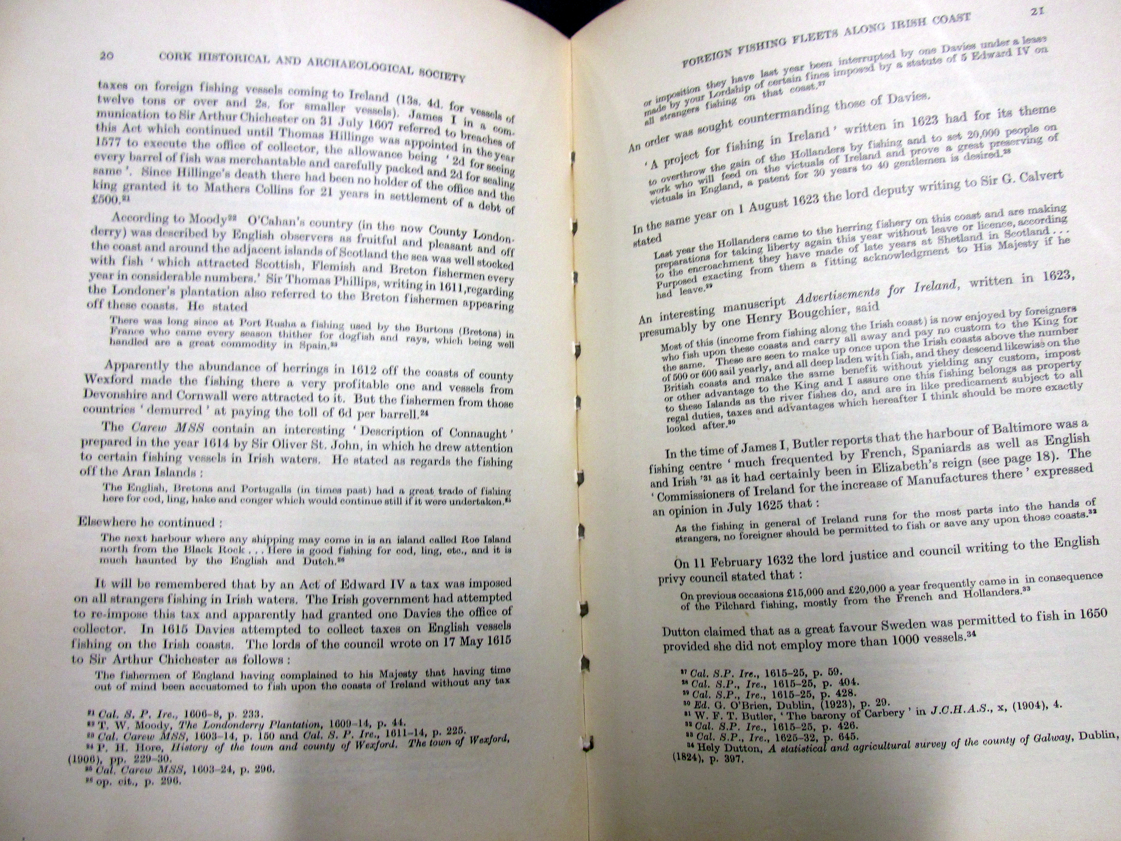 From foreign fishing fleets in Ireland, 1531 Dermot O’Sullivan, ‘Prince of Bere and Bantry’ hangs English Captain that seized Spanish ship, 1572 Spanish and Basque fleets at Baltimore, 1586, O’Sullivan Bere and O’Driscoll ‘extortionate dealings’ with English fishermen, 1683 Herring fishery between Baltimore and Bantry Bay.